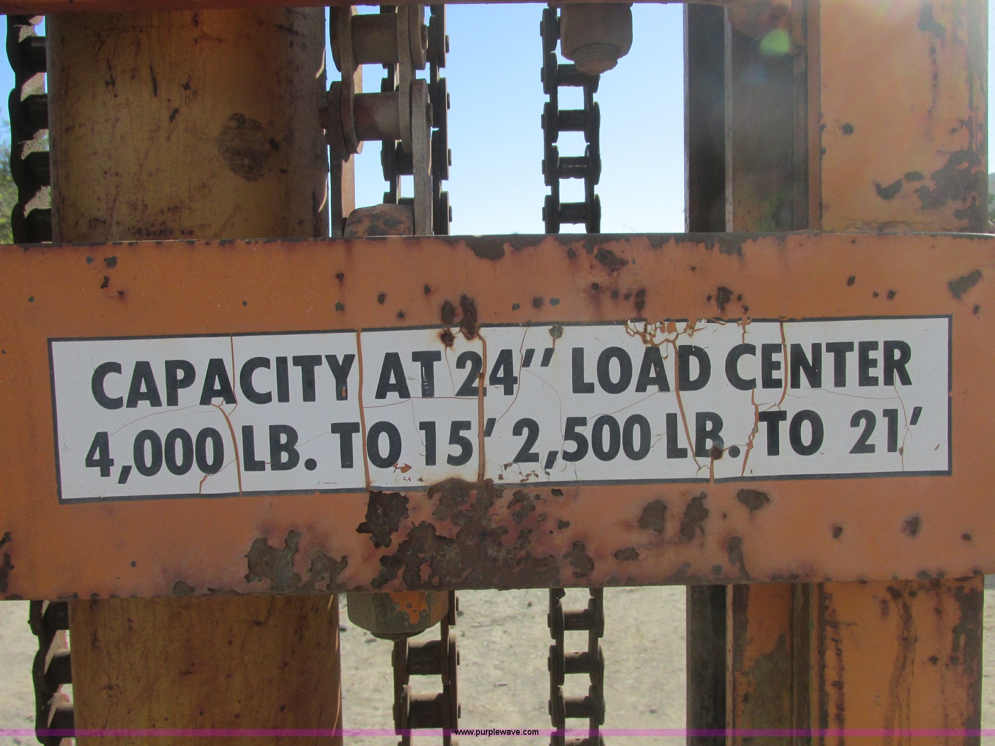Purple Wave is selling a used Strt. Mast Rough Terr. Forklift in Oklahoma. This item is a Case 584C forklift with the following: 2,426 hours on meter, Case 2070 diesel engine, 50 HP, Serial 2845208, ROPS, Serial 5537241, Front and rear work lights, 4,500 lbs maximum lift capacity at 15'H, 2,100 lbs maximum lift capacity at 21'H, Three boom sections, 42"L x 48" forks, 27 3/4"H backrest, Holes in forks, Lift, tilt, and side controls, Fender mounted toolbox, Block heater, 17.5R24 front tires, P265/75R16 rear tires, Seat cushion missing
