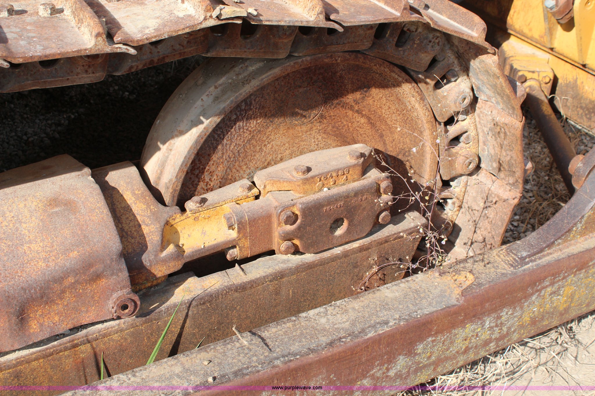 1978 John Deere 750E dozer. 1,762 hours on meter, John Deere six cylinder turbo diesel engine, Hydrostatic transmission, Clutch brake steering, Canopy, 9.5'W dozer face S-dozer, Tilt, Rear draw bar, Six bottom rollers, 18"W single grouser track pads, 29,786 lbs. base operating weight, Covers and pan included, Unit will not move forward or backwards, Serial 283356T. 3701 E 23rd Street. Lawrence, KS 66046