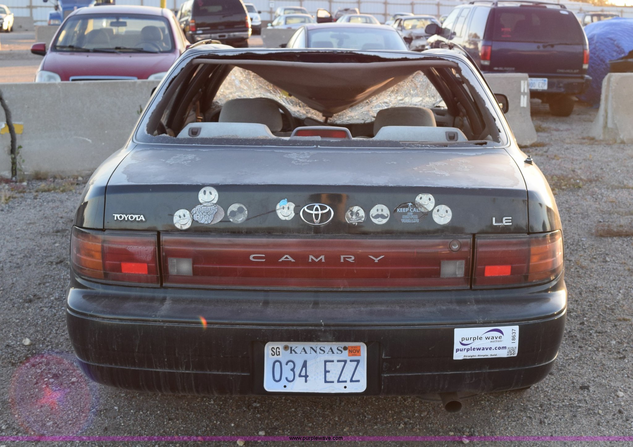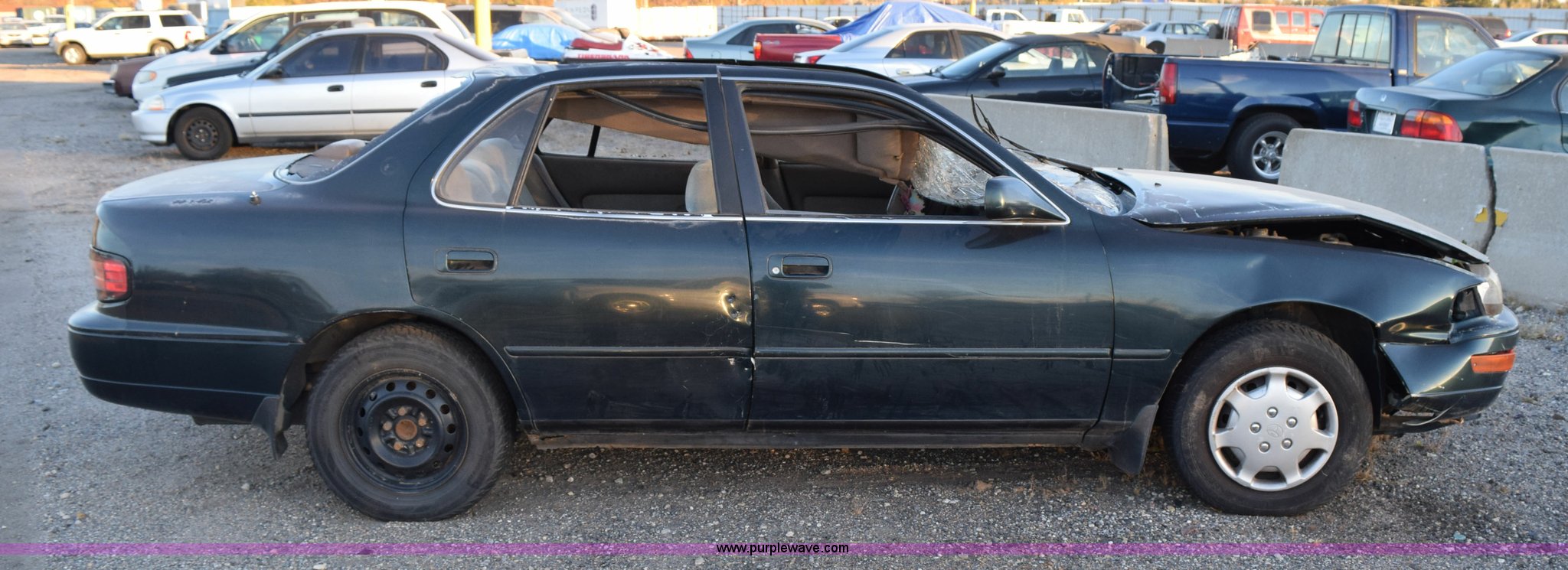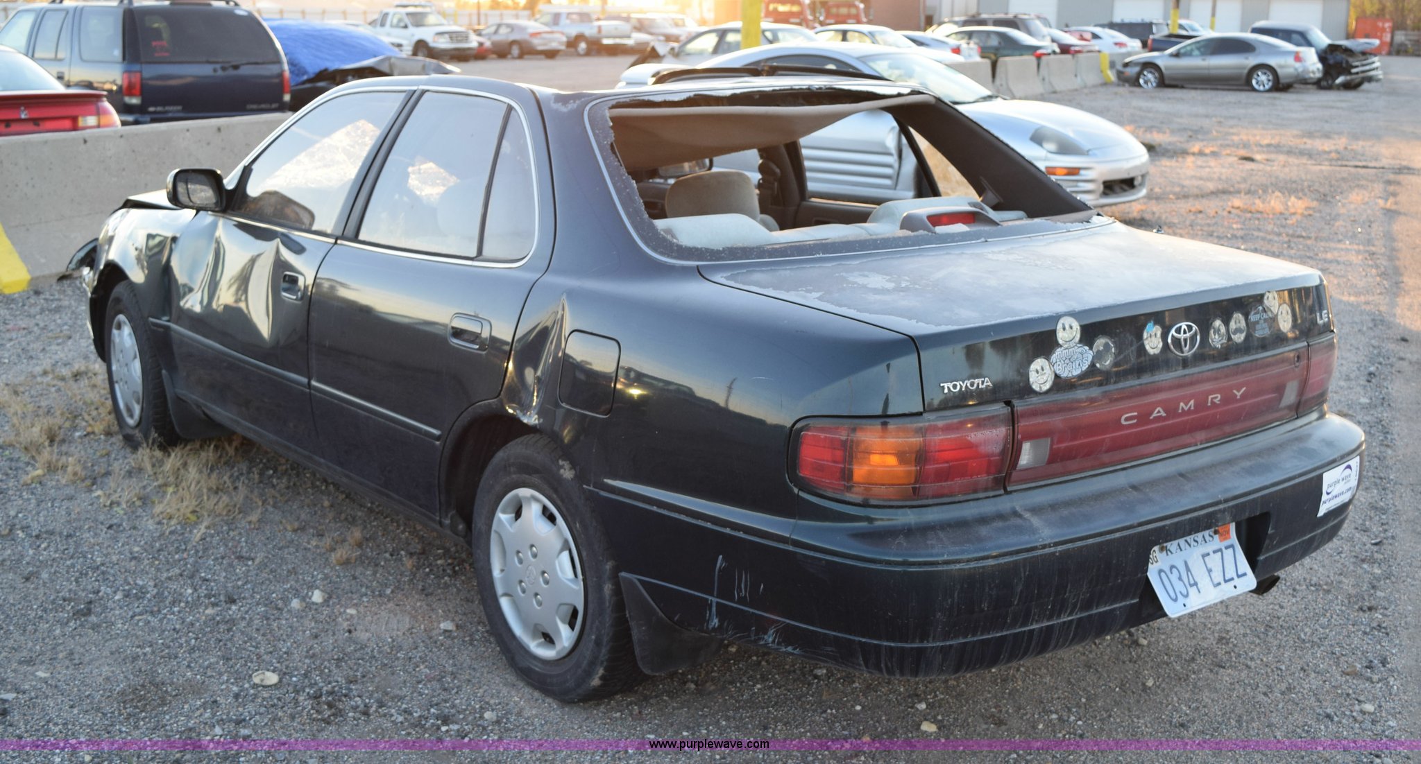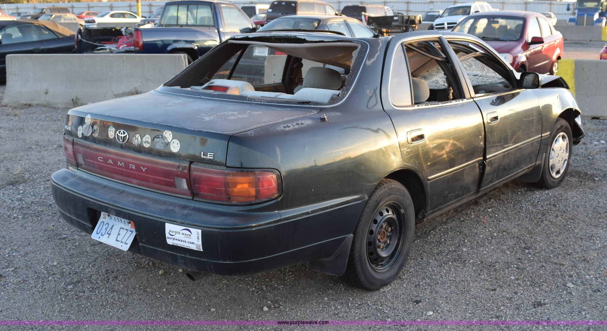 Purple Wave is selling a used Passenger Vehicle in Kansas. This item is a 1993 Toyota Camry LE with the following: 241,332 miles on odometer, 2.2L L4 DOHC 16V gas engine, Automatic transmission, AM/FM/cassette, 195/70R14 tires, Interior/exterior cosmetic damage, Roof and front end collision damage, Air bag deployed, Case# 14C063886