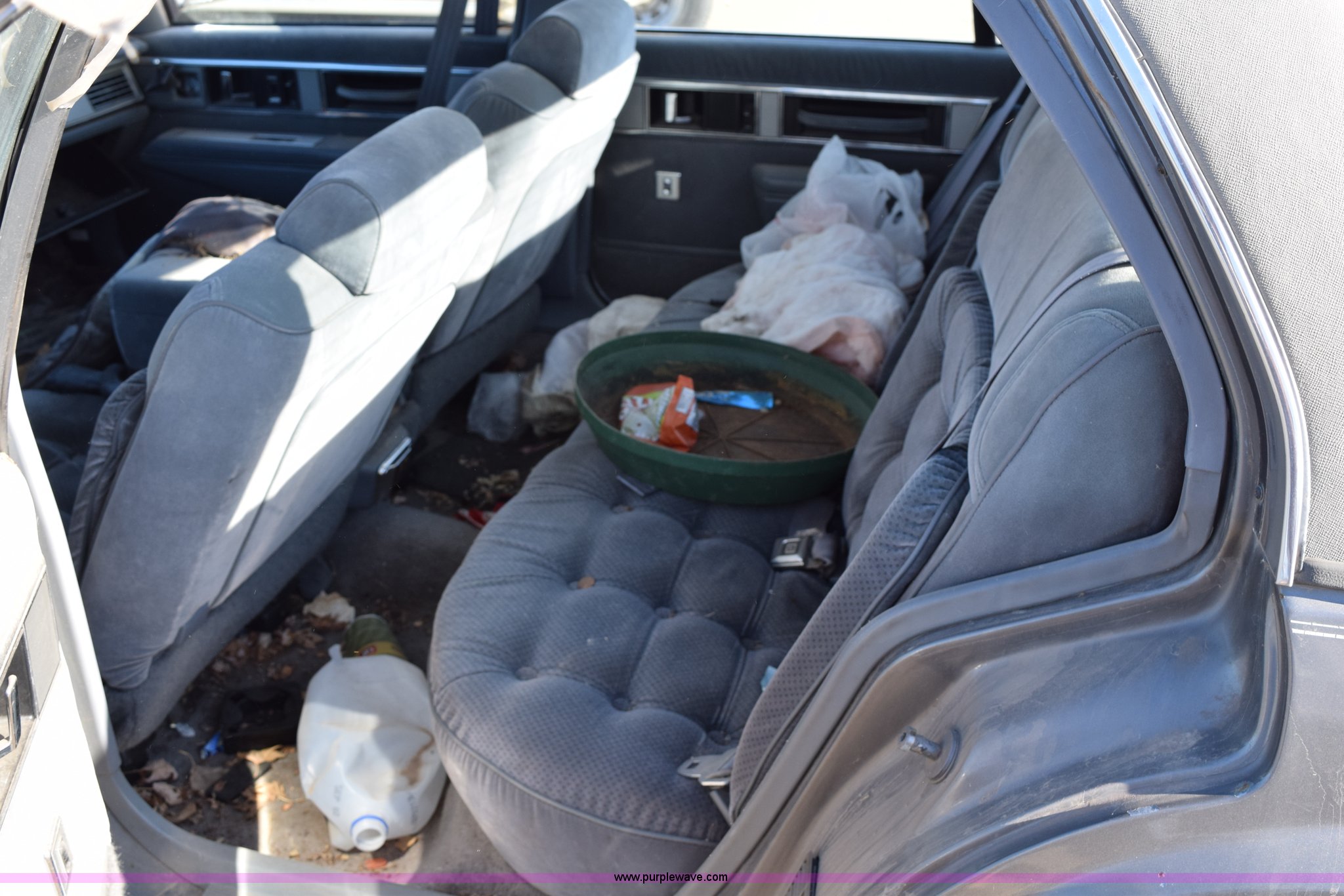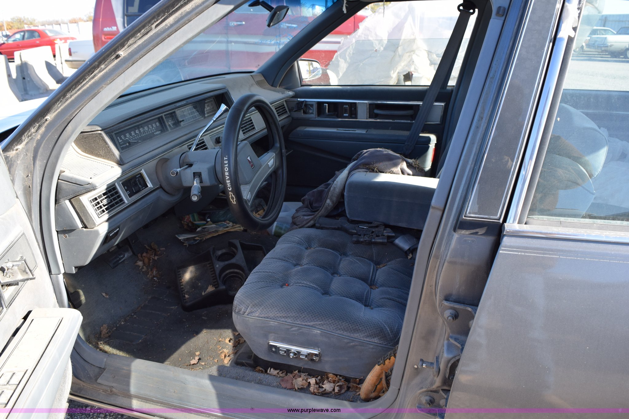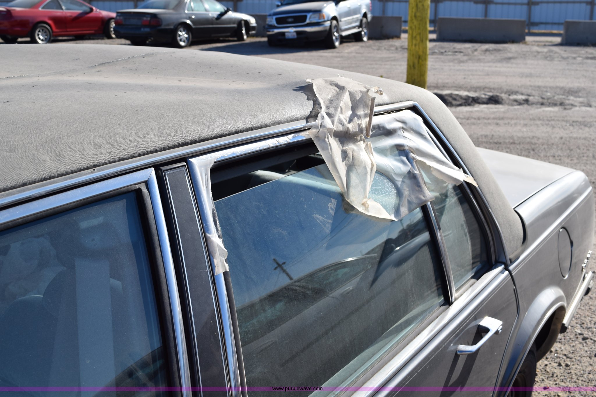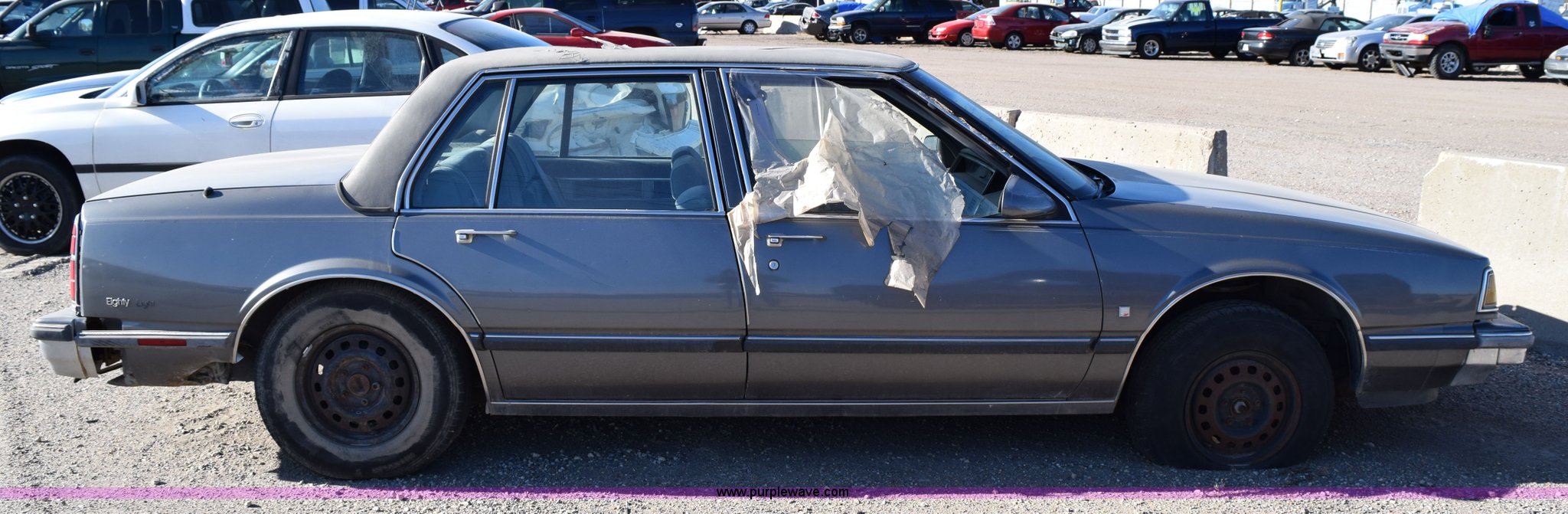 Purple Wave is selling a used Passenger Vehicle in Kansas. This item is a 1989 Oldsmobile Royale Brougham Eighty Eight with the following: 160,806 miles on odometer, 3.8L V6 OHV 12V gas engine, Automatic transmission, AC and heat, Tilt, Power windows, locks, mirrors, and seats, Cloth interior, Interior/exterior cosmetic damage, Radio missing, Cracked windshield, Roof damage, Case# 14C039360