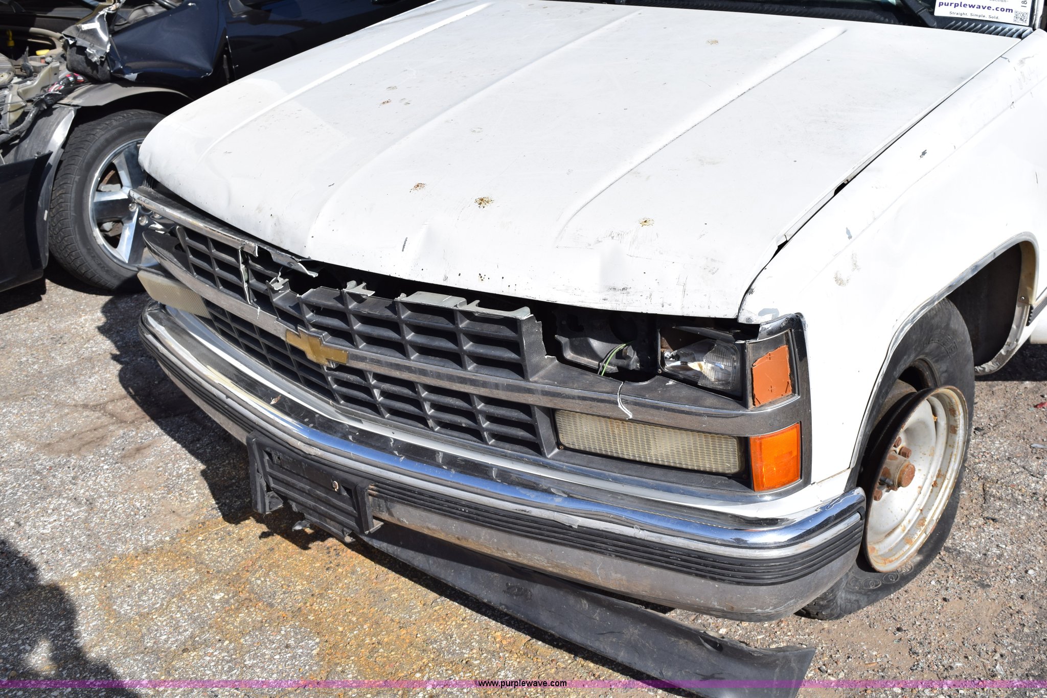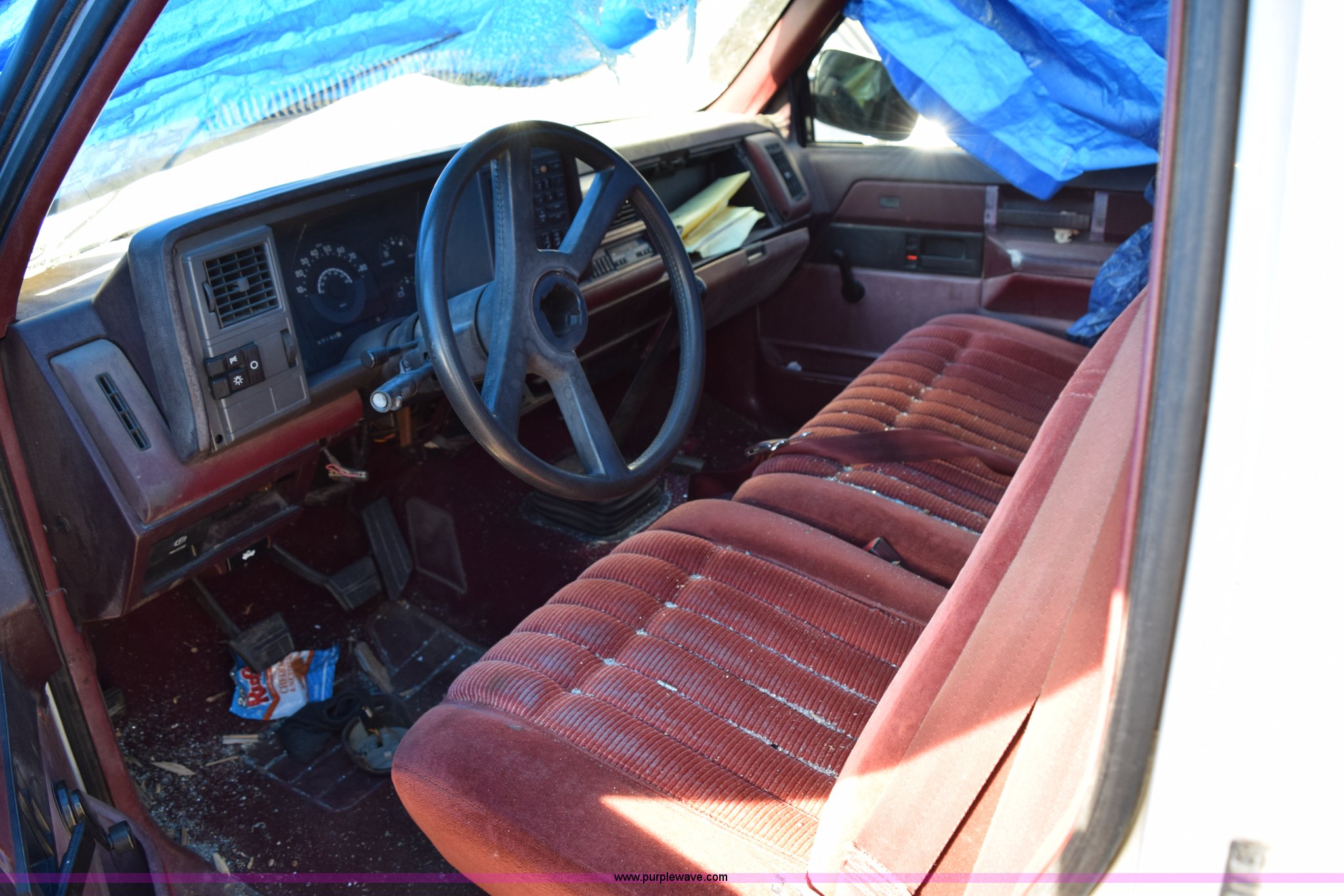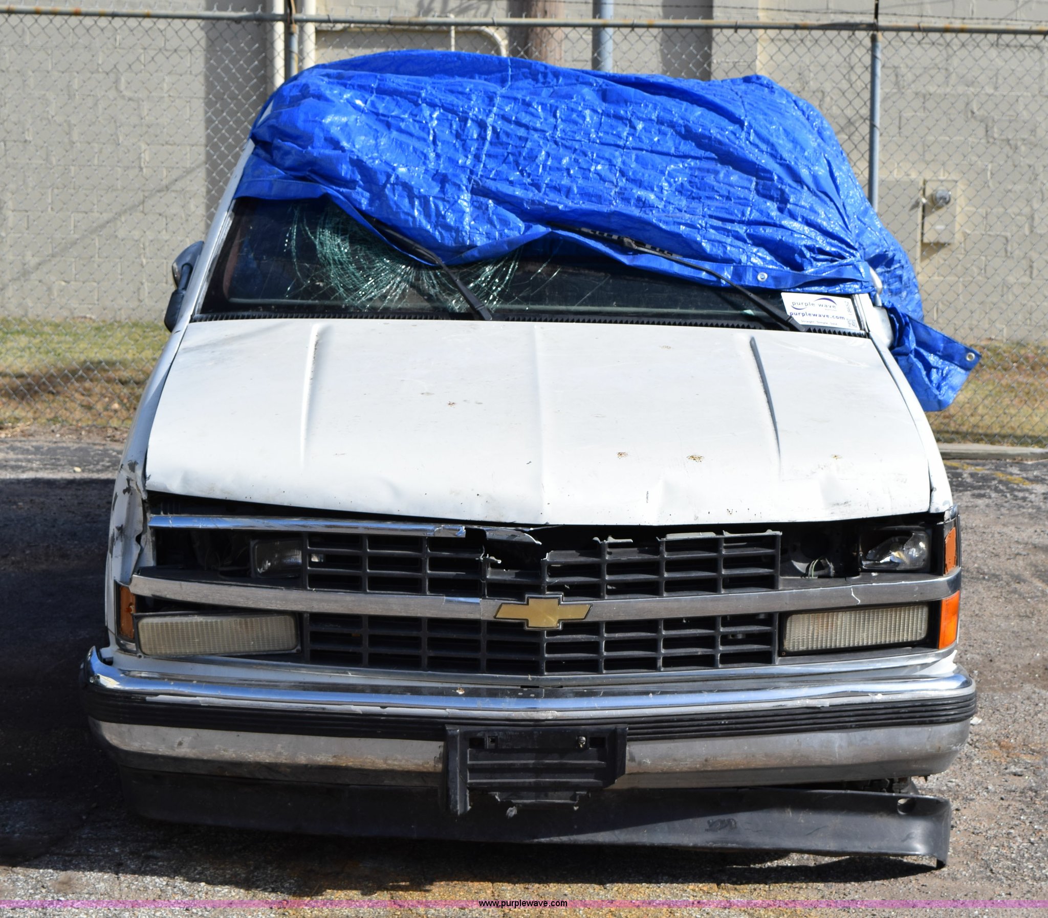 Purple Wave is selling a used 1/2 Ton Pickup or Van in Kansas. This item is a 1989 Chevrolet 1500 pickup truck with the following: 207,191 miles on odometer, 5.7L V8 OHV 16V gas engine, Five speed manual transmission, AC and heat, Tilt, AM/FM/cassette, Manual windows and locks, Cloth interior, Long bed, Bed liner, Receiver hitch, 235/75R15 tires, Interior/exterior cosmetic damage, Spare tire missing, Front end damage, Windows broken, Hood would not open, Case# 14C066413