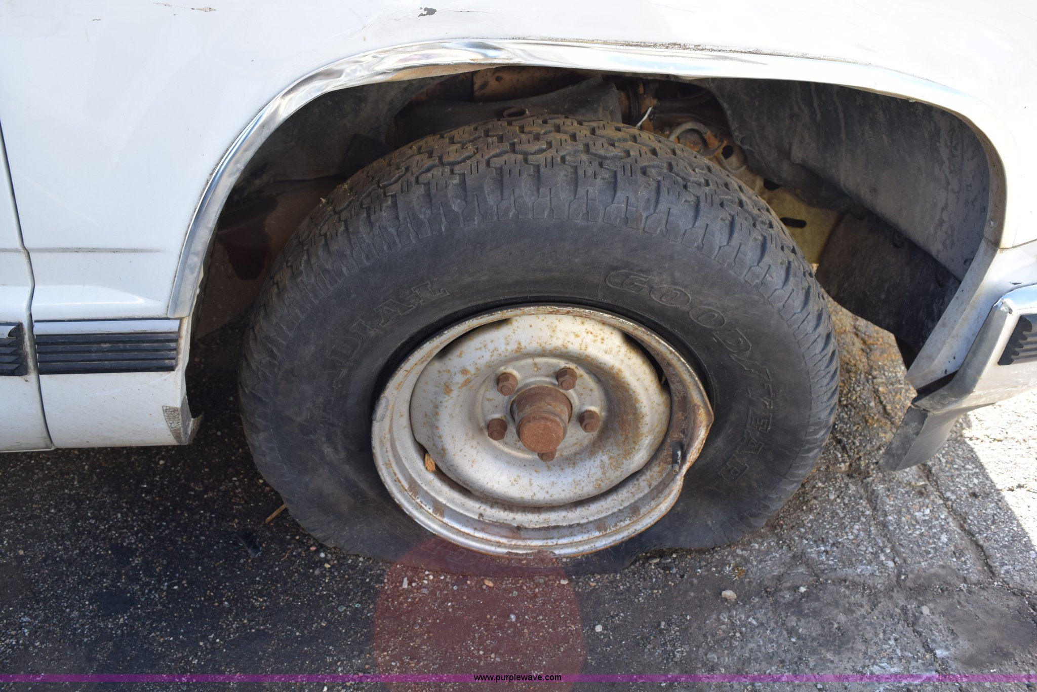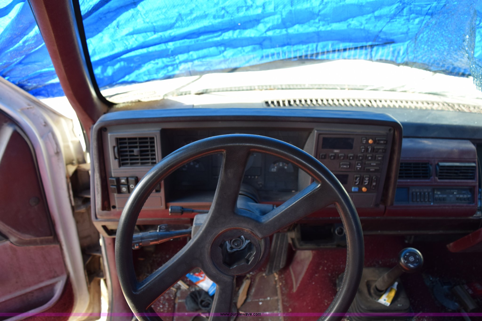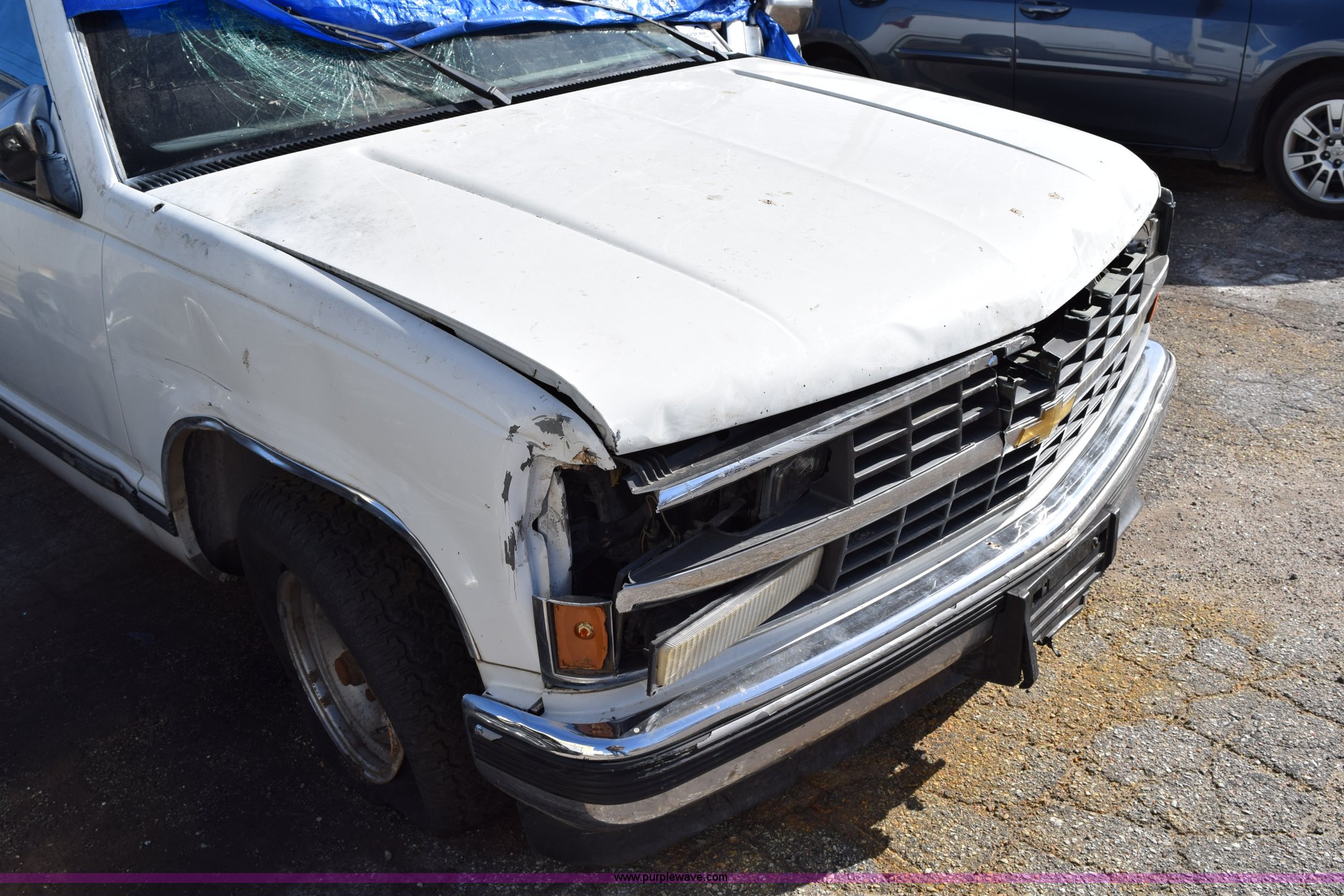 Purple Wave is selling a used 1/2 Ton Pickup or Van in Kansas. This item is a 1989 Chevrolet 1500 pickup truck with the following: 207,191 miles on odometer, 5.7L V8 OHV 16V gas engine, Five speed manual transmission, AC and heat, Tilt, AM/FM/cassette, Manual windows and locks, Cloth interior, Long bed, Bed liner, Receiver hitch, 235/75R15 tires, Interior/exterior cosmetic damage, Spare tire missing, Front end damage, Windows broken, Hood would not open, Case# 14C066413