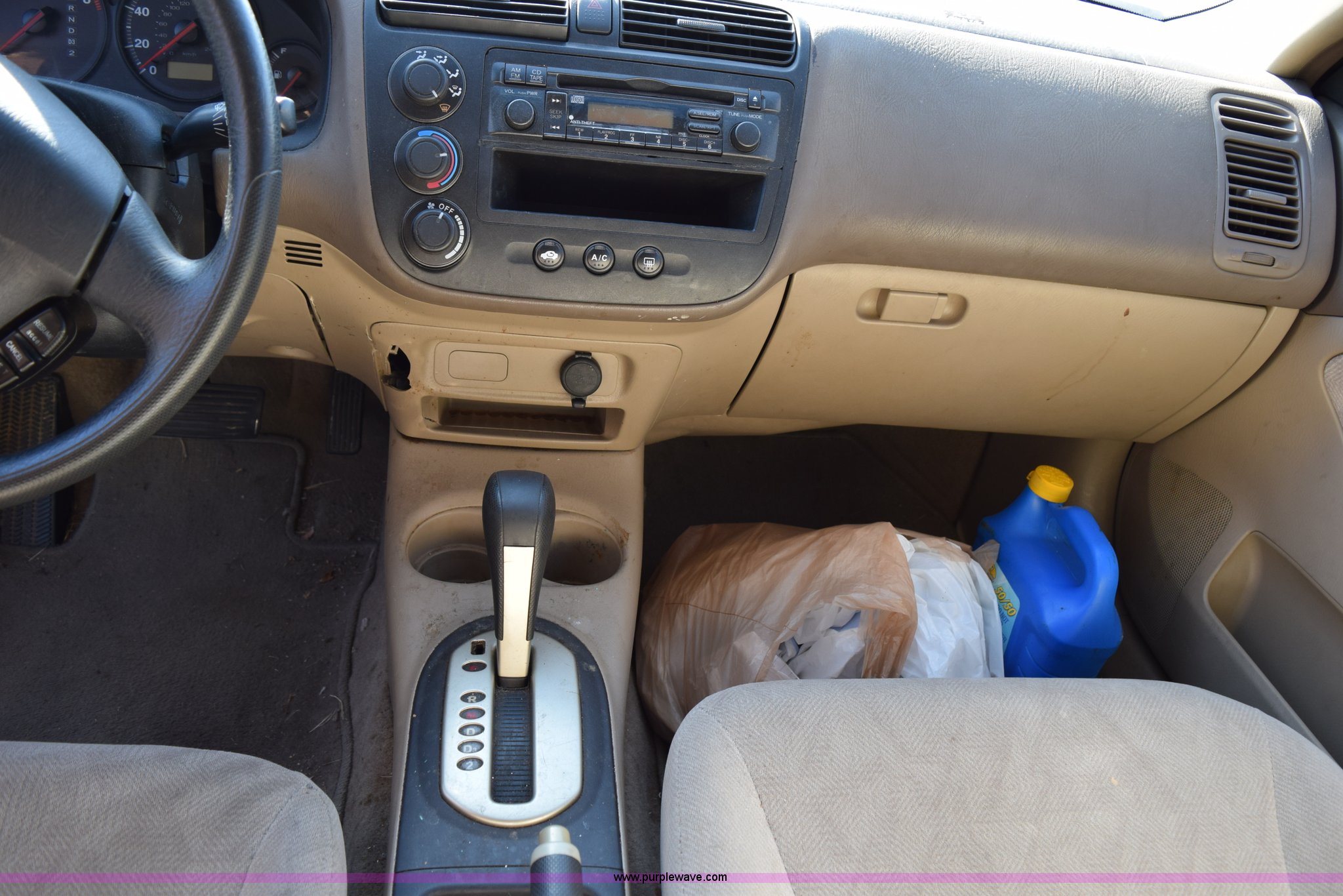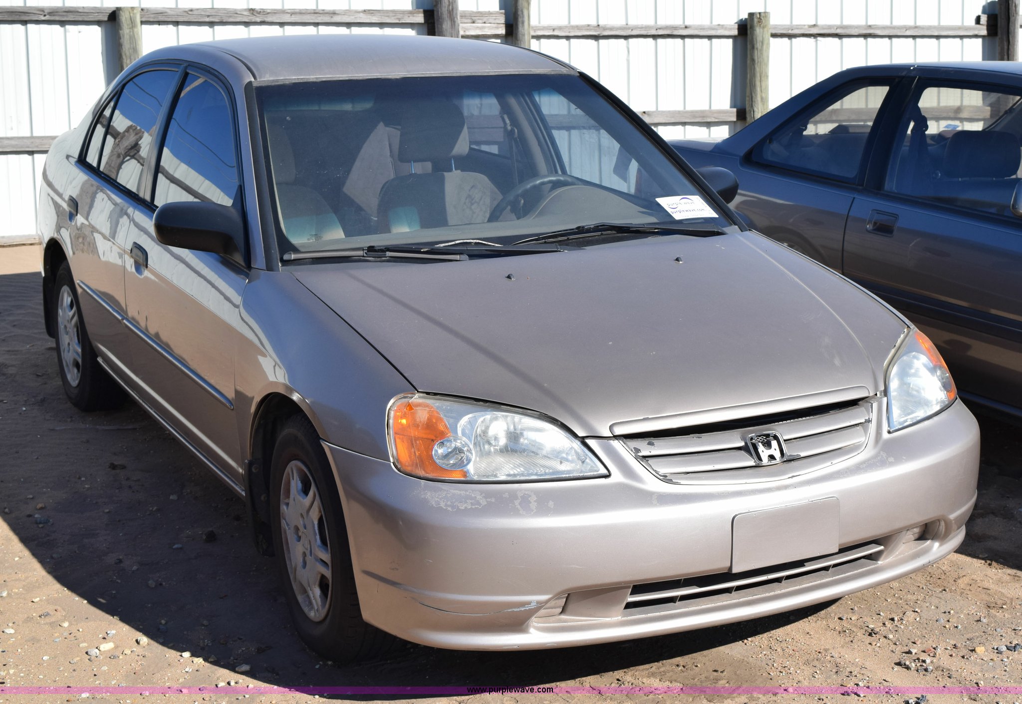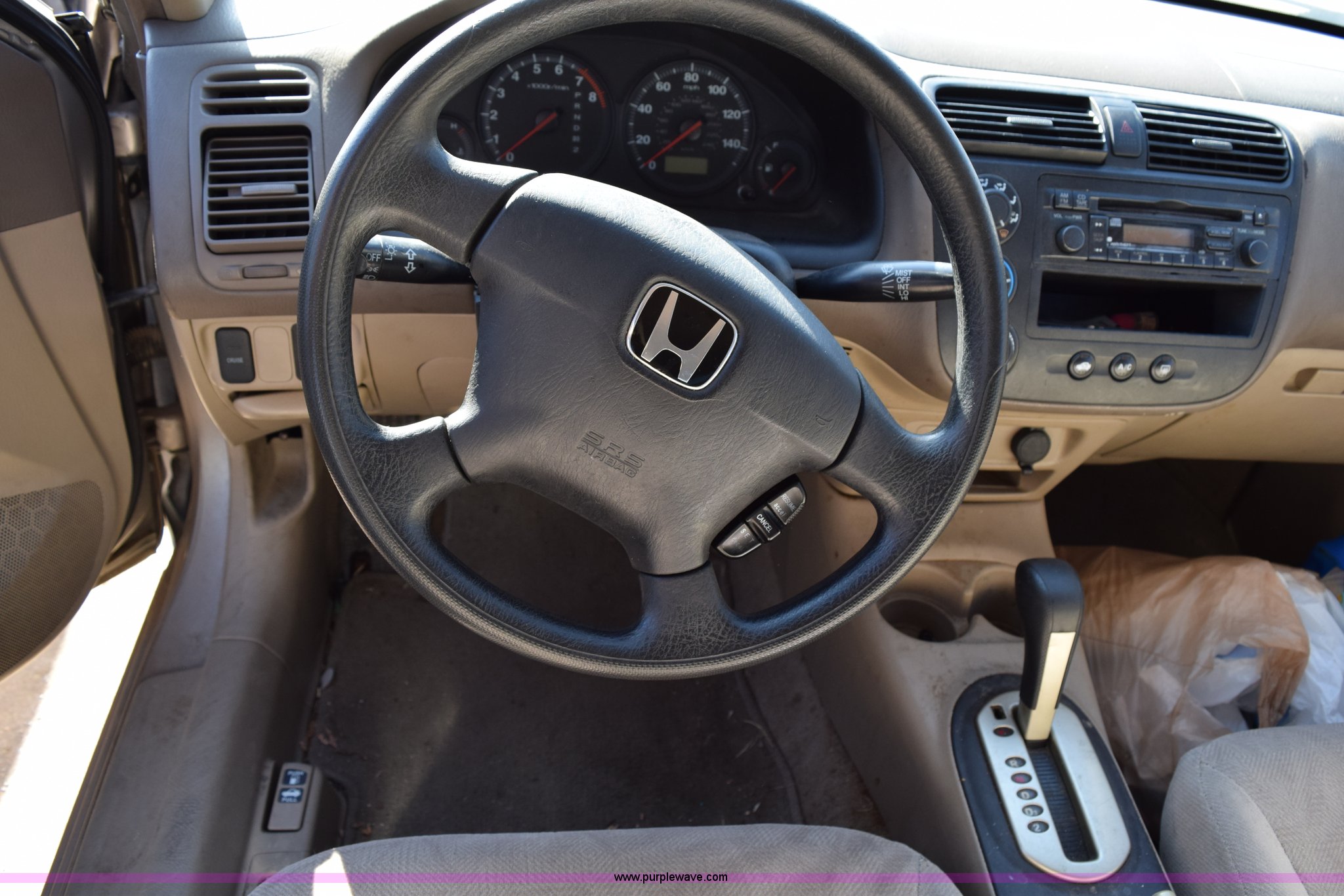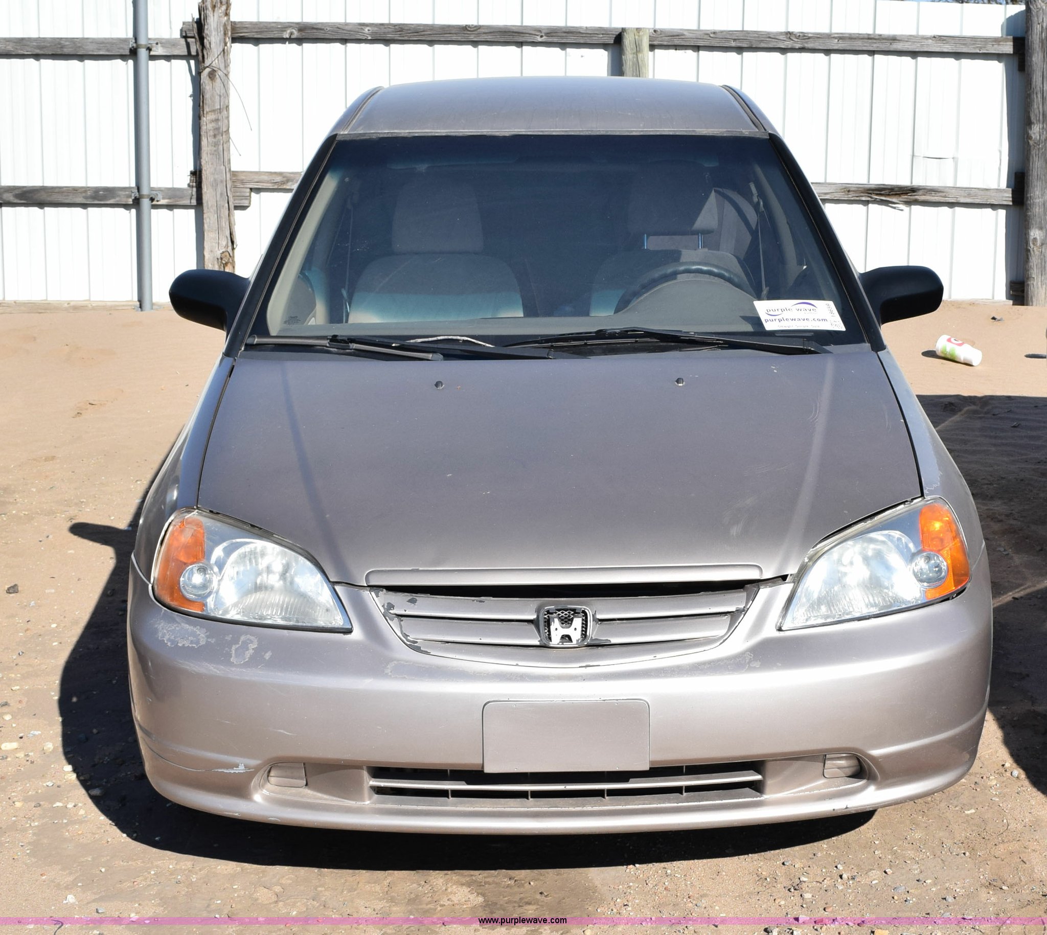 Purple Wave is selling a used Passenger Vehicle in Kansas. This item is a 2001 Honda Civic LX with the following: Unknown miles on odometer, 1.7L L4 SOHC 16V gas engine, Automatic transmission, Cruise, AM/FM/CD, Power windows, locks, and mirrors, Cloth interior, P185/70R14 tires, Interior/exterior cosmetic damage, Paint peeling, Contents included, Case# 14C059239