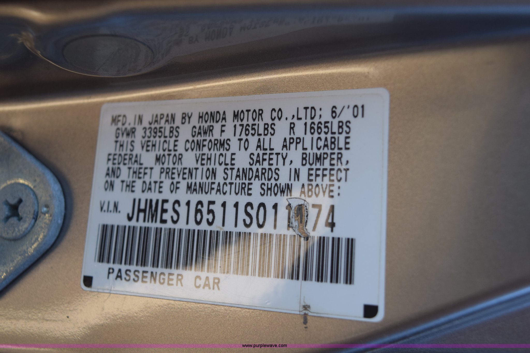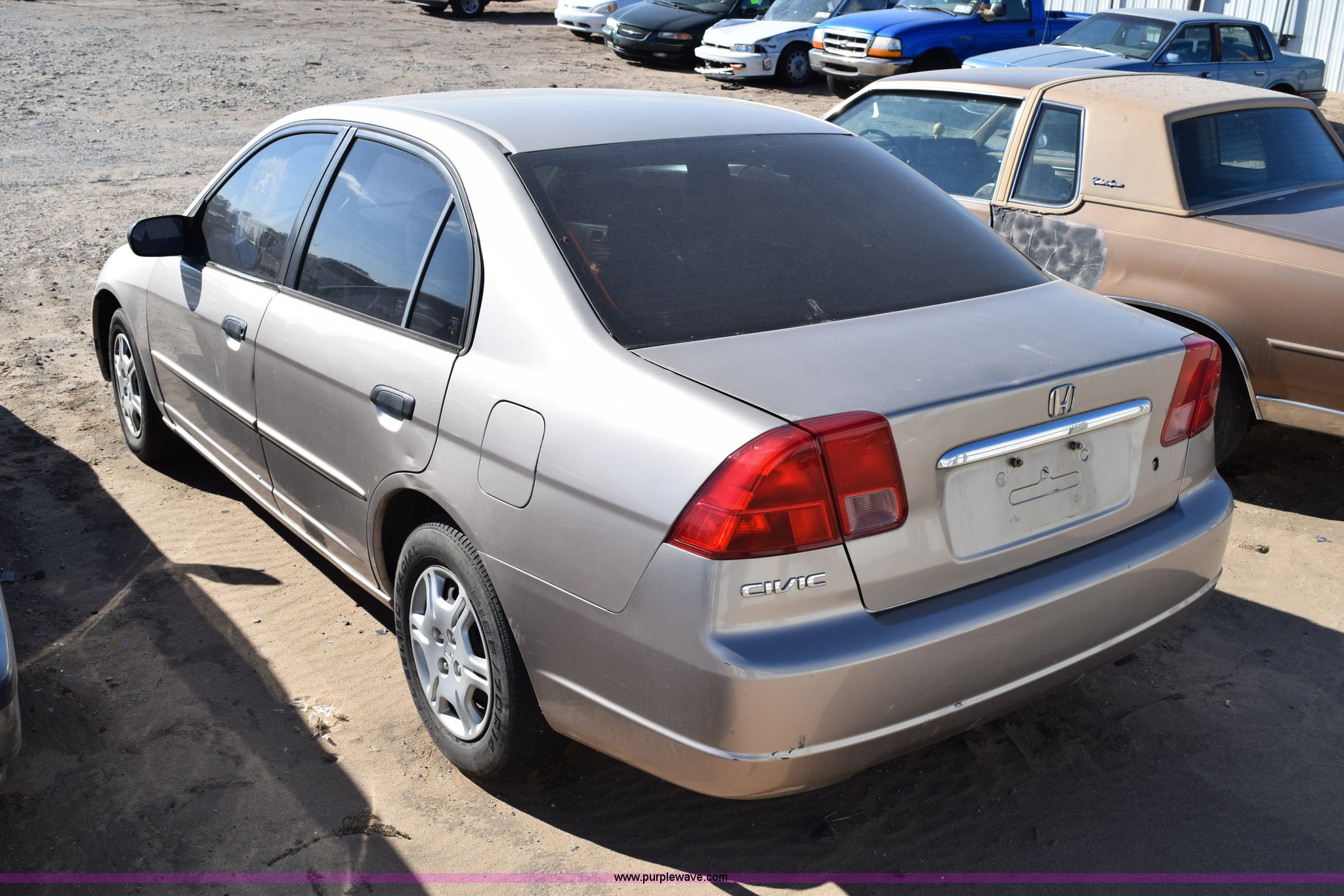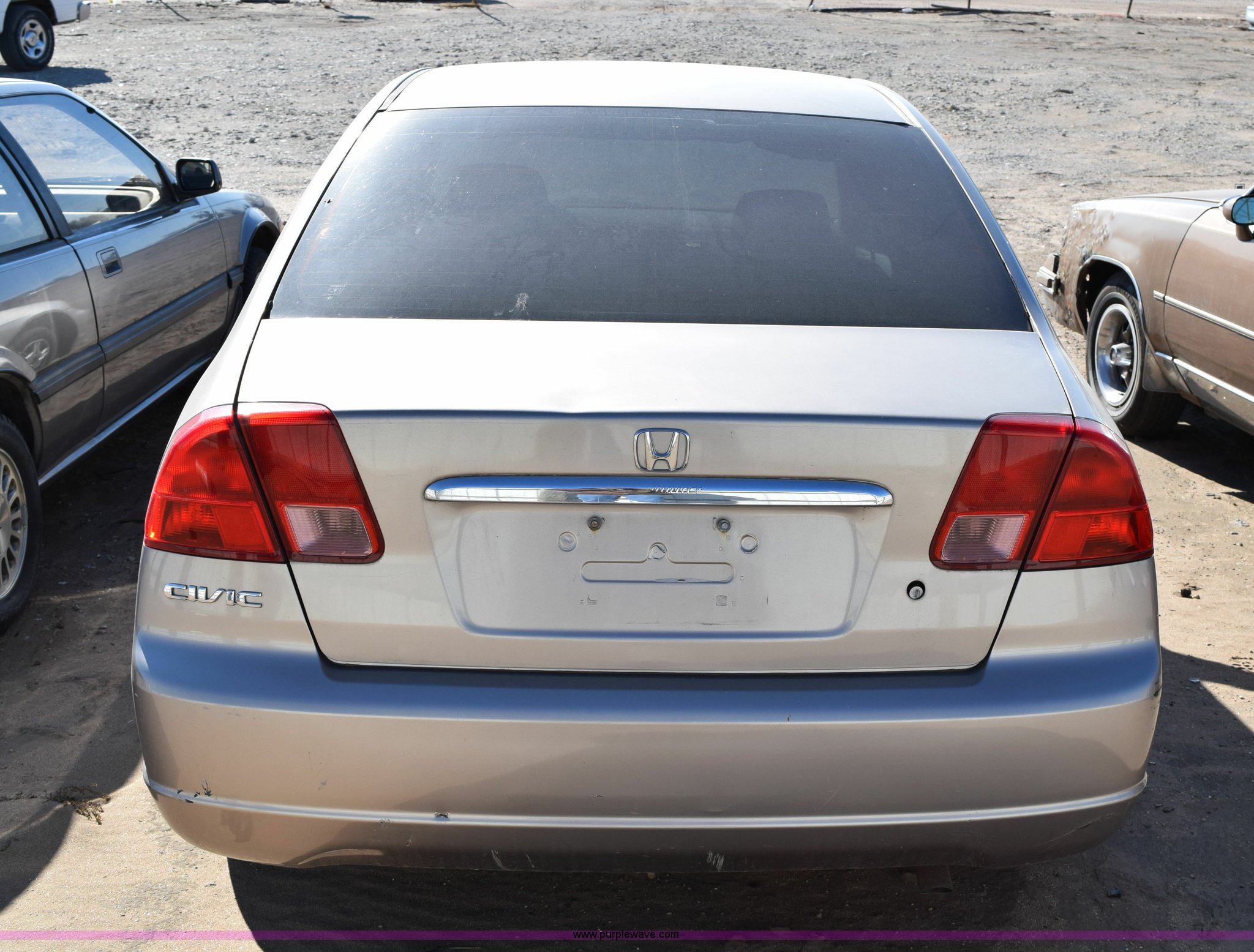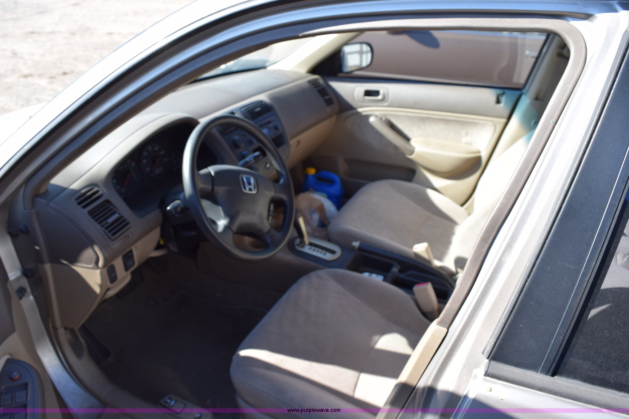 Purple Wave is selling a used Passenger Vehicle in Kansas. This item is a 2001 Honda Civic LX with the following: Unknown miles on odometer, 1.7L L4 SOHC 16V gas engine, Automatic transmission, Cruise, AM/FM/CD, Power windows, locks, and mirrors, Cloth interior, P185/70R14 tires, Interior/exterior cosmetic damage, Paint peeling, Contents included, Case# 14C059239