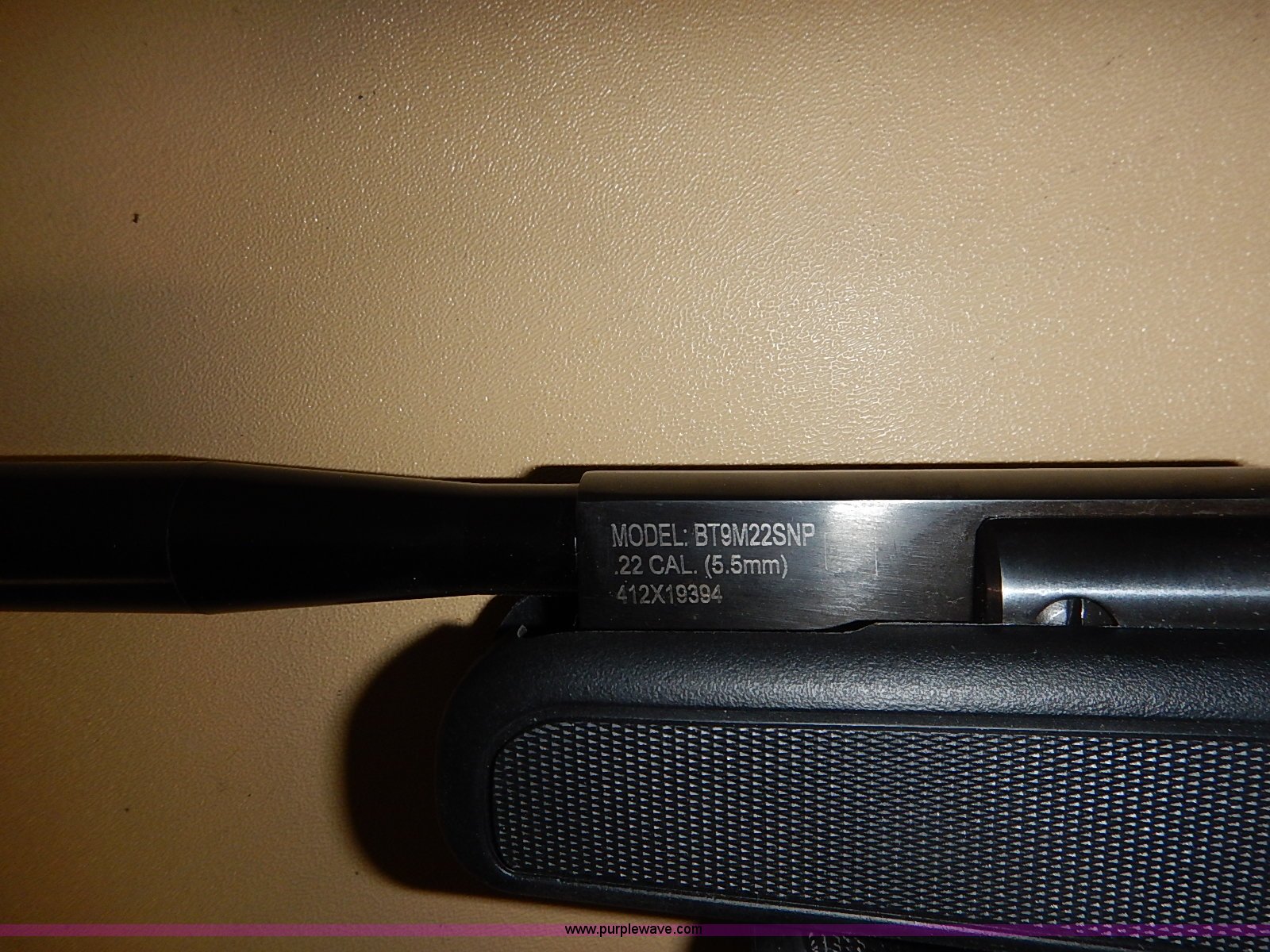 Purple Wave is selling a used Sporting Goods in Kansas. This item is a Benjamin Trail BT9M22SNP pellet gun with the following: 0.22 caliber, Center point scope, Serial 412X19394