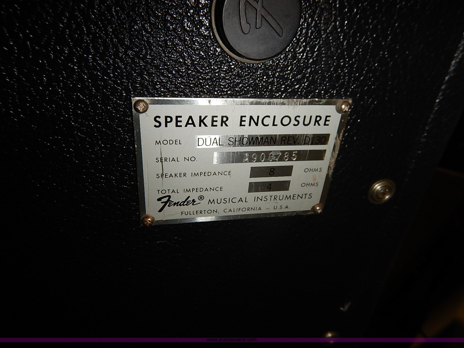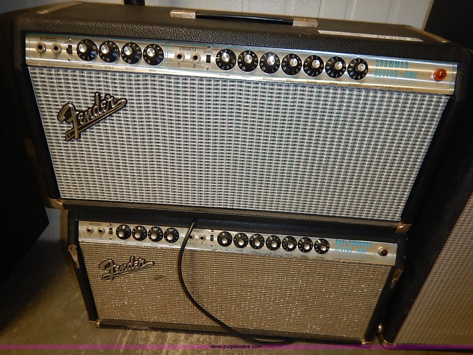 Purple Wave is selling a used Music Equip. in Kansas. This item is a (3) Fender amplifiers with the following: Showman Reverb, 26" x 9.5" x 13.5", Serial TFL50000, Dual Showman Reverb, 26" x 9.5" x 13.5", Serial TFL50000, Cosmetic damage, Dual Showman Reverb D130, 30" x 11.5" x 45.5", Serial A900785, Cosmetic damage