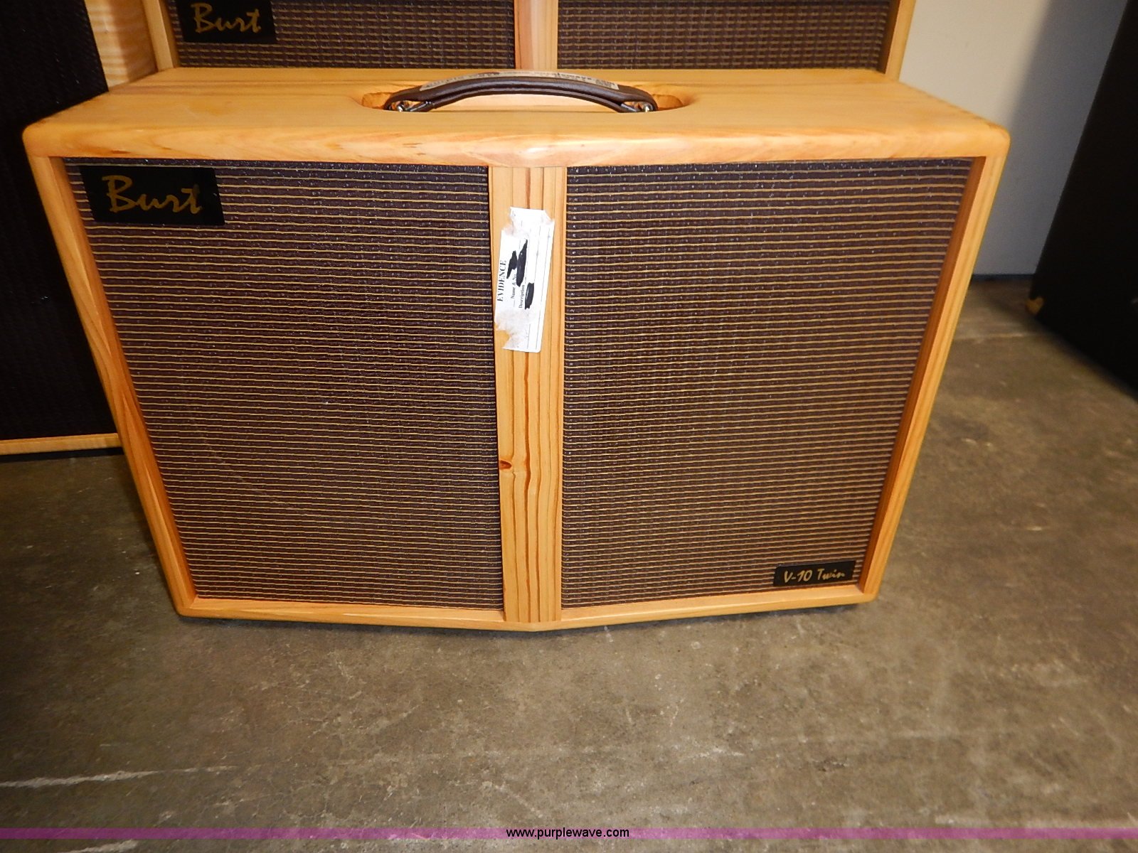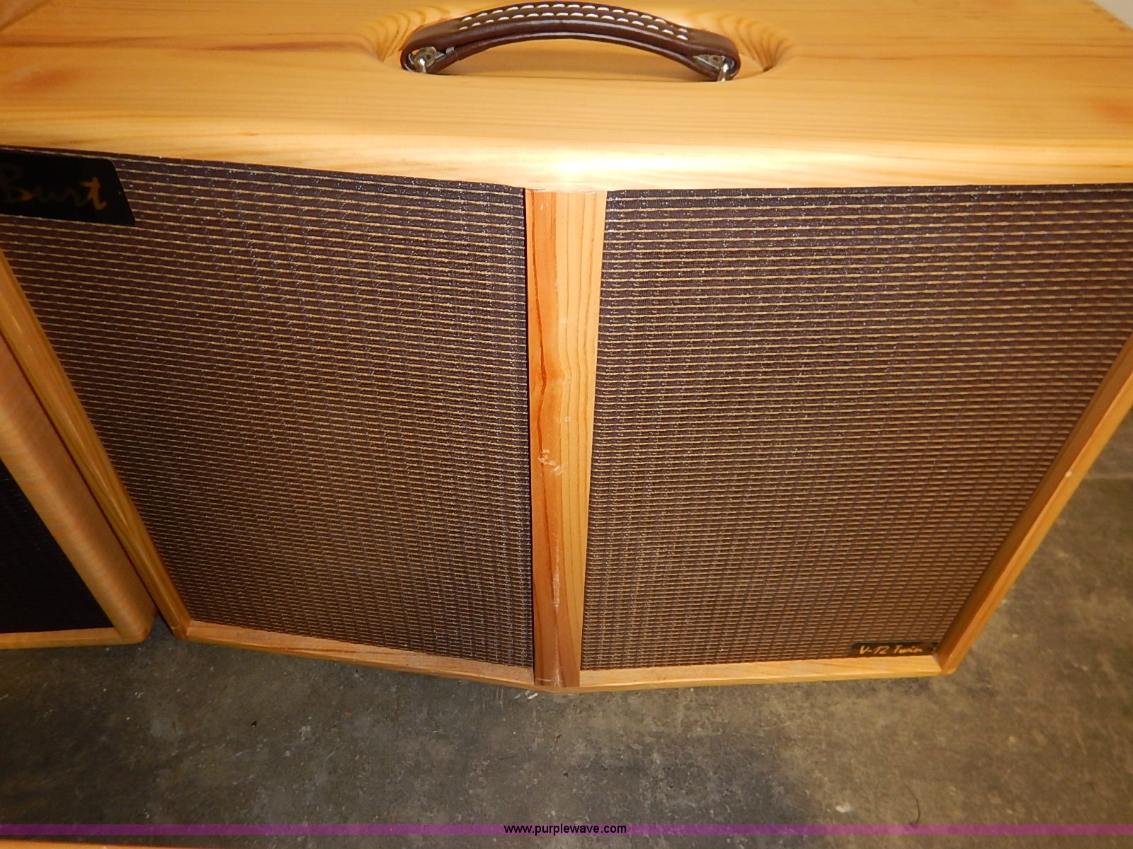Purple Wave is selling a used Music Equip. in Kansas. This item is a (3) assorted amplifiers with the following: Fender, 24.5" x 13" x 26", (2) Burts, Model V-10 Twin, 25.5" x 10" x 18", V-12 Twin, 28.5" x 10" x 21", Cosmetic damage