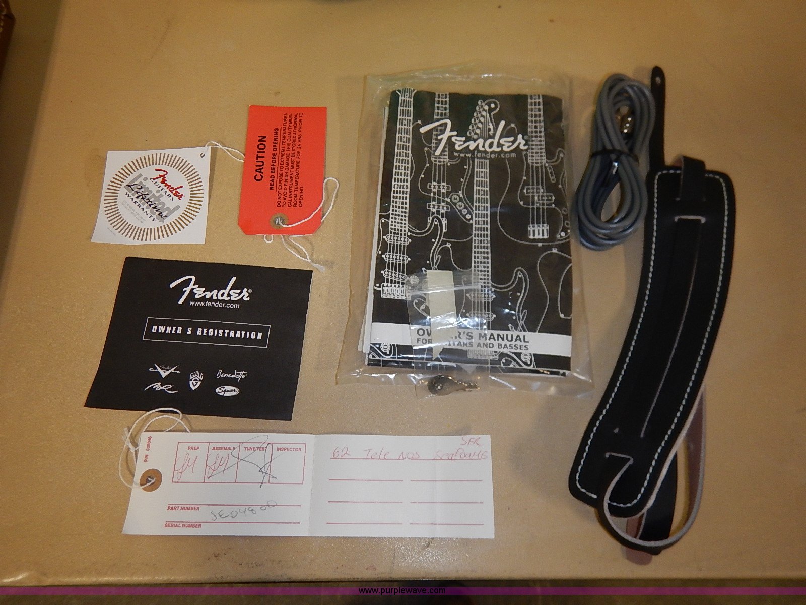 Purple Wave is selling a used Music Equip. in Kansas. This item is a Fender Telecaster electric guitar with the following: Six string, 15.5" body, 25.5" neck, G&G original vintage case, Shoulder strap and cable, Owner's manual, Registration, Serial SE04800