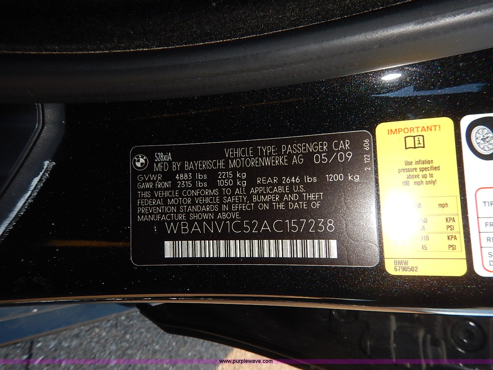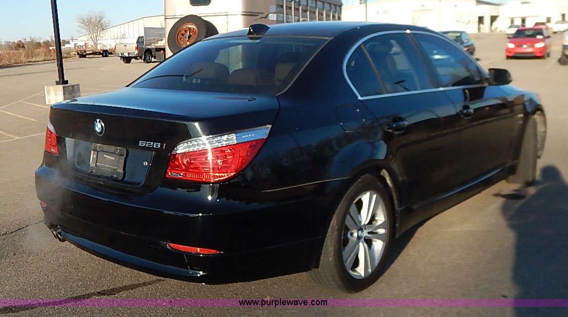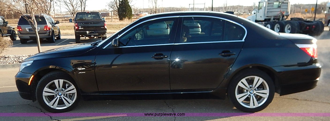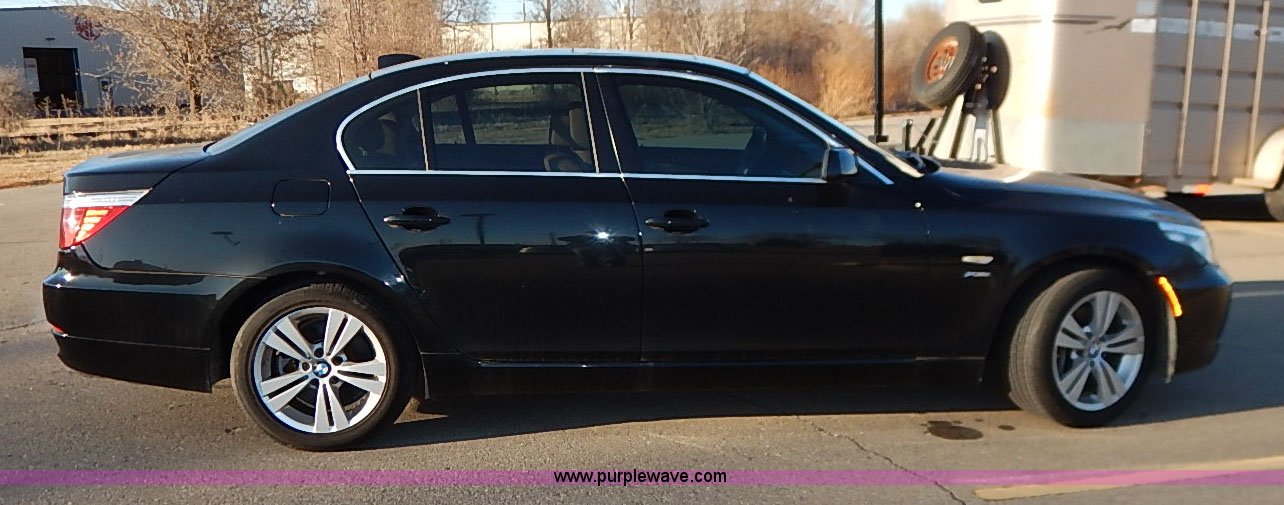 Purple Wave is selling a used Passenger Vehicle in Kansas. This item is a 2010 BMW 528xi with the following: 98,483 miles on odometer, 3.0L L6 DOHC 24V gas engine, Automatic transmission, AC and heat, Tilt and telescoping steering wheel, Cruise, AM/FM/CD, Power windows, locks, mirrors, and seats, Heated seats, Navigation system, Leather interior, Moonroof, Fog lights, 225/50R17 tires