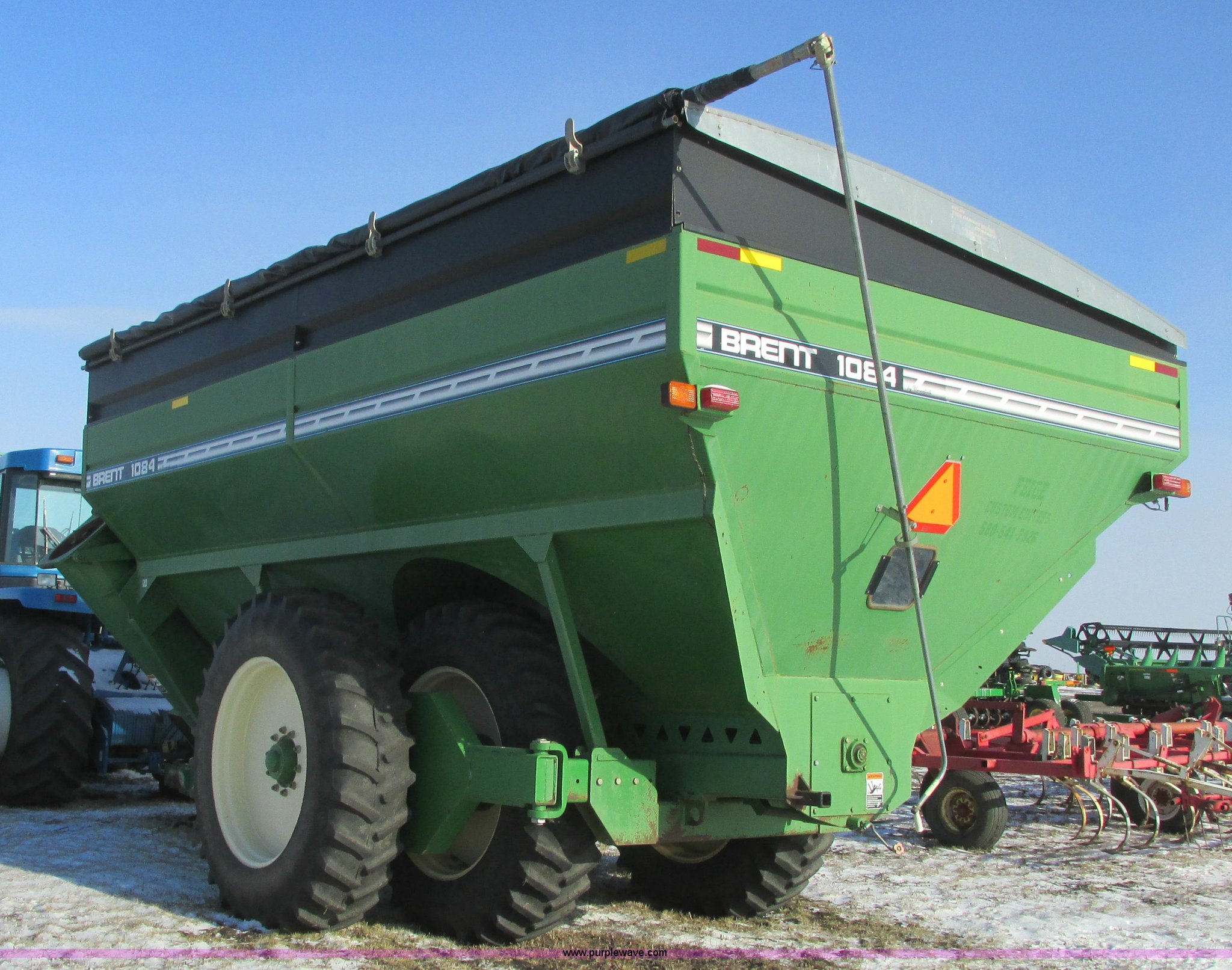 Purple Wave is selling a used Grain Cart or Gravity Wagon in Minnesota. This item is a 2004 Unverferth Brent Avalanche 1084 grain cart with the following: 1,000 bushel capacity, 1000 PTO, (20) splines, 1 3/4" spline, Rollover tarp, Oscillating dual tandem walking axles, 18.4R42 tires, Serial B19390123
