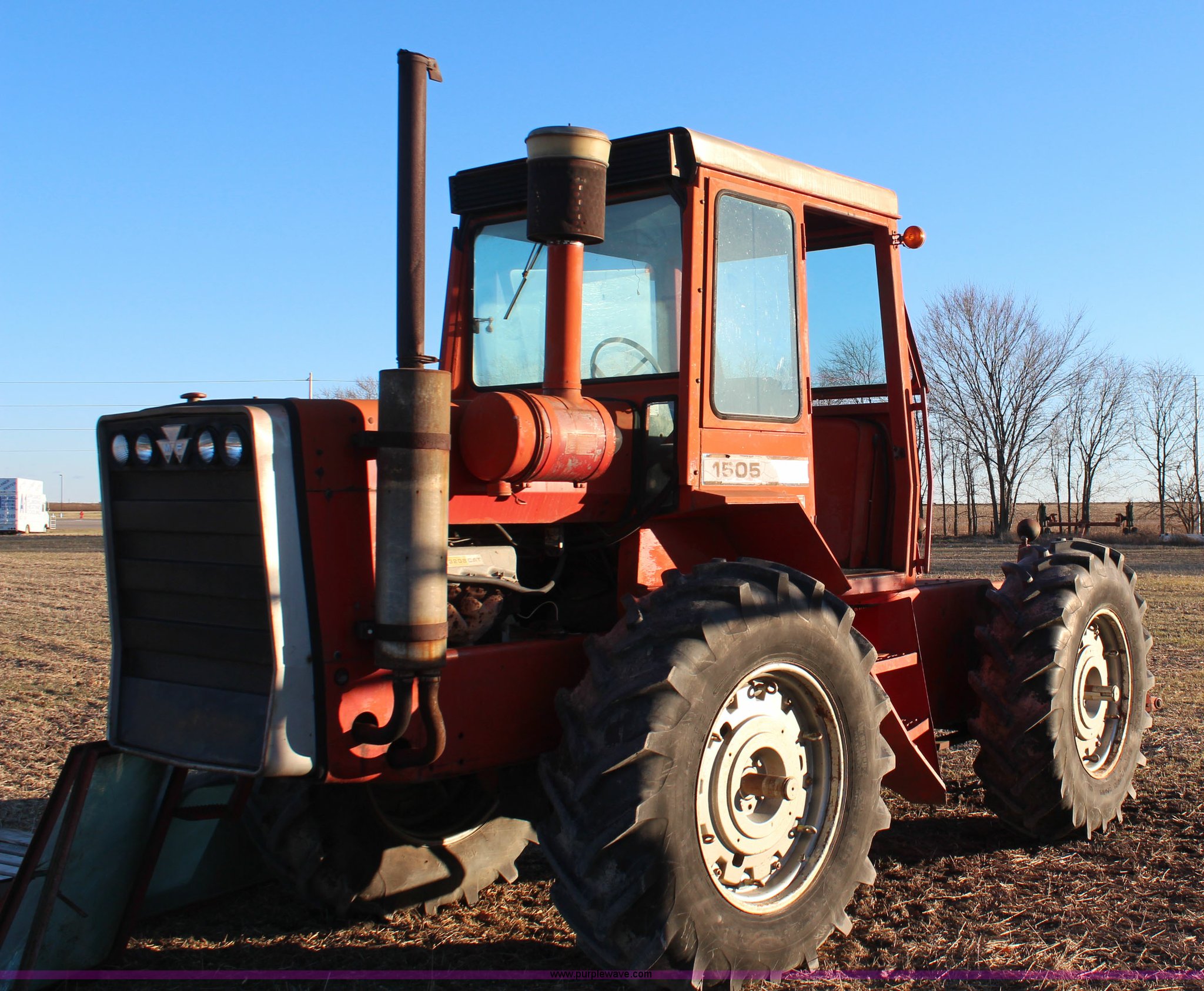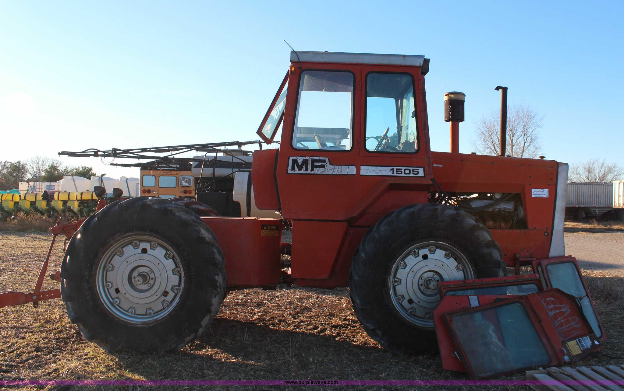 Purple Wave is selling a used Articulated 4-Wheel Drive Tractor in Kansas. This item is a 1975 Massey-Ferguson 1505 4WD tractor with the following: 1,313 hours on meter, Caterpillar 3208 eight cylinder diesel engine, Manual transmission, 12F-4R gears, AC, Currently not hooked up, Spring suspension seat, Three point, (2) rear hydraulic remotes, 18.4R34 tires, No door currently installed, Additional doors and window included, Serial 9C006754