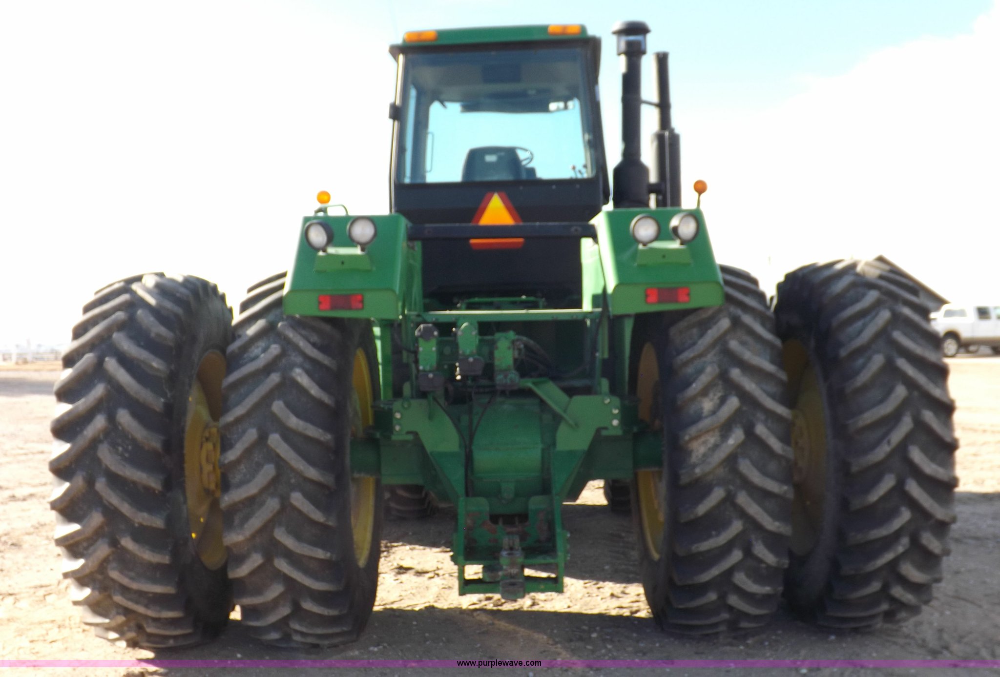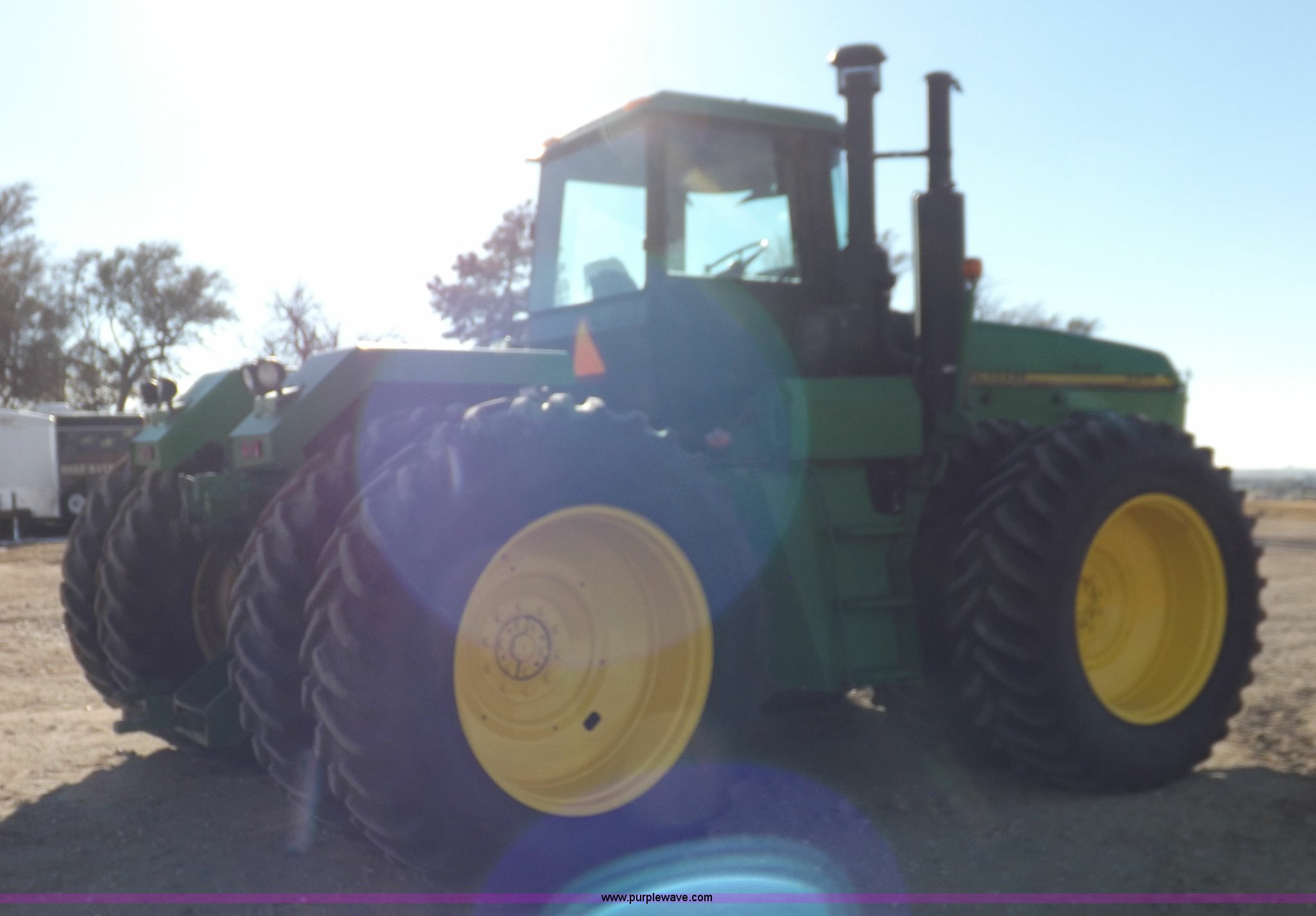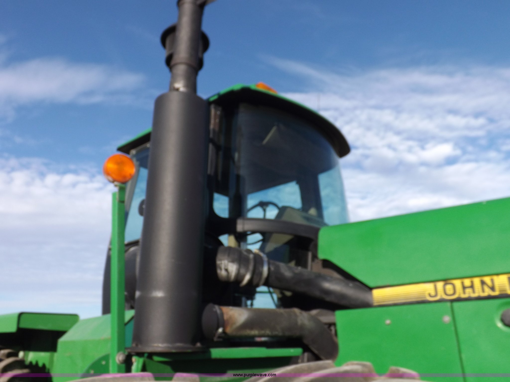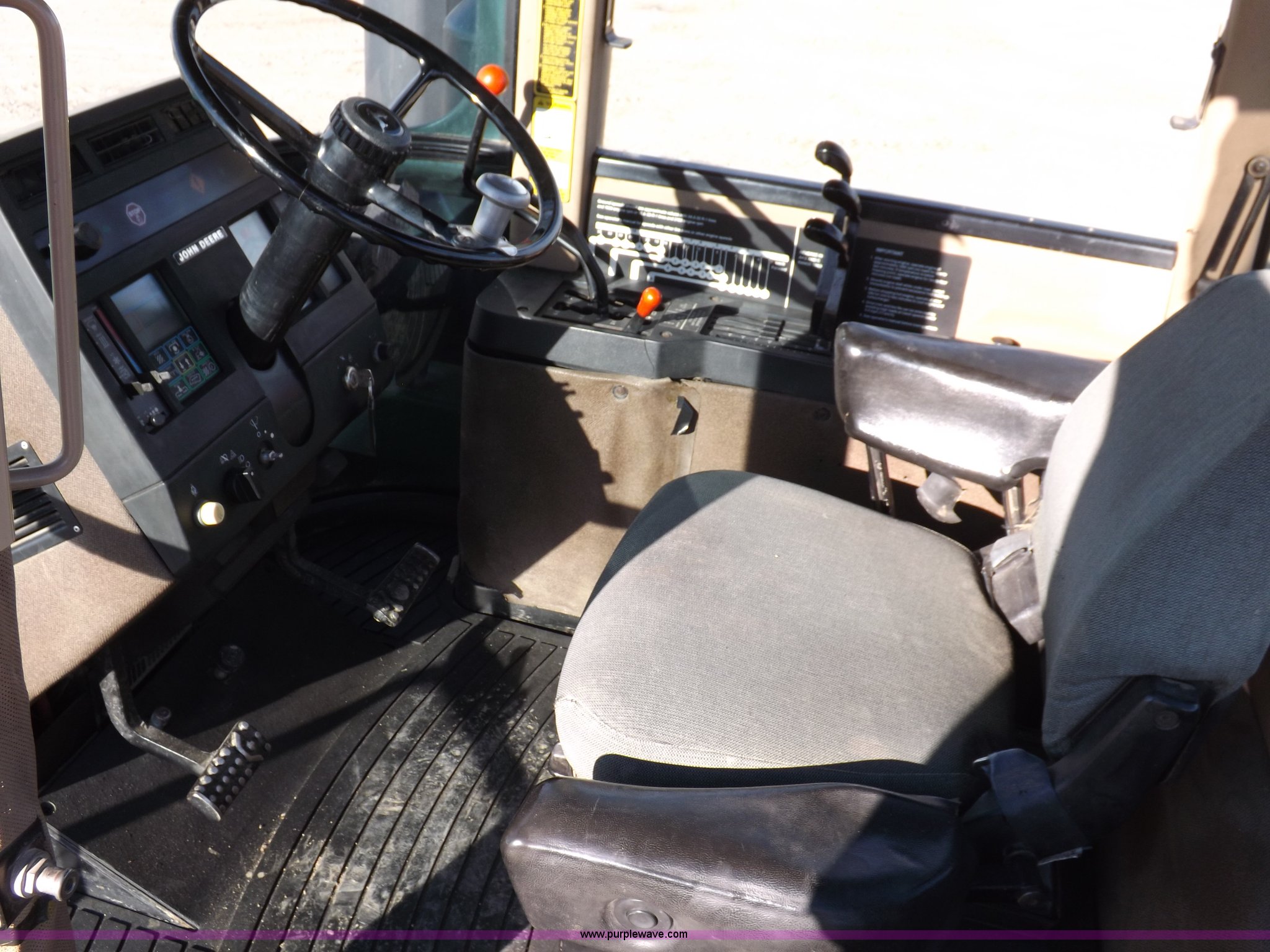 Purple Wave is selling a used Articulated 4-Wheel Drive Tractor in Kansas. This item is a 1996 John Deere 8870 4WD tractor with the following: 2,867 hours on meter, John Deere 6101HRW10 six cylinder diesel engine, 300 HP, Serial RG6101H507021, Differential lock, Partial powershift transmission, 24F-6R gears, AC and heat, AM/FM, Air suspension seat, Ground radar, Tilt steering wheel, Draw bar, (3) rear hydraulic remote sets, Rear inner wheel weights, 134" wheelbase, 520/85R42 dual tires, Upholstery damage, Radiator screen damage, Serial RW8870H005580