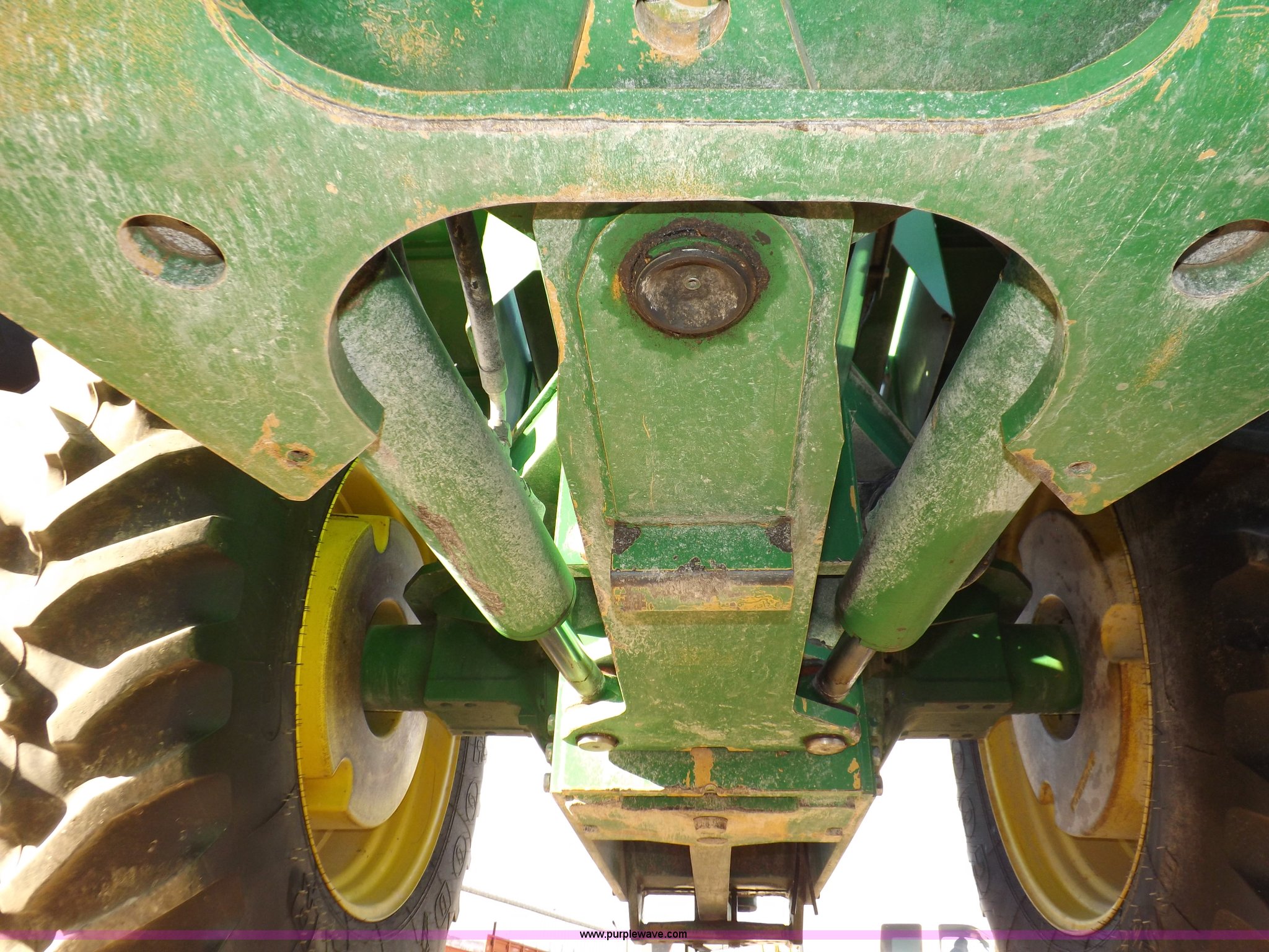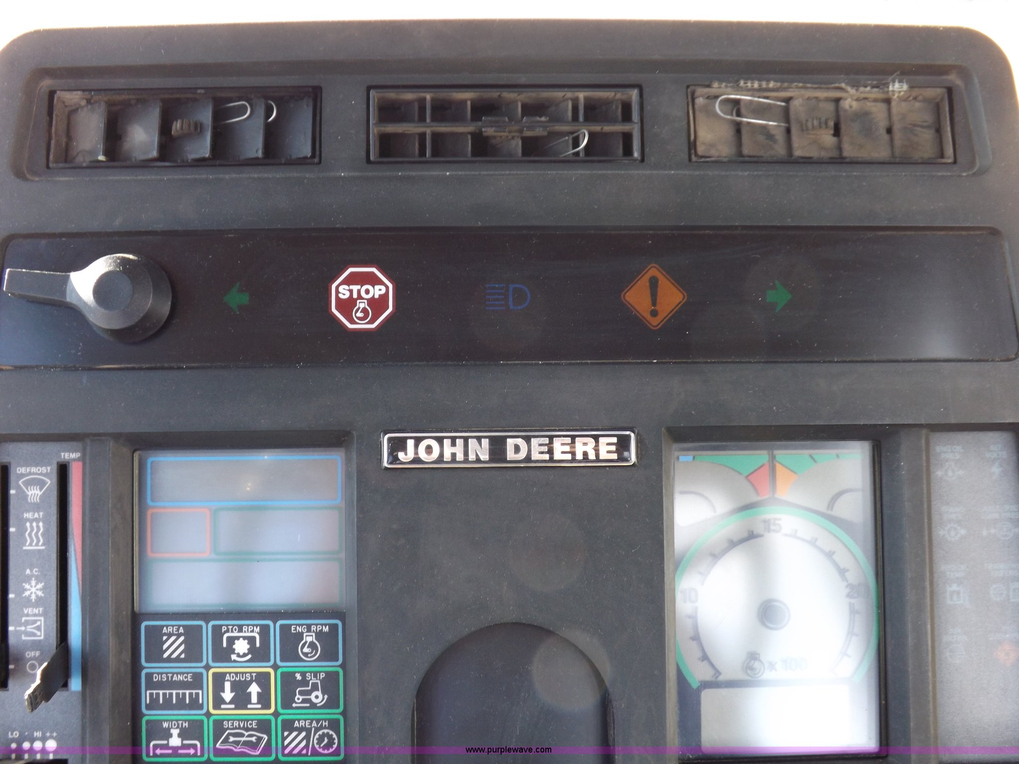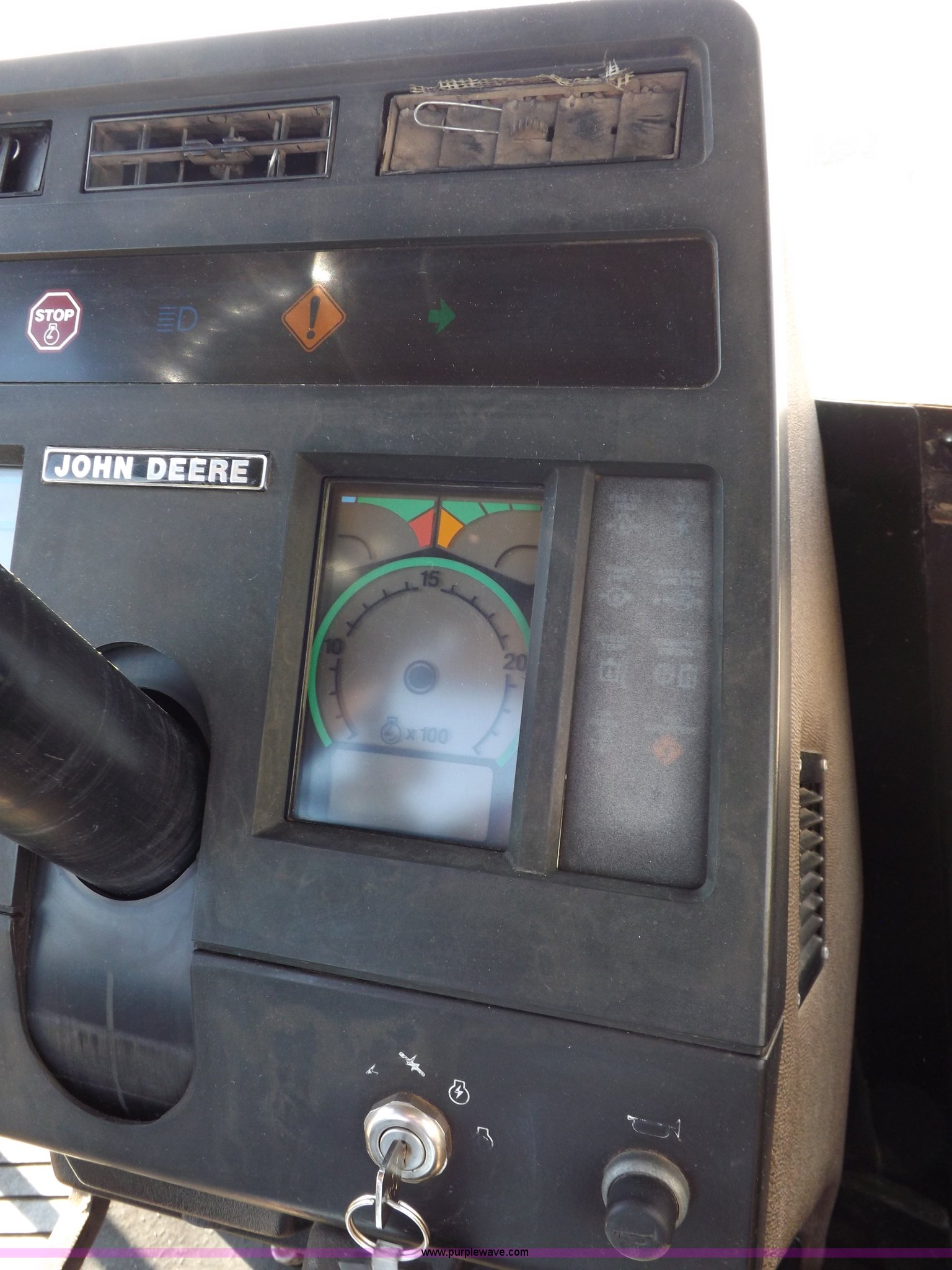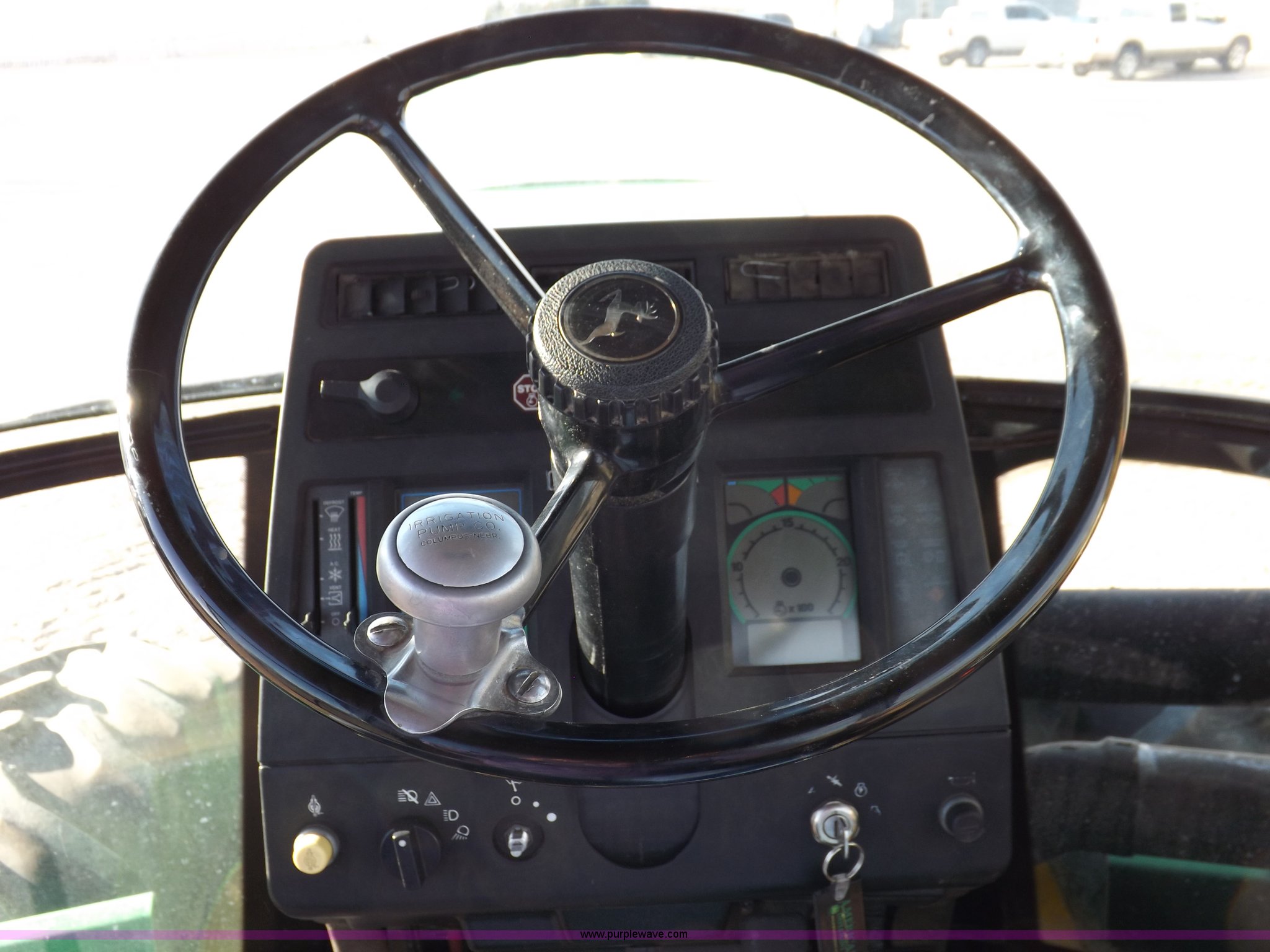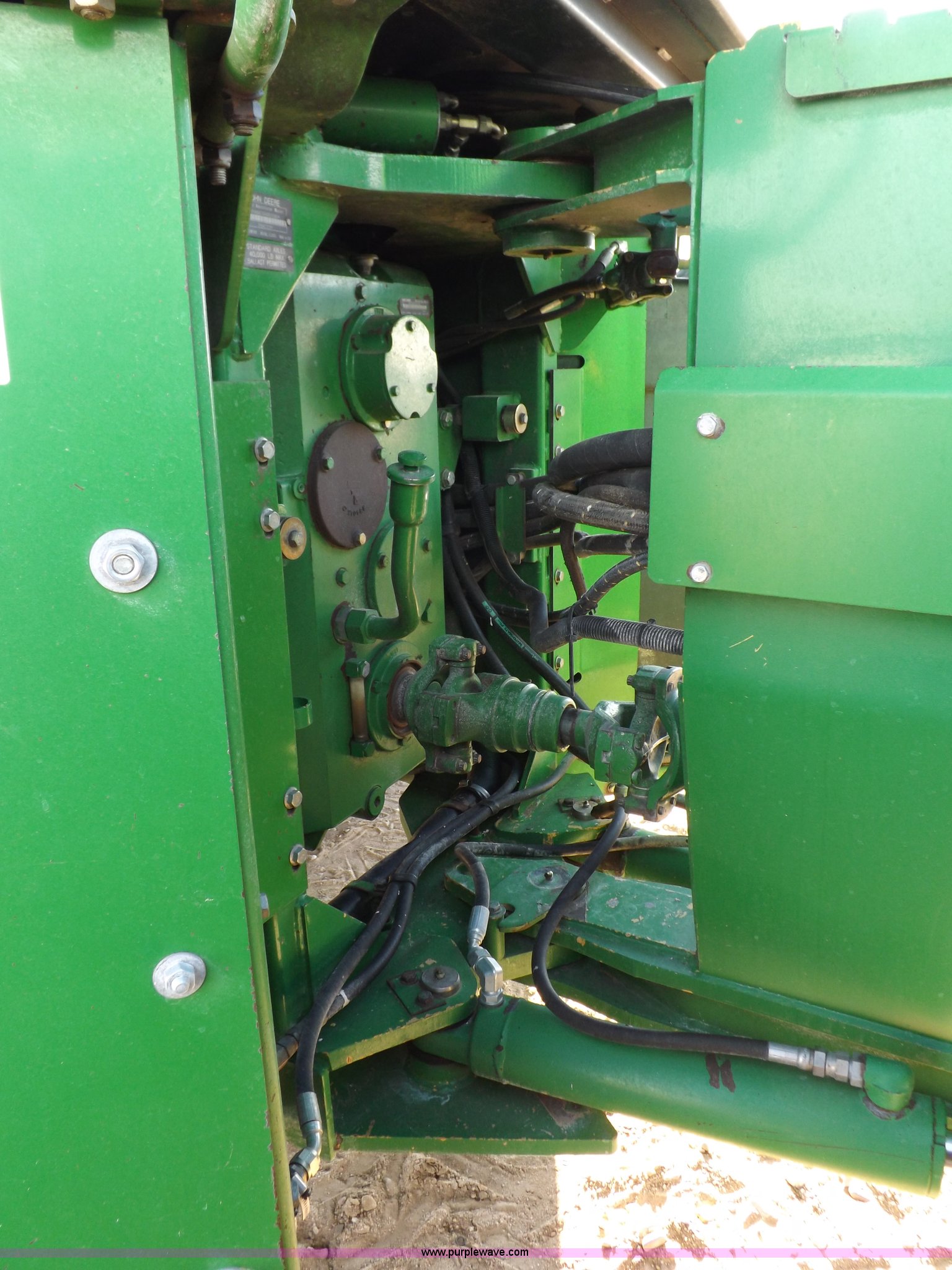 Purple Wave is selling a used Articulated 4-Wheel Drive Tractor in Kansas. This item is a 1996 John Deere 8870 4WD tractor with the following: 2,867 hours on meter, John Deere 6101HRW10 six cylinder diesel engine, 300 HP, Serial RG6101H507021, Differential lock, Partial powershift transmission, 24F-6R gears, AC and heat, AM/FM, Air suspension seat, Ground radar, Tilt steering wheel, Draw bar, (3) rear hydraulic remote sets, Rear inner wheel weights, 134" wheelbase, 520/85R42 dual tires, Upholstery damage, Radiator screen damage, Serial RW8870H005580