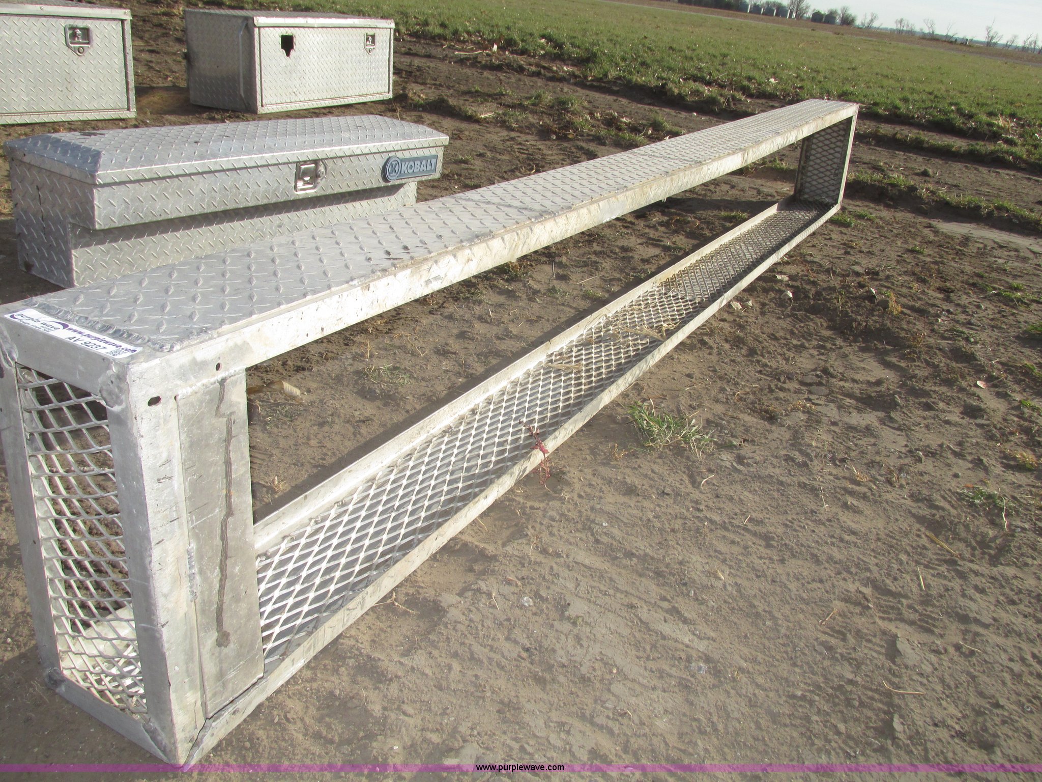 Purple Wave is selling a used Automotive Parts or Acces. in Iowa. This item is a Assorted aluminum diamond plate truck boxes and accessories with the following: 33" x 21" aluminum deck plate, 11'9"L x 10"H x 18"D box, One door unattached but included, (2) 93"L x 18"H x 18"D hi-side boxes, One door unattached, 48"L x 18"H x 18"D hi-side box, One latch missing, 24" x 12" x 16" under box, Kobalt 50" x 12" x 12" lo-side box, 11'8" x 17"W x 8"D aluminum frame support, Assorted brackets and extensions, Some damaged and parts may be missing