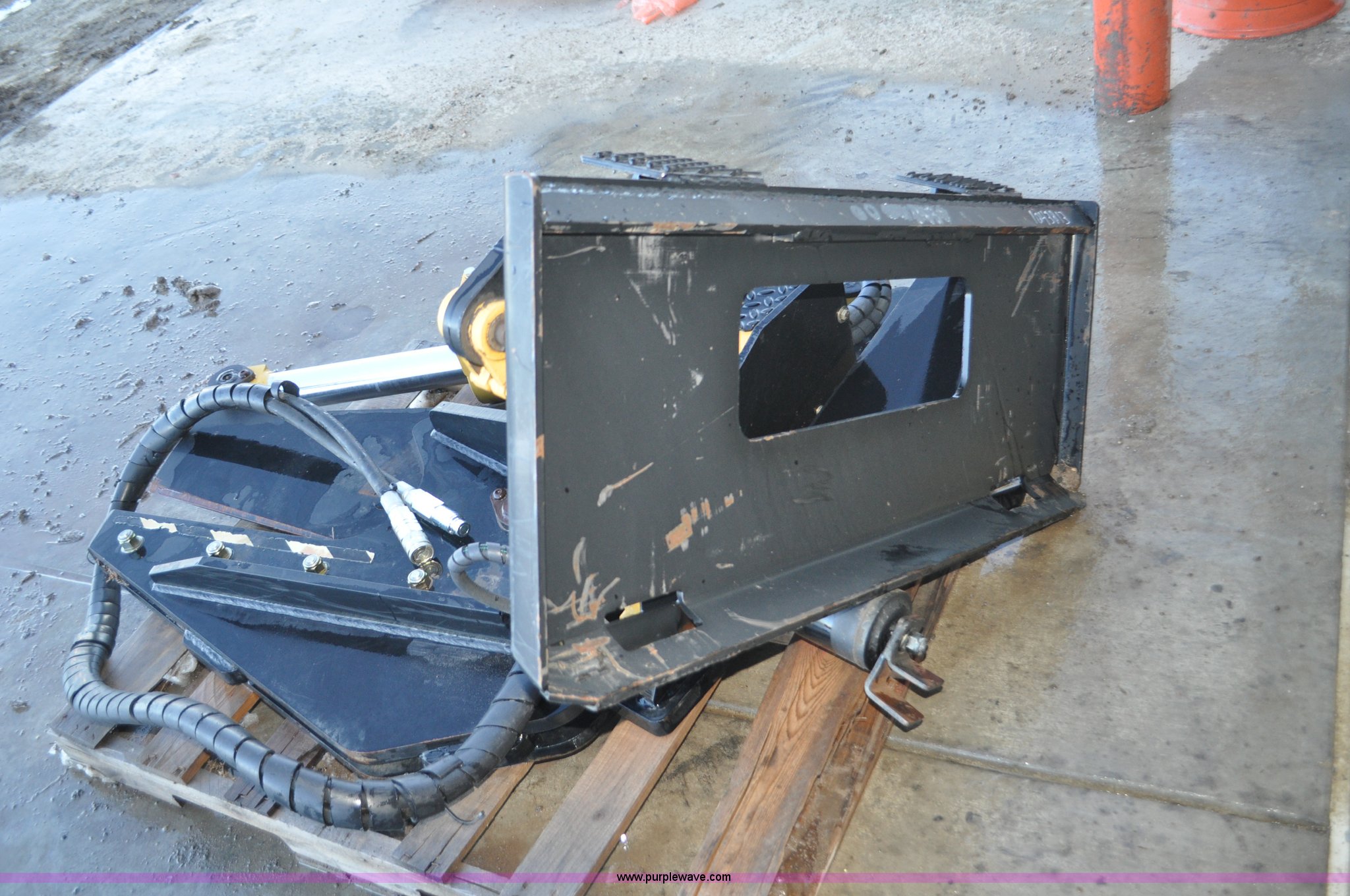 Timber HT skid steer rotating tree shear. Hydraulic rotation, Electric switch for cut/rotate missing, Unit# 1043813. Bobcat of the Rockies. 1608 E. Allison Road. Cheyenne, WY 82007