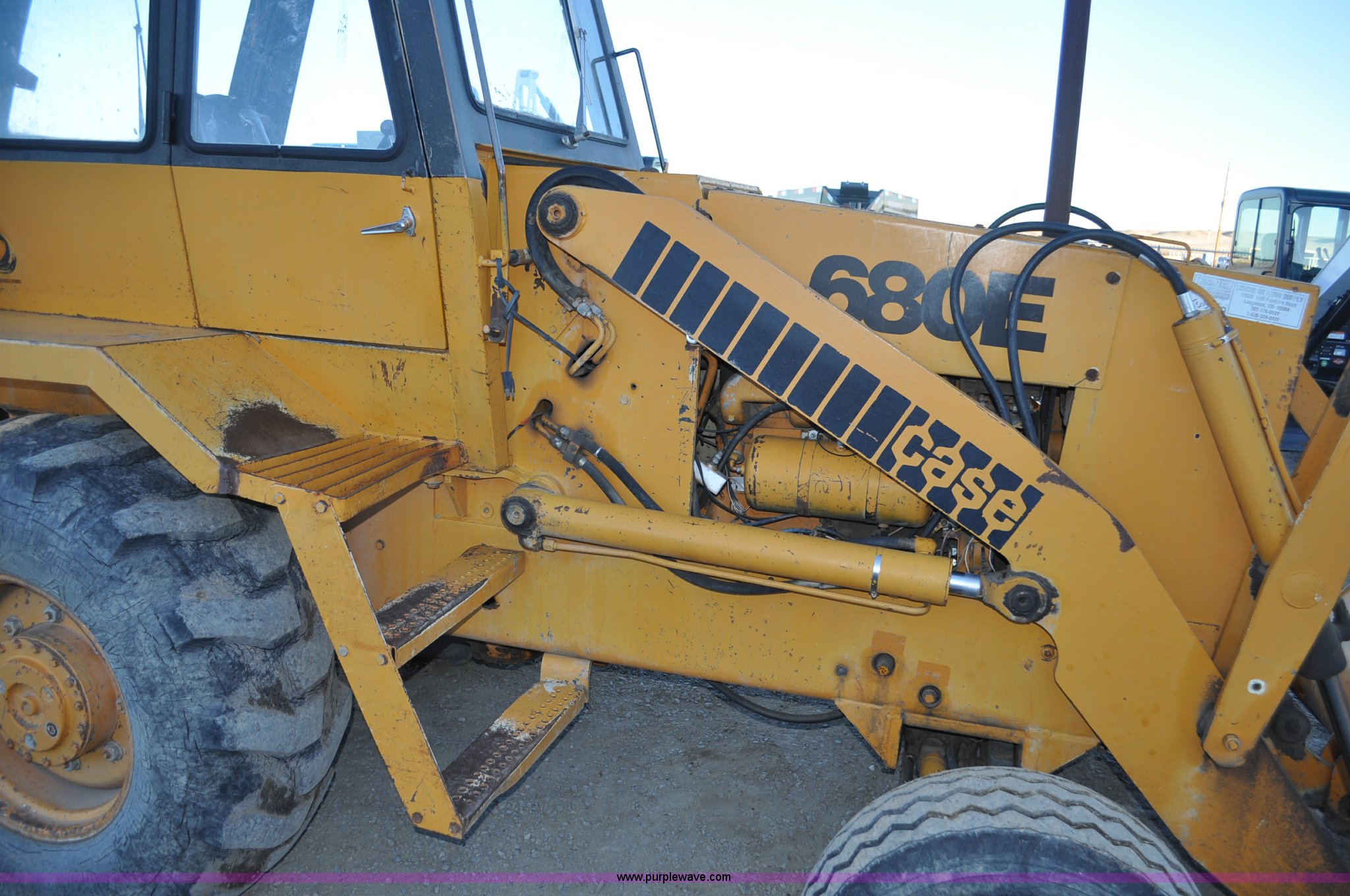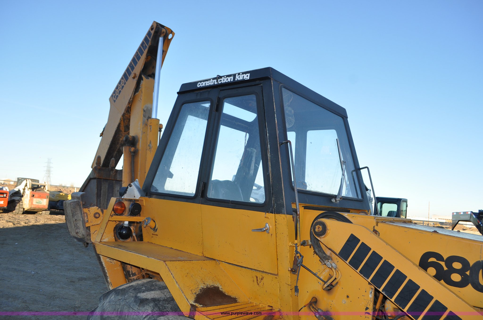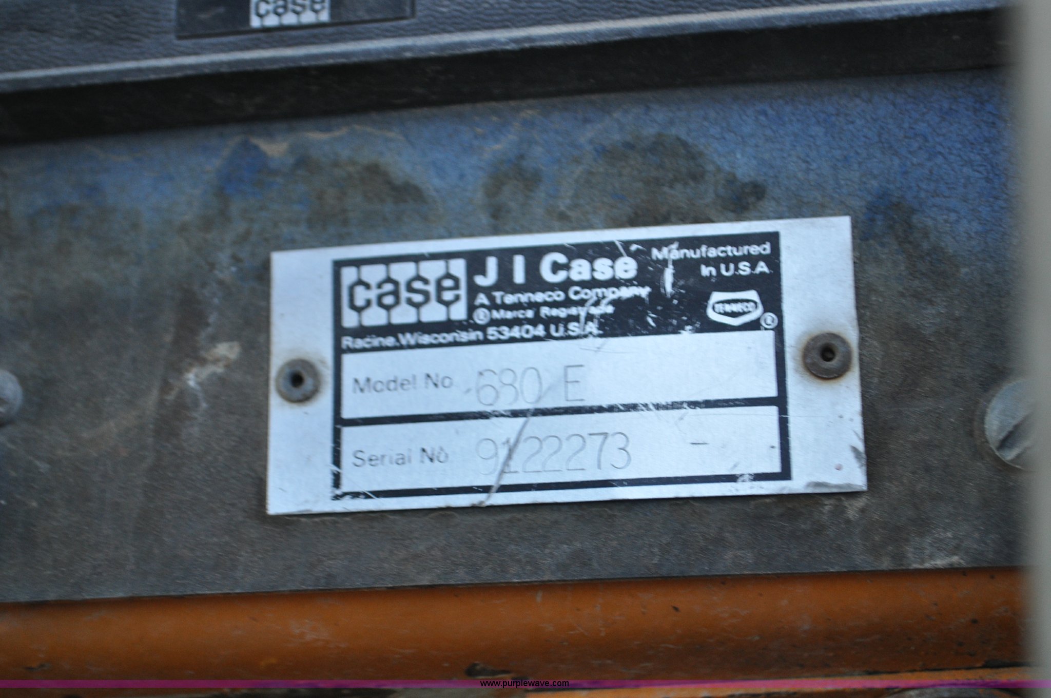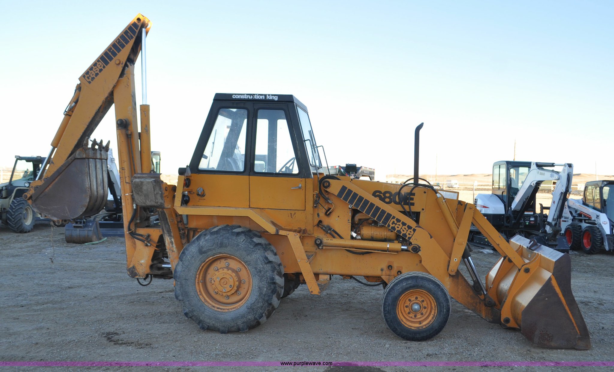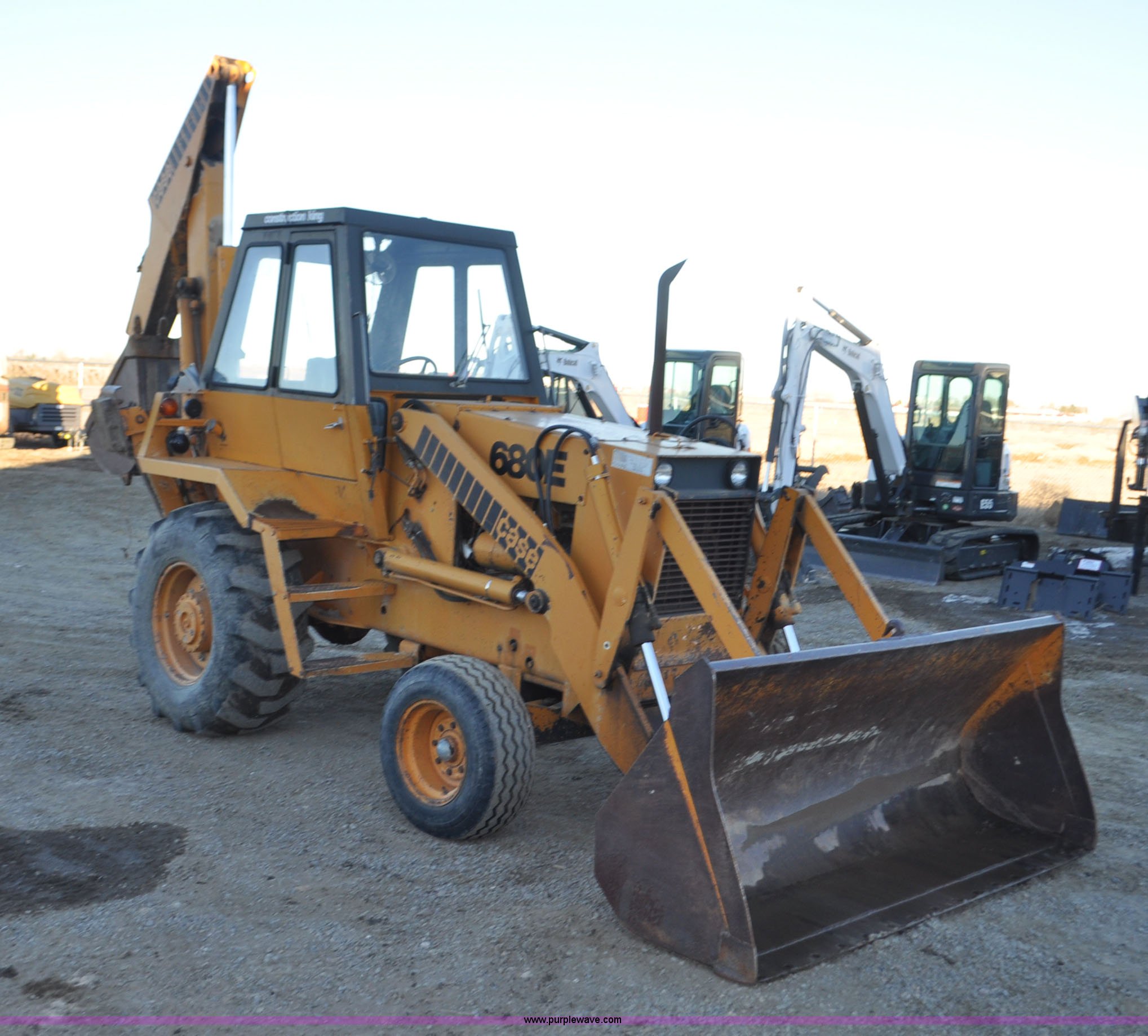 Purple Wave is selling a used Tractor Loader Backhoe in Wyoming. This item is a 1976 Case 680E Construction King backhoe with the following: 4,810 hours on meter, Case 336 four cylinder diesel engine, 80HP, Syncromesh transmission, 4F-4R gears, ROPS, Serial 649, Spring suspension seat, Windshield wipers, Wobble stick backhoe controls, Standard front end loader, Case 96"W bucket, Bucket has holes for bolt-on cutting edge, 24"W toothed backhoe bucket, Front and rear work lights, Air brakes, 11L-16 front tires, 19.5L-24 rear tires, 13,902 lbs. base operating weight, Serial 9122273, Unit# 1089015