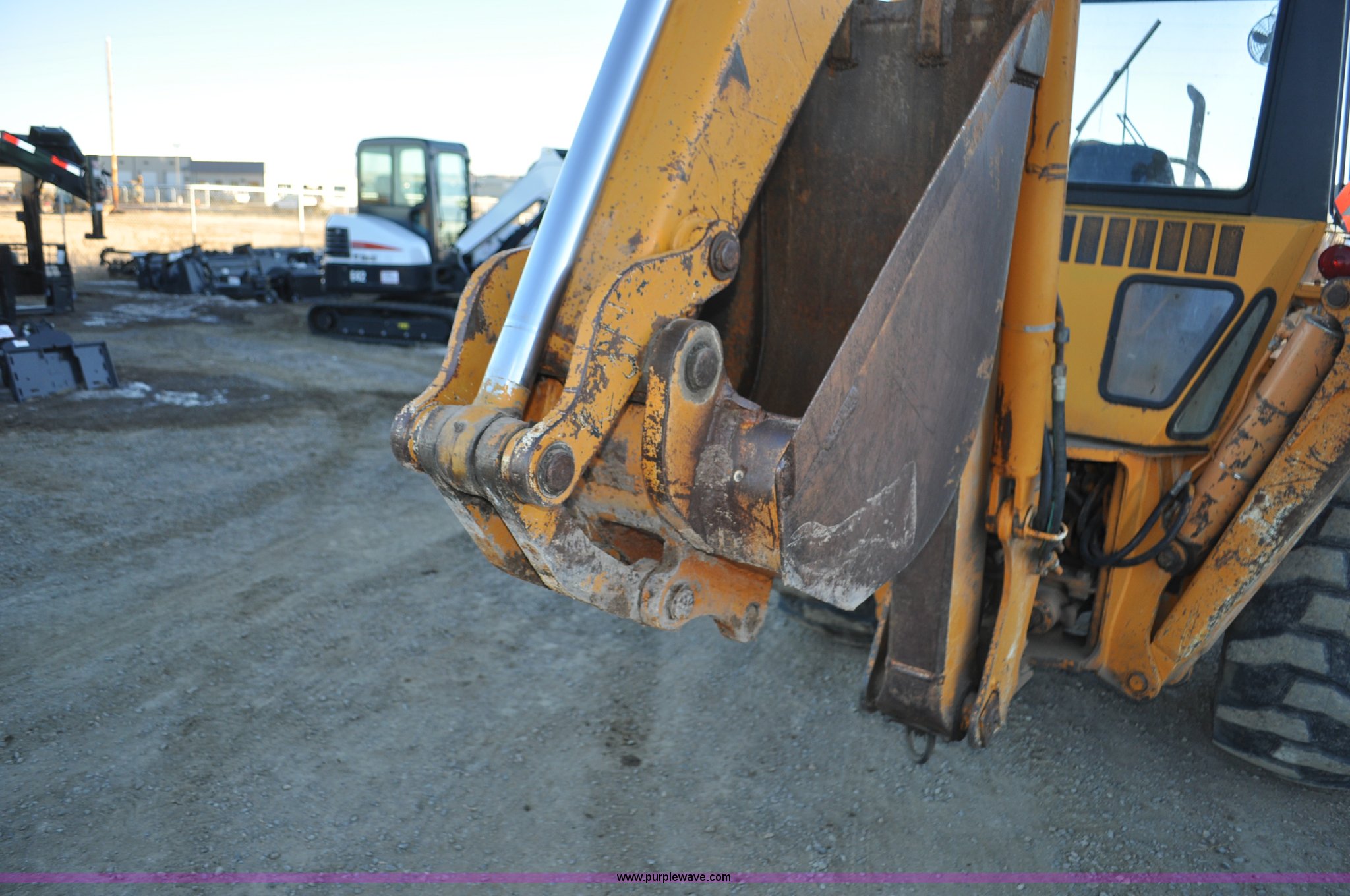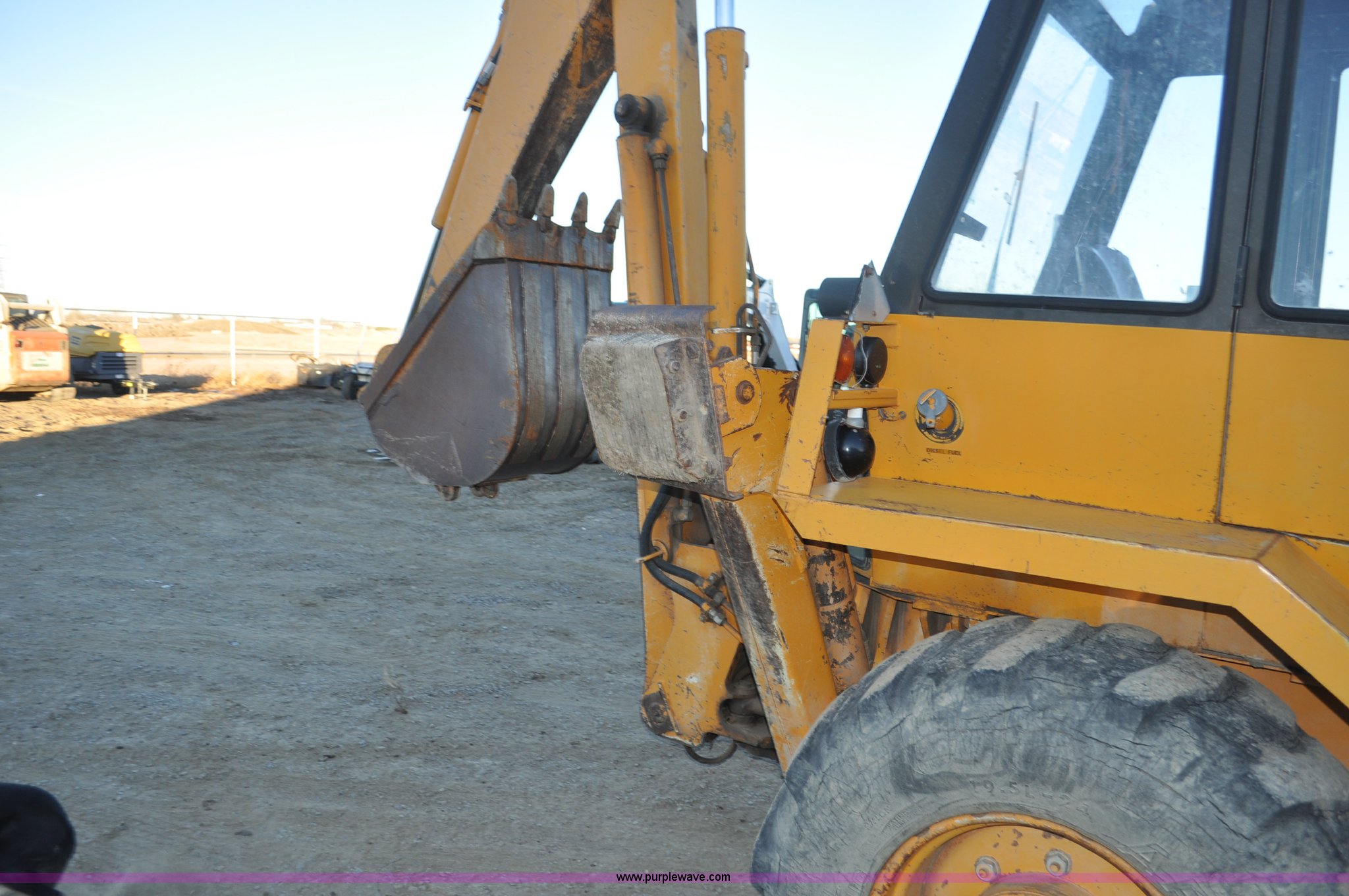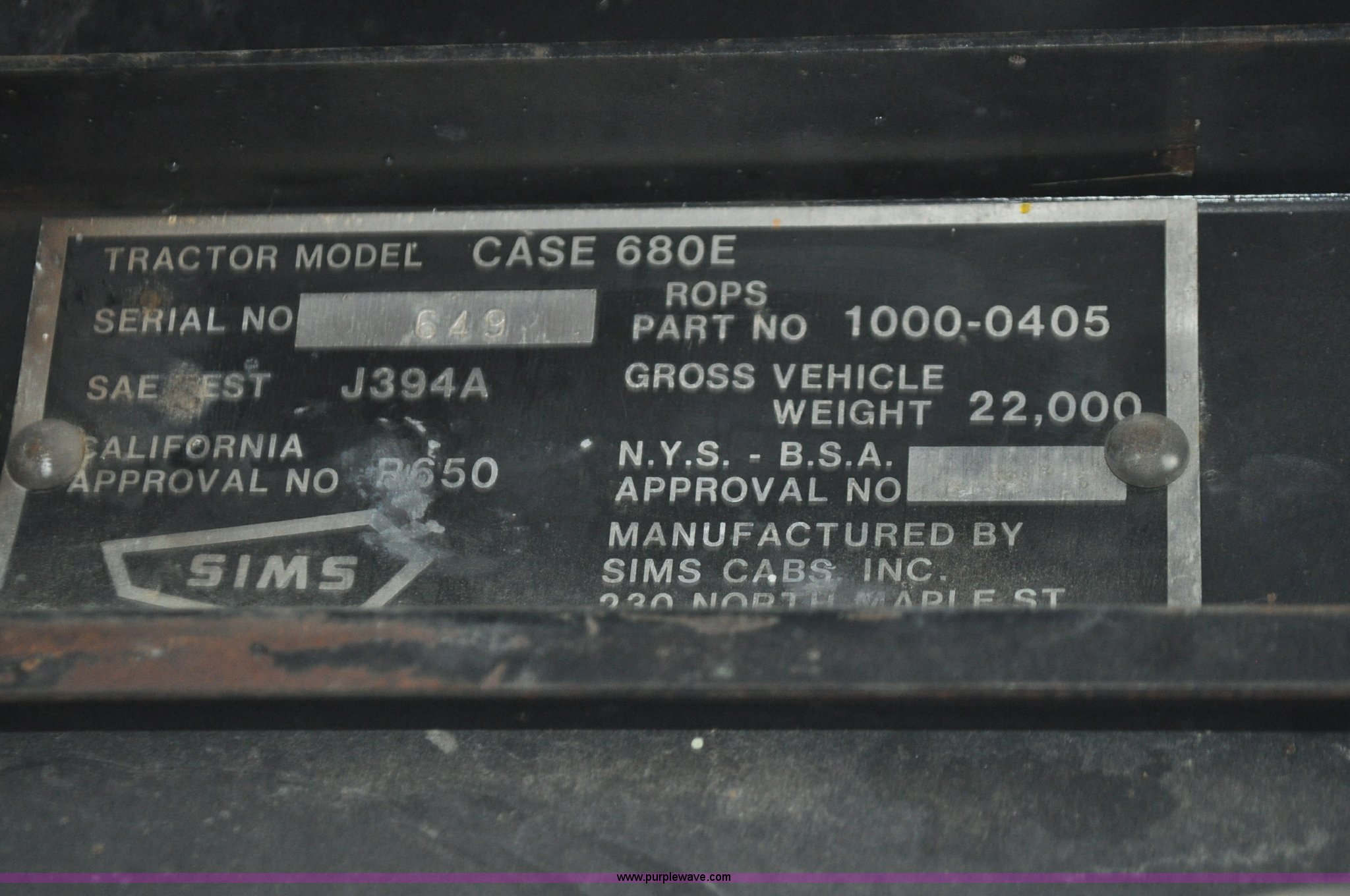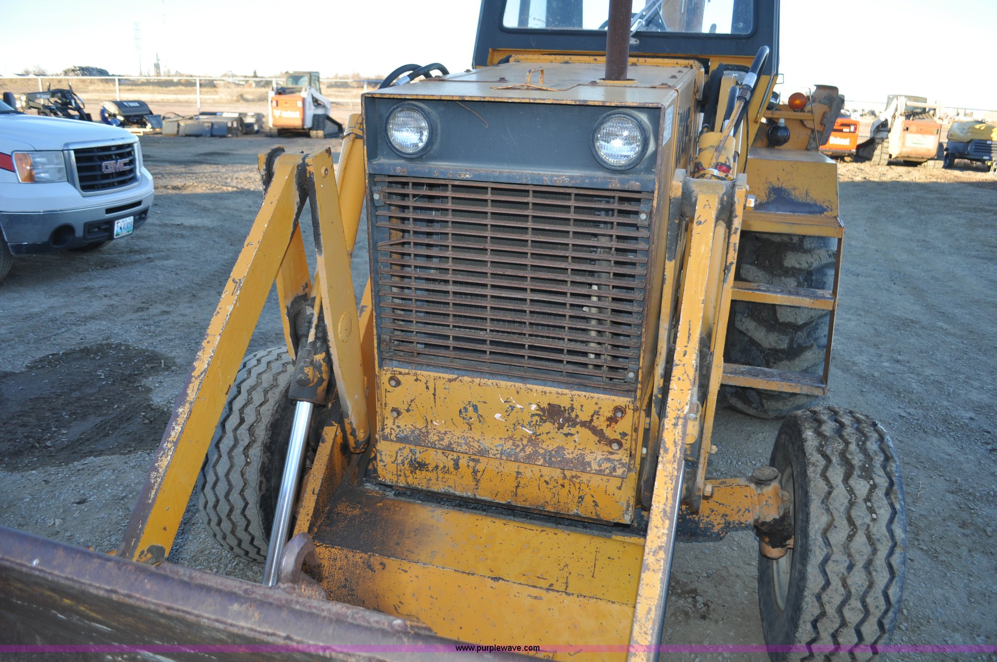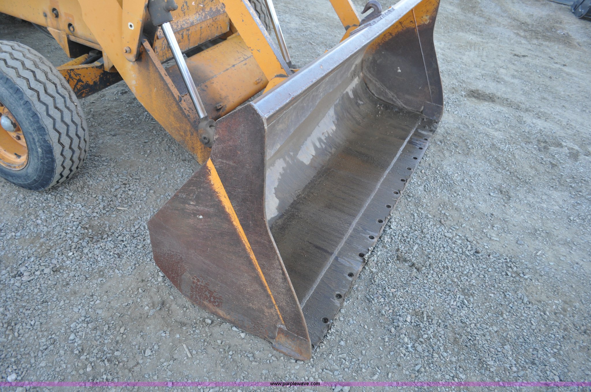 Purple Wave is selling a used Tractor Loader Backhoe in Wyoming. This item is a 1976 Case 680E Construction King backhoe with the following: 4,810 hours on meter, Case 336 four cylinder diesel engine, 80HP, Syncromesh transmission, 4F-4R gears, ROPS, Serial 649, Spring suspension seat, Windshield wipers, Wobble stick backhoe controls, Standard front end loader, Case 96"W bucket, Bucket has holes for bolt-on cutting edge, 24"W toothed backhoe bucket, Front and rear work lights, Air brakes, 11L-16 front tires, 19.5L-24 rear tires, 13,902 lbs. base operating weight, Serial 9122273, Unit# 1089015
