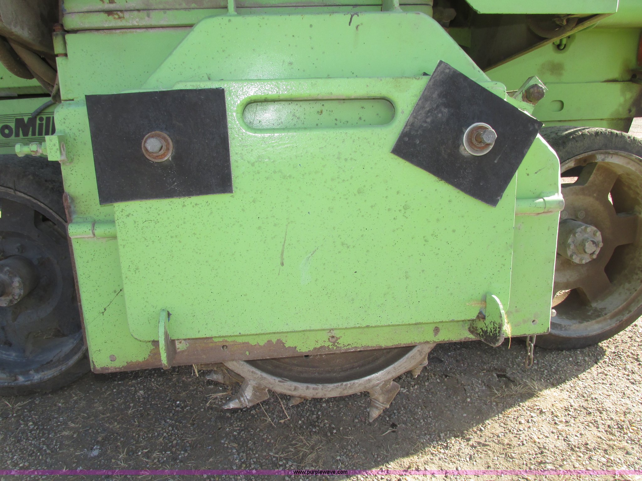 Raygo Barco Mill 100 milling machine. 6,267 hours on meter, John Deere four cylinder diesel engine, Hydrostatic transmission, 12"W drum cut Angle adjustment, 22" drum diameter, Front wheel steer, Rear wheel steer, Four wheel steer, (8) suitcase weights, Hazard light, 28 x 10 x 22 hard rubber tires, Torque hub rebuilt June 2014, Steering cylinder replaced 2012, Sand blasted and repainted 2012, Brakes and brake lines replaced 2012, Master cylinder rebuilt 2012, Tools are not included, Serial W010930605. View equipment video. Midwest Coatings. 1425 280th Street. Modale, IA 51556