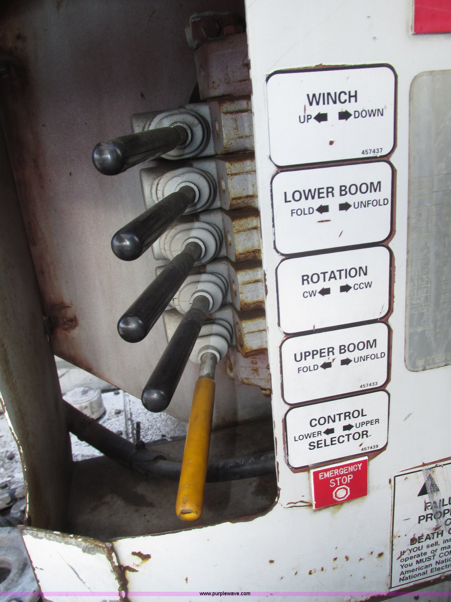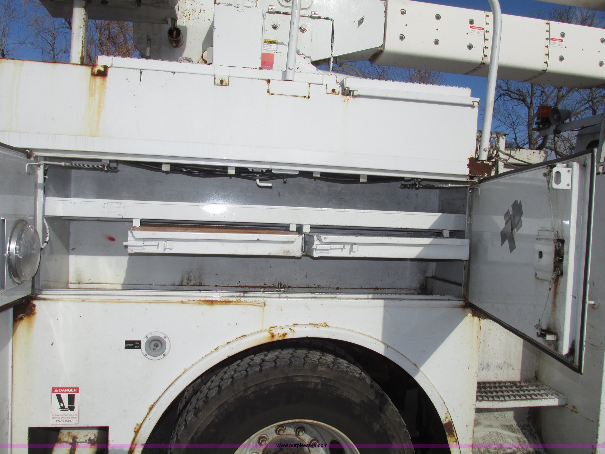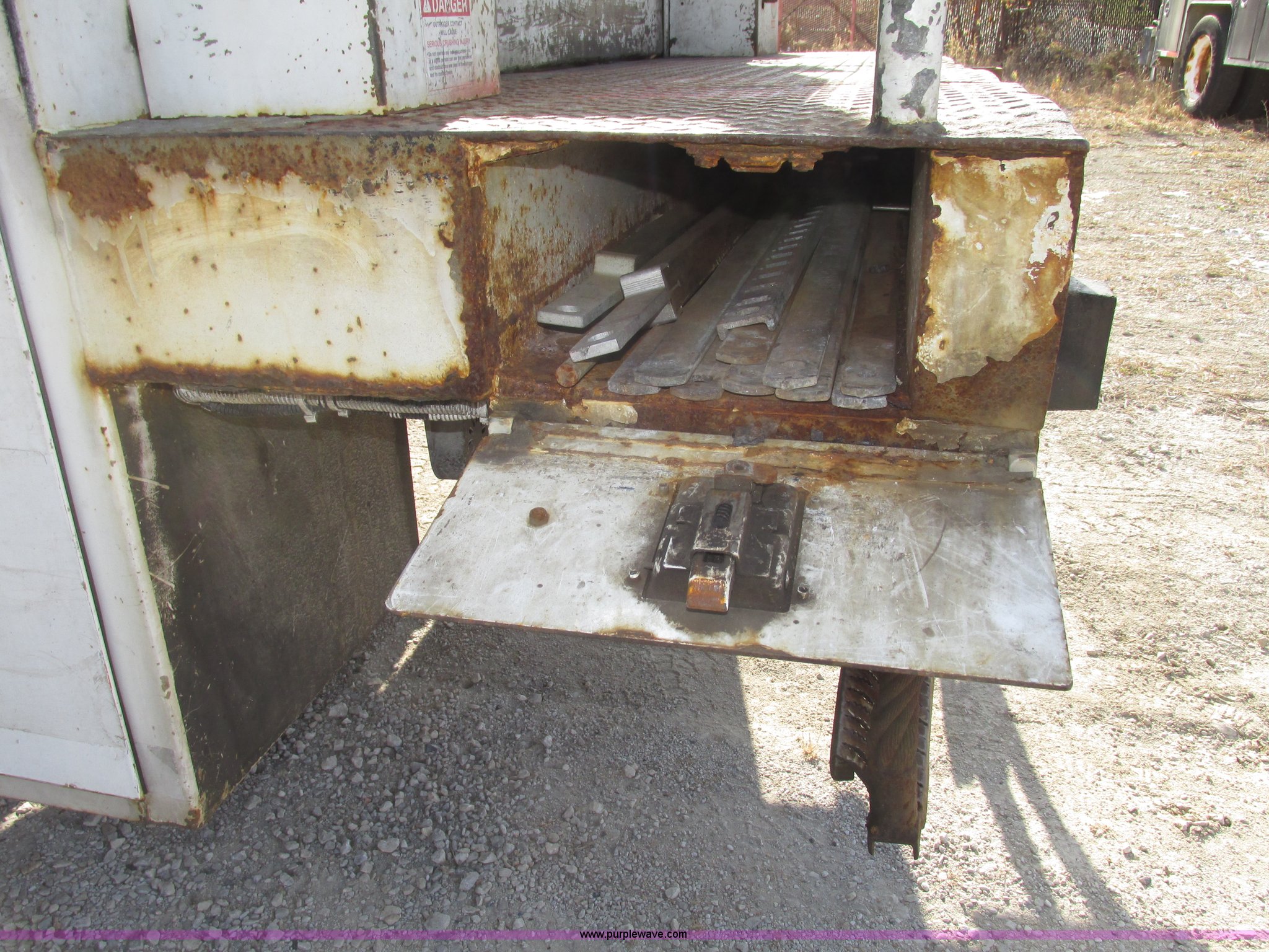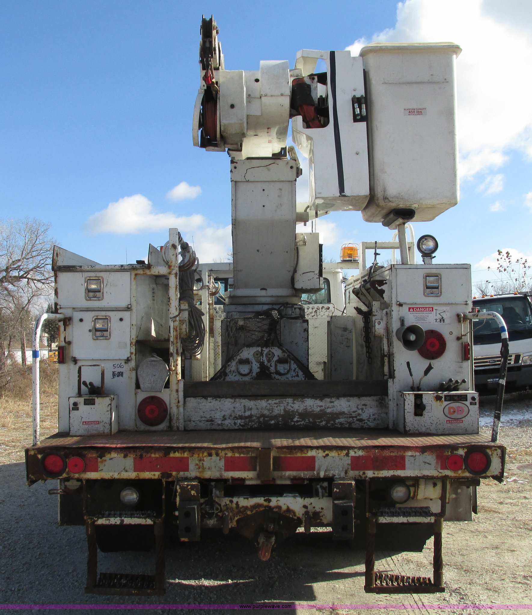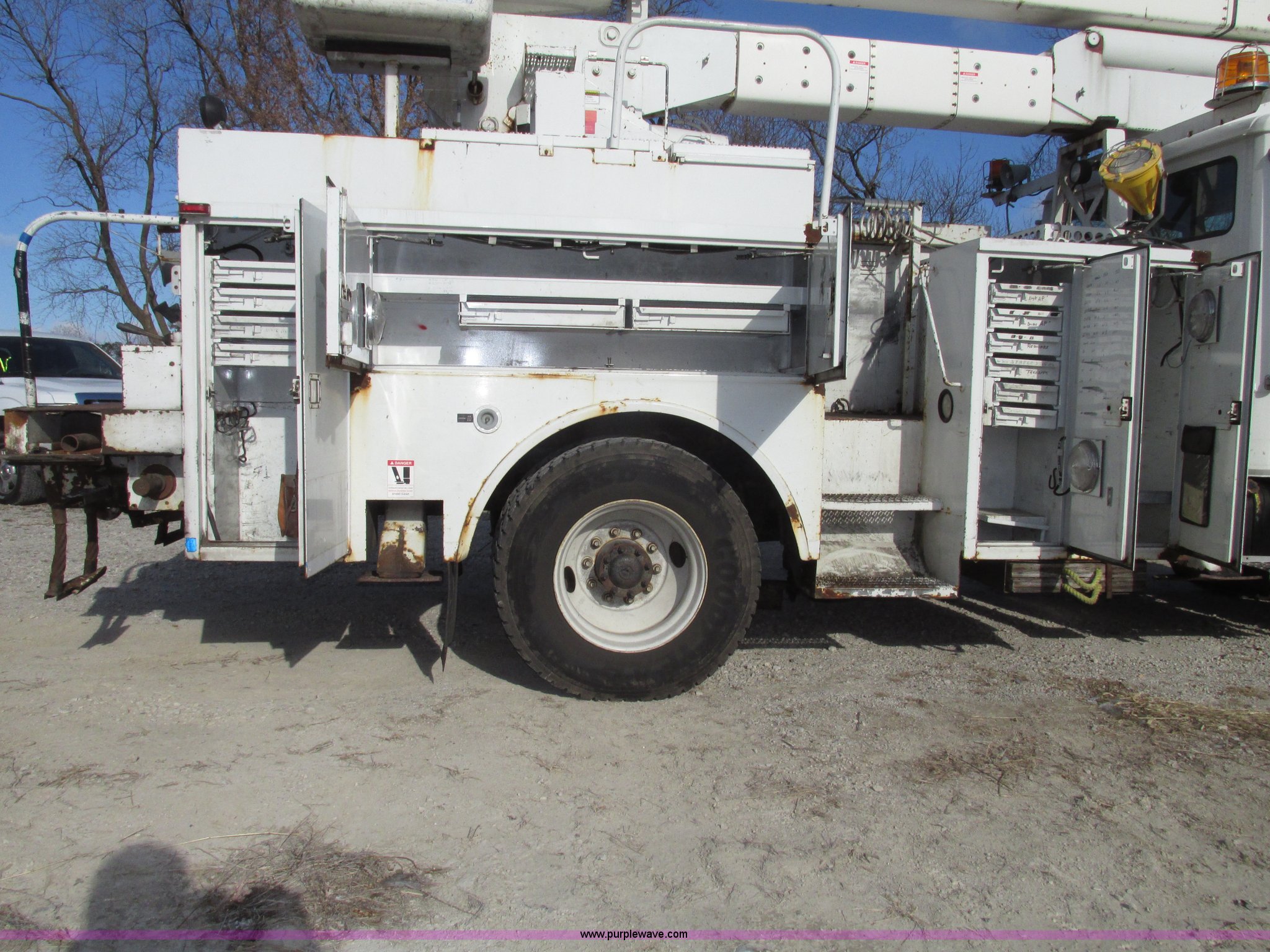 Purple Wave is selling a used Truck Part and Attach. in Nebraska. This item is a 2003 Terex Telelect Hi Range 460M truck boom with the following: 46' rated platform height, 500 lbs rated platform capacity, Rear hydraulic fittings, Basket and ground controls, Single man fiberglass basket, Reading utility bed, 13'1"L x 96"W, (12) compartments, 2" rear bumper, Hazard and beacon lights, 58"L x 16 3/4"W cat walk, 60"W x 19"D front storage bin, 60"W I.D., (4) hydraulic outriggers, (3) 24" x 24" wood pads, Approximately 16"D compartments, Mud flaps, Pintle hitch, Trailer wiring, Gladhand connections, Truck is not included, Unit will be removed from truck prior to auciton, Serial 2030421562, Unit# 506