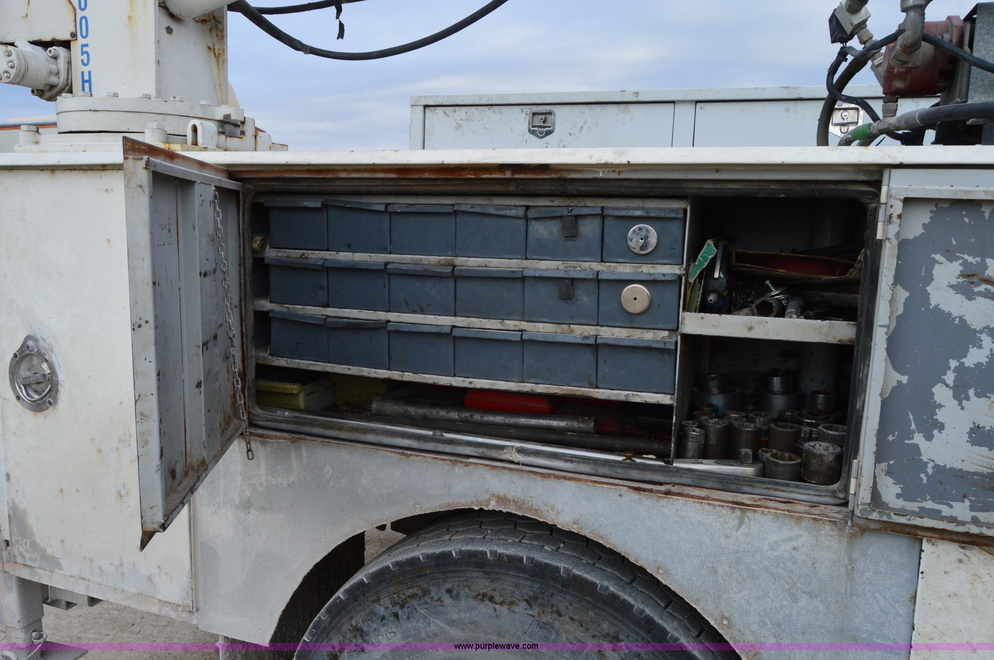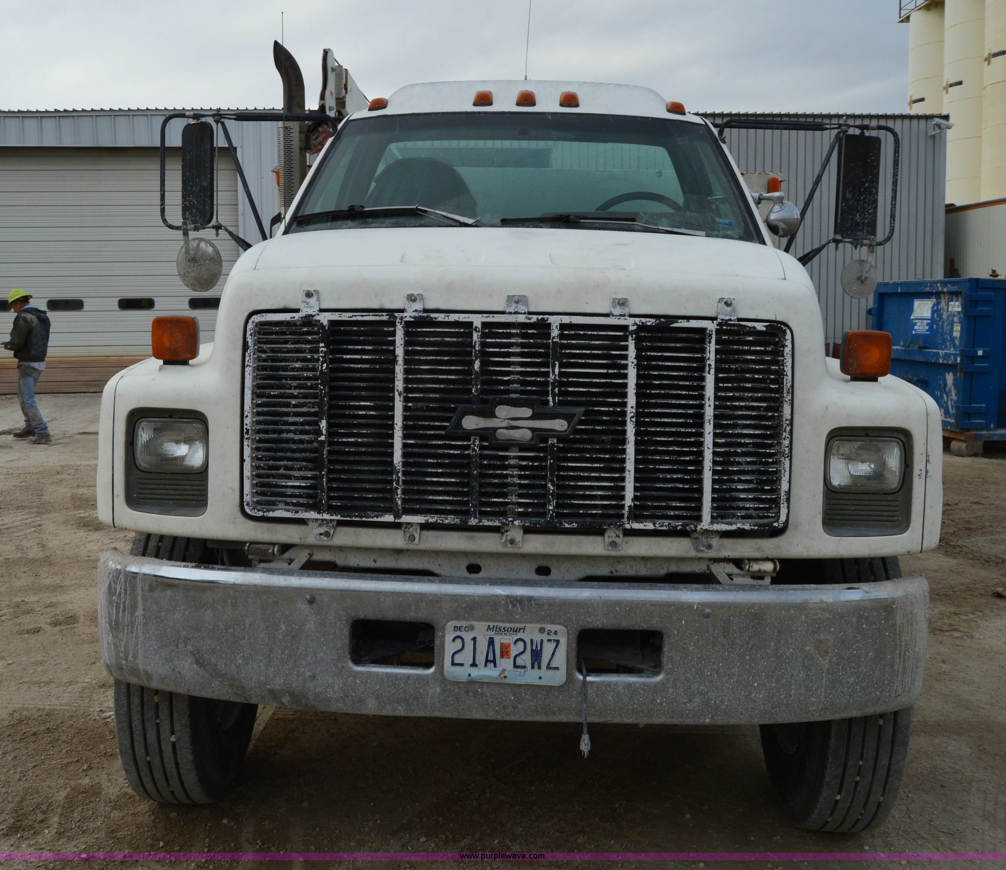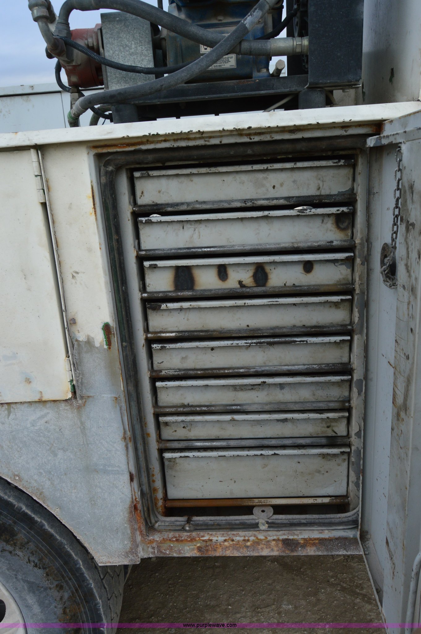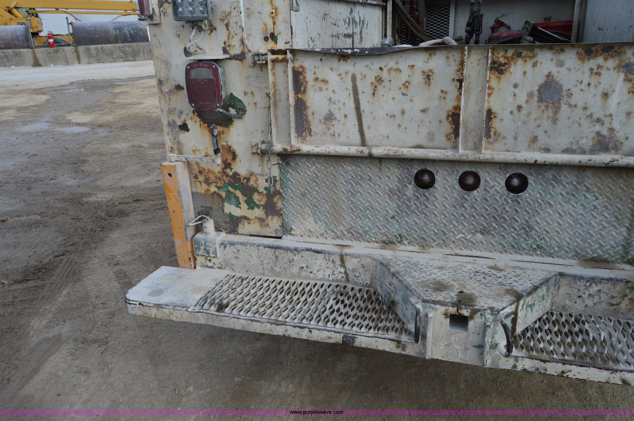 Purple Wave is selling a used Service Truck in Missouri. This item is a 1992 Chevrolet Kodiak service truck with the following: 367,449 miles on odometer, Miles may vary, still in use, Caterpillar 3116 7.6L L6 diesel engine, Five speed manual transmission, Two speed rear end, AC and heat, AM/FM/cassette, Manual windows and locks, Cloth interior, PTO driven air compressor, Auto Crane, Model 5005H, Dual 35 gallon fuel tanks, Rear work lights, Single rear exhaust stack, Receiver hitch, Air brakes, 11R22.5 tires, Tools, welder, and torch bottles are not included, Interior/exterior cosmetic damage, Unit# 01-487