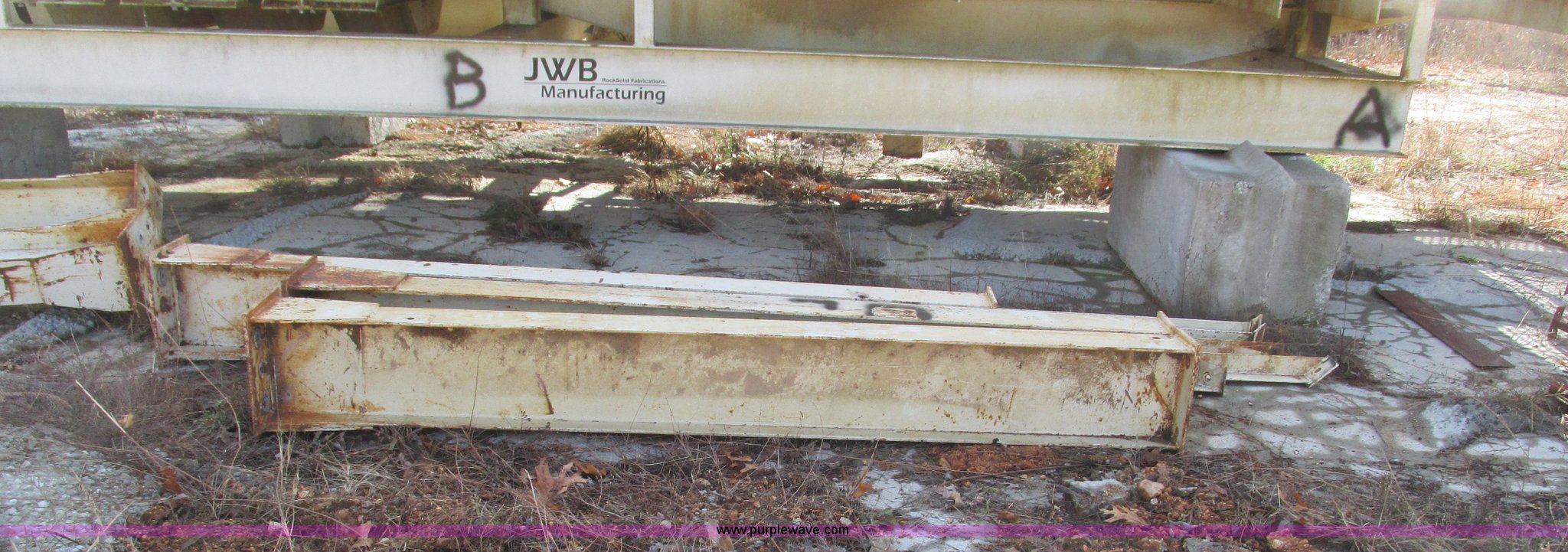 Terex Cedar Rapids TSH5163-26 triple deck vibrating flat screen. Spray bars, JWB frame and stand, (2) discharge chutes 90"L x 21"W x 21"H, 2007 Toshiba three phase electric motor, 5' x 16' screen area, 27" x 27" x 102" discharge chute, 32"W catwalk Surrounds three sides of unit, Approximately 30.5' x 12' outside dimensions, Approximately 7'H stand legs, Approximately 15,300 lbs weight without stand, Serial 054551. Blue Grass Ready Mix. 16500 Bluegrass Drive. St. Robert, MO 65584