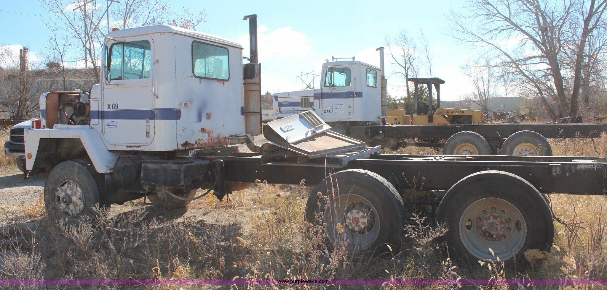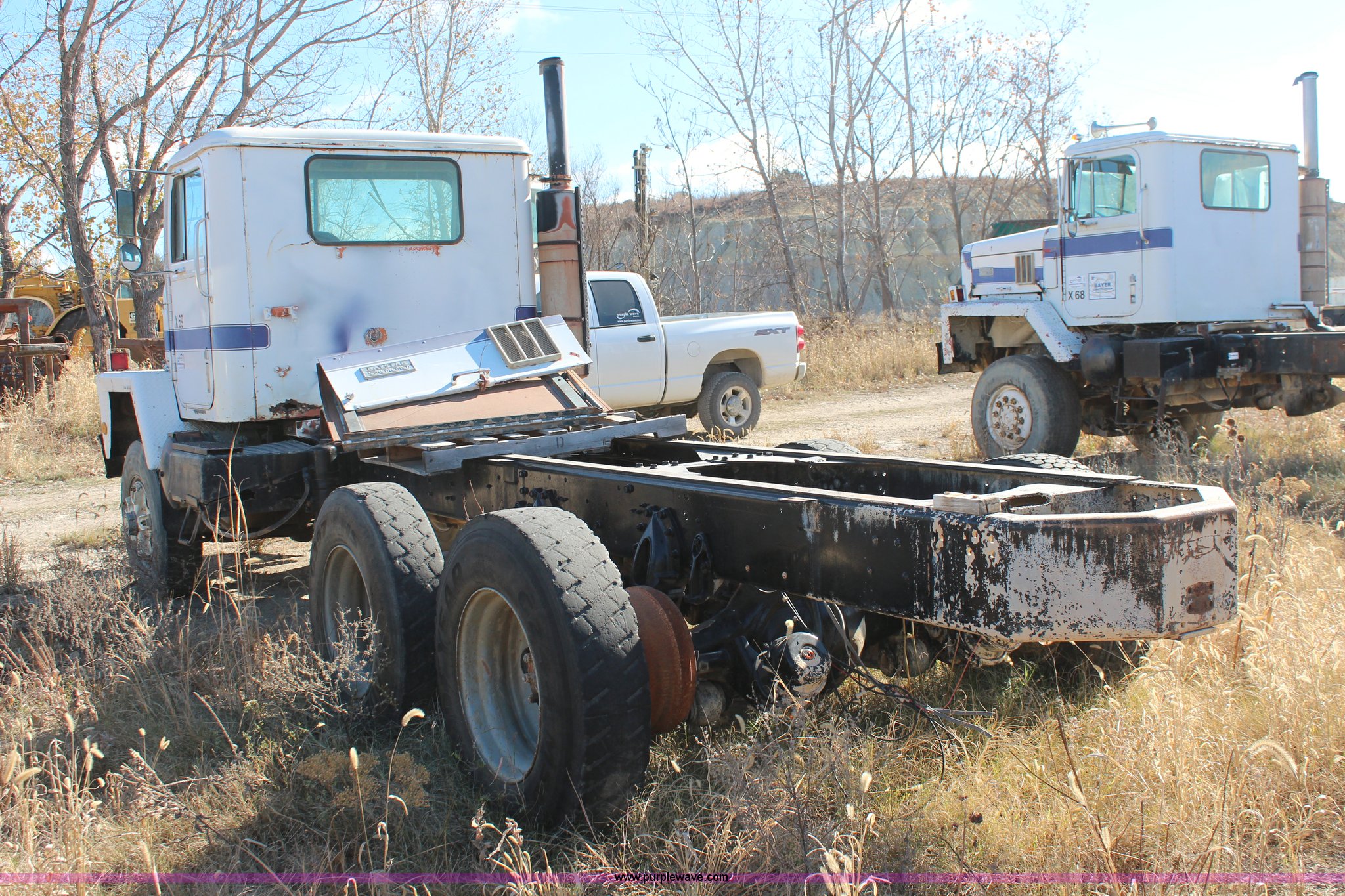 Purple Wave is selling a used Truck Chassis in Kansas. This item is a 1977 International Paystar 5000 truck cab and chassis with the following: 97,720 miles on odometer, 4,313 hours on meter, Eight cylinder diesel engine, Nine speed manual transmission, Twin screw, Heat, Manual windows and locks, 50 gallon fuel tank, 204" from cab to tail, Spring suspension, Air brakes, 11R22.5 tires, Hood has been removed, Dead batteries, Has not been used in two years, Unit# X69