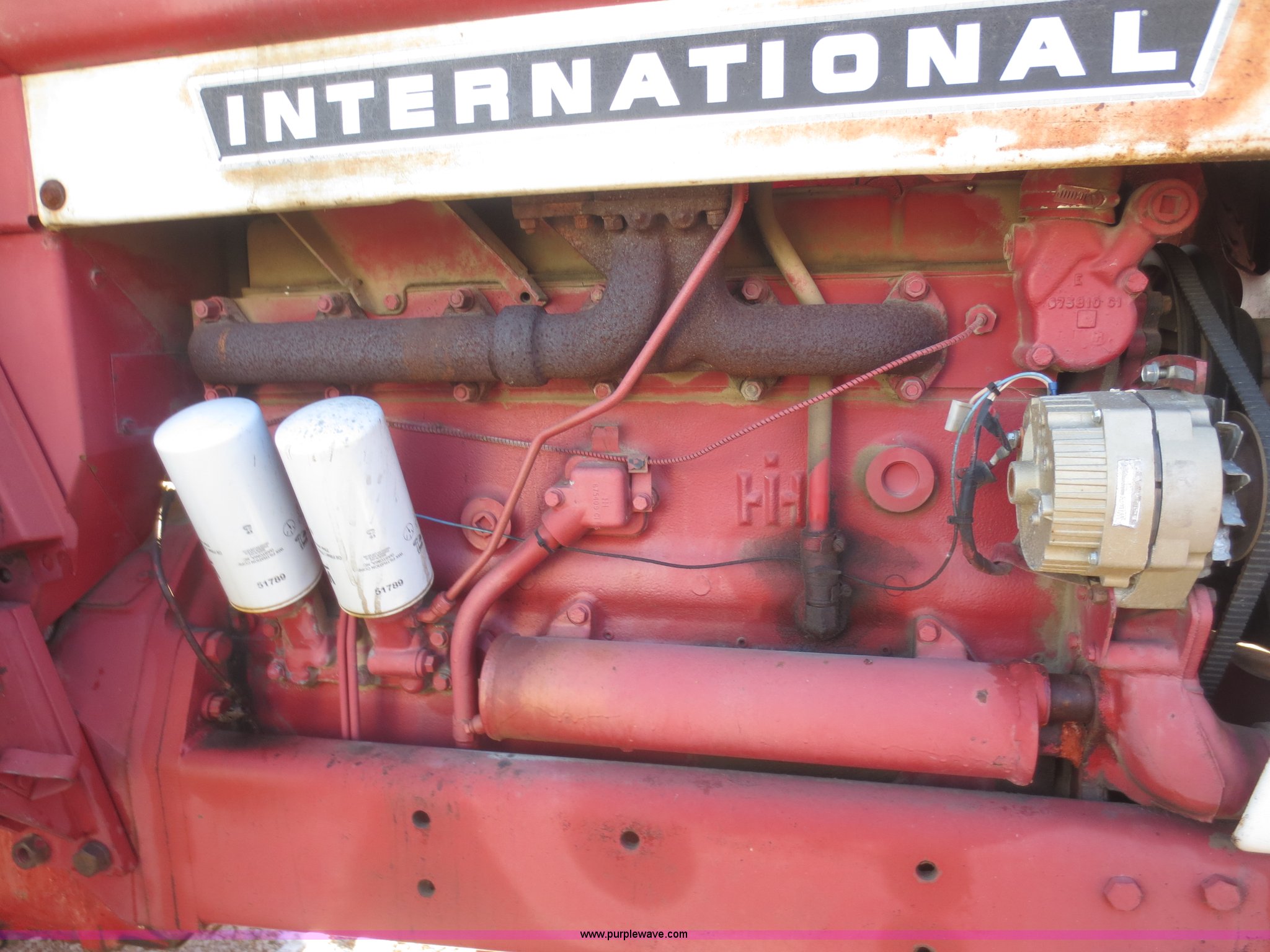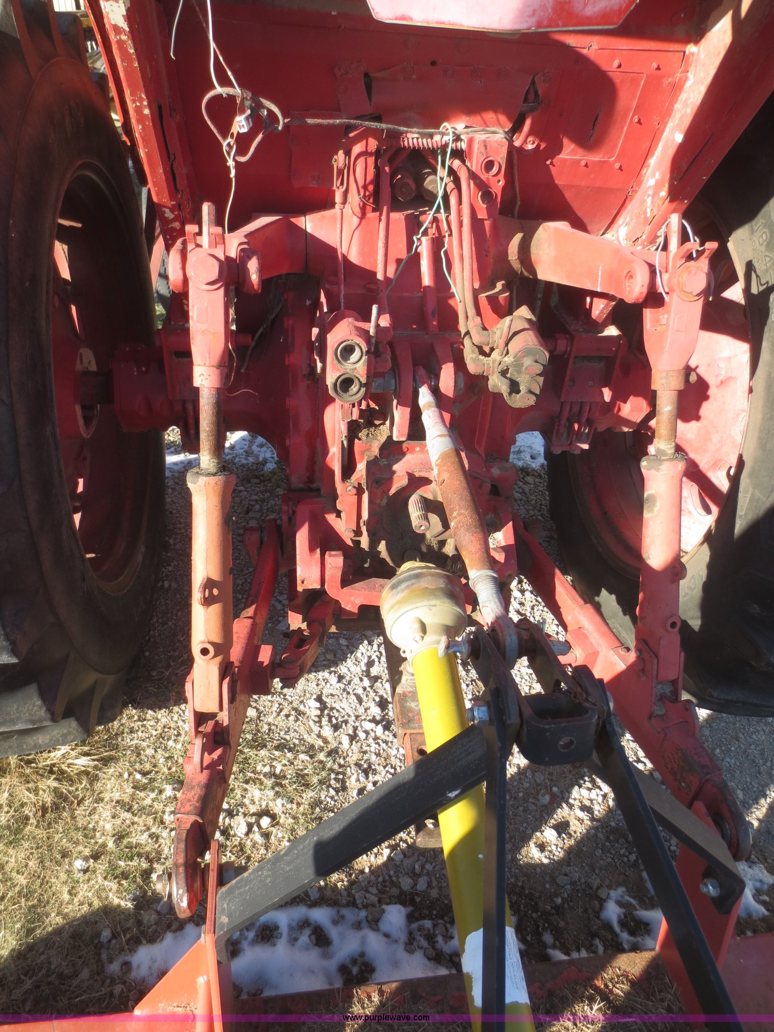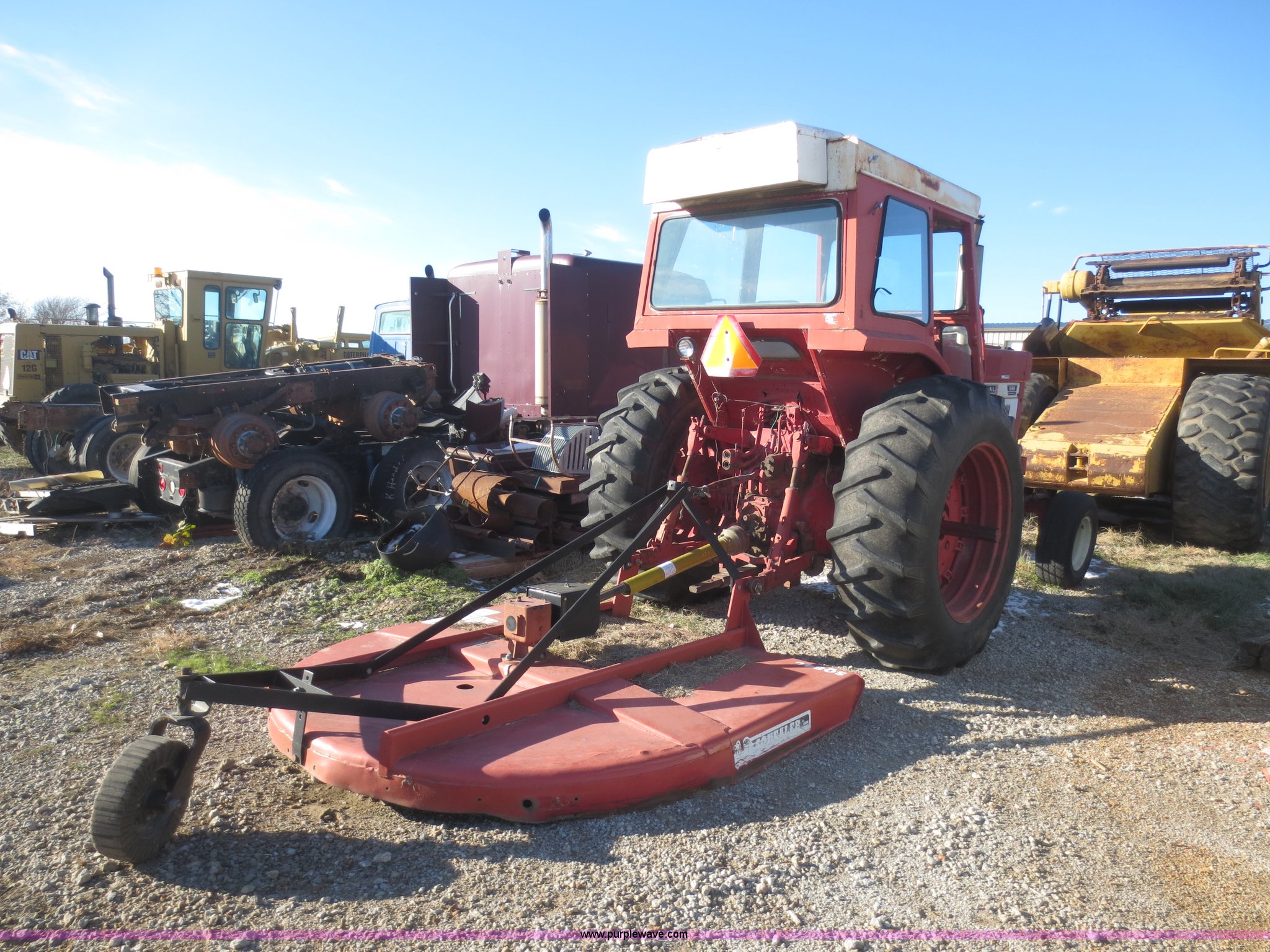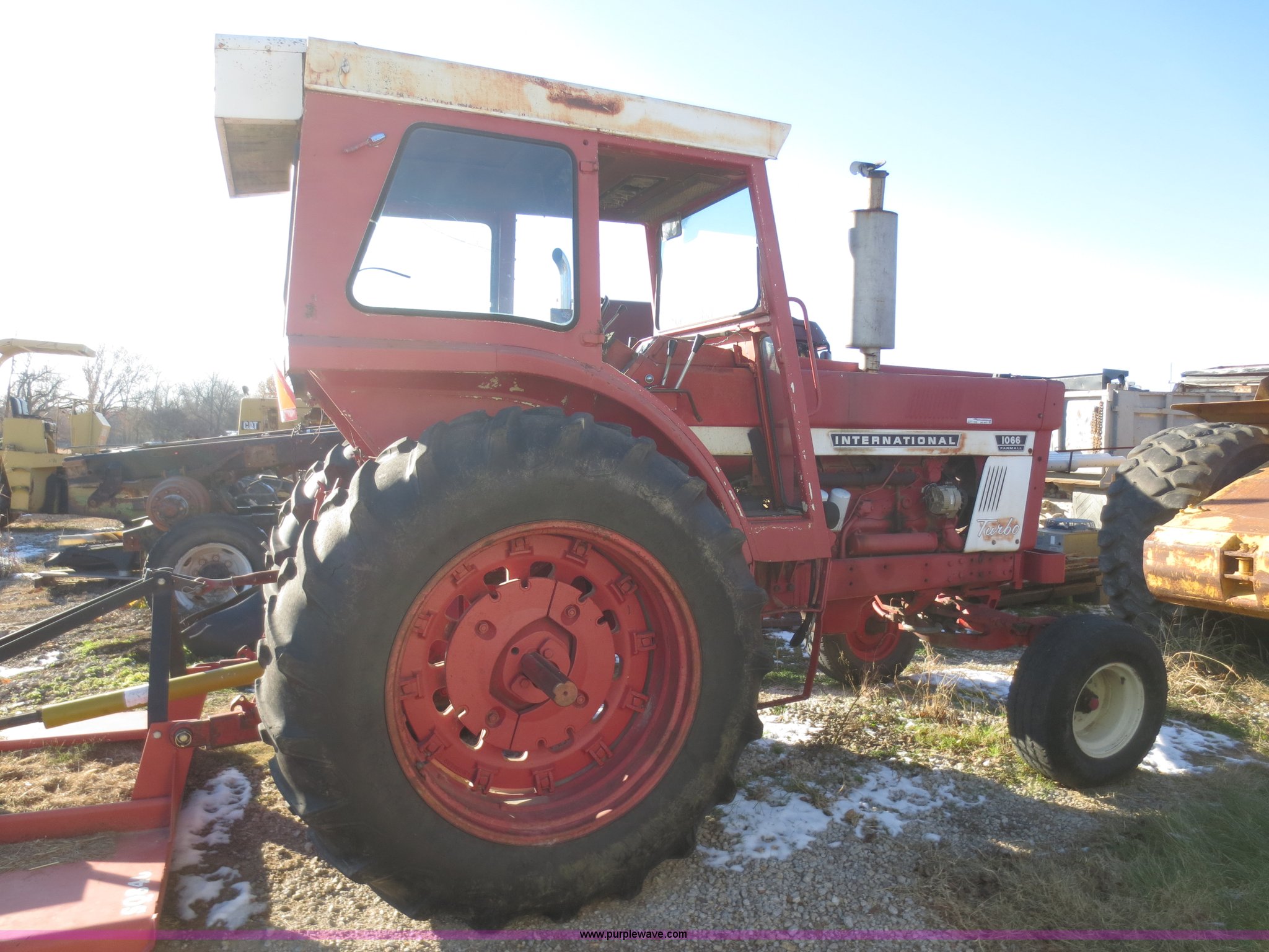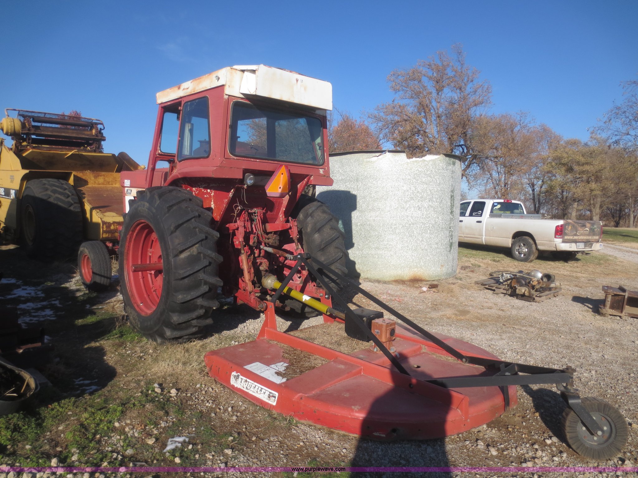 Purple Wave is selling a used Tractor in Kansas. This item is a 1972 International Farmall 1066 tractor with the following: 4,283 hours on meter, International DT214 six cylinder turbo diesel engine, Partial powershift transmission, 16F-8R gears, Torque Amplifier, Heat, Three point, Top link included, Draw bar, 540/1000 PTO, (2) rear hydraulic remotes, Bush Hog SQ840-1 rotary mower, 5'W, Serial 12-03331, LT265/75R16 front tires, 18.4-38 rear tires, Weak battery, Will not shift into reverse, Blown hydraulic hose in dash console, Serial 26101594012754
