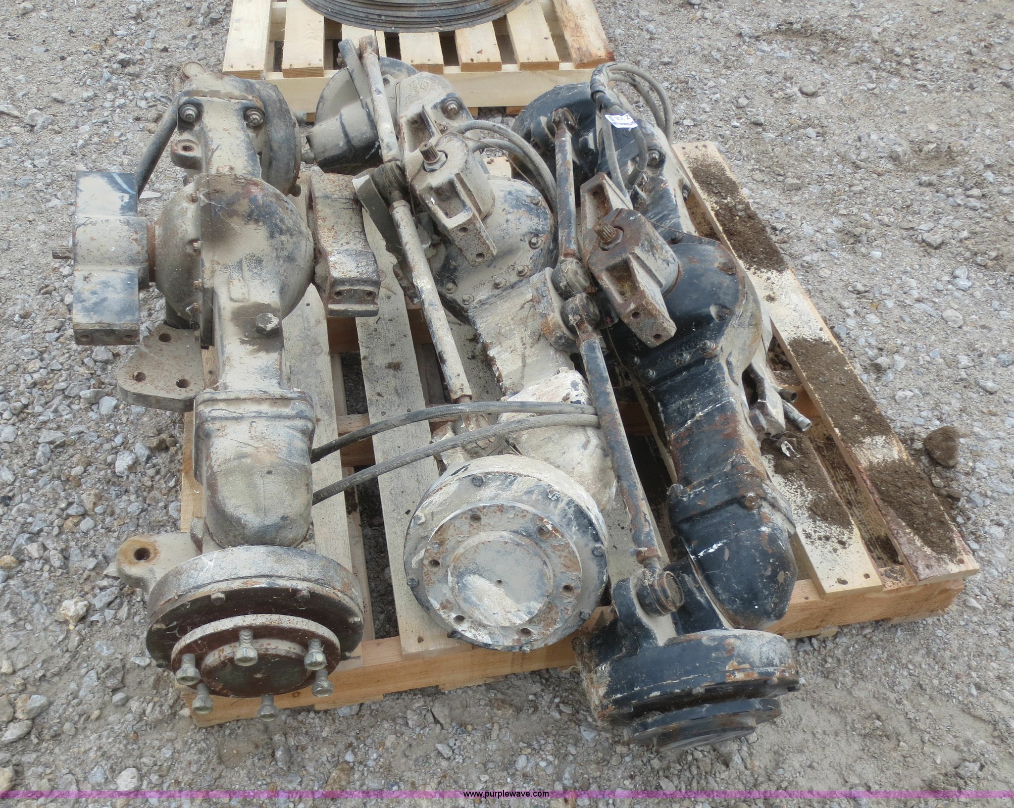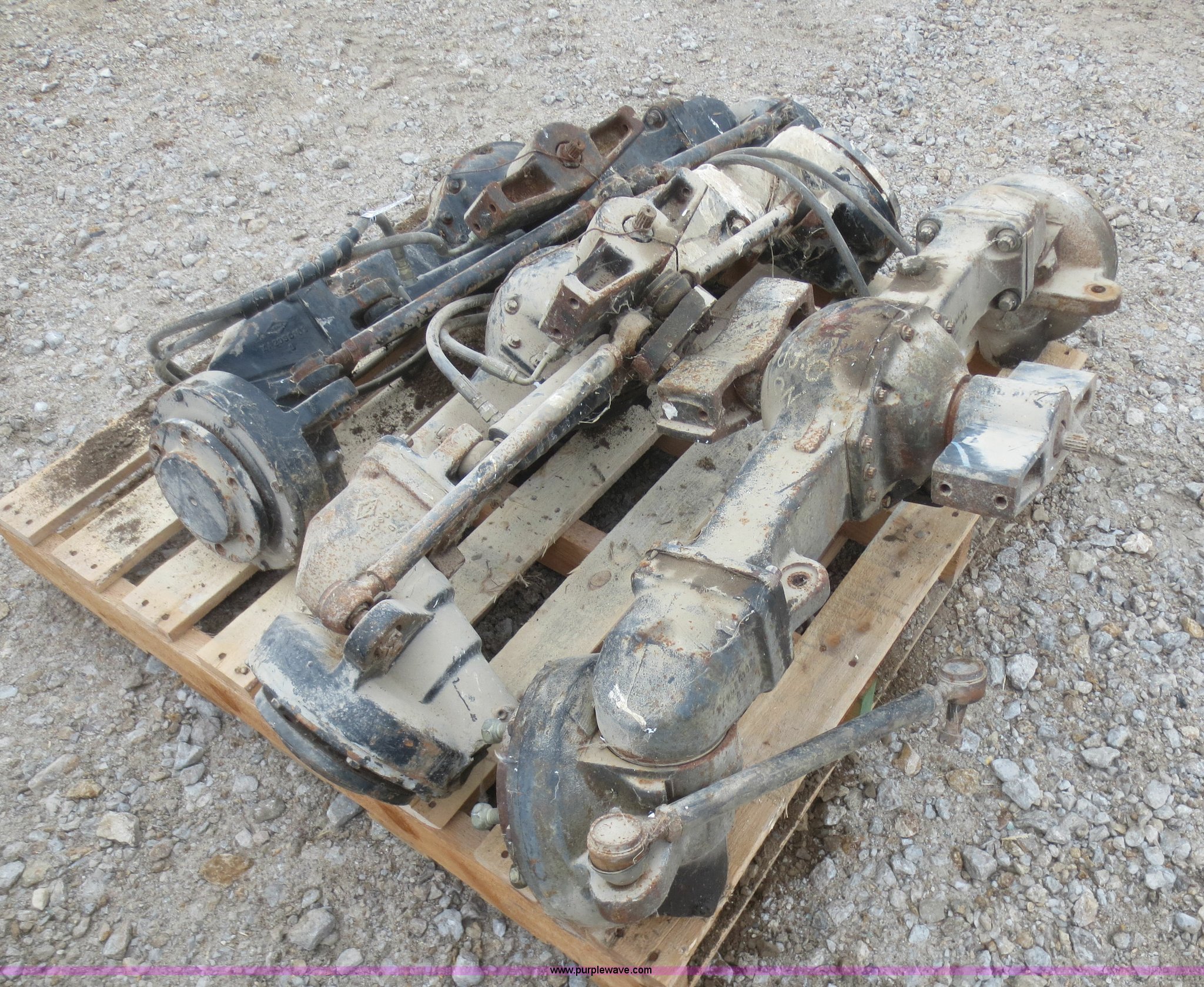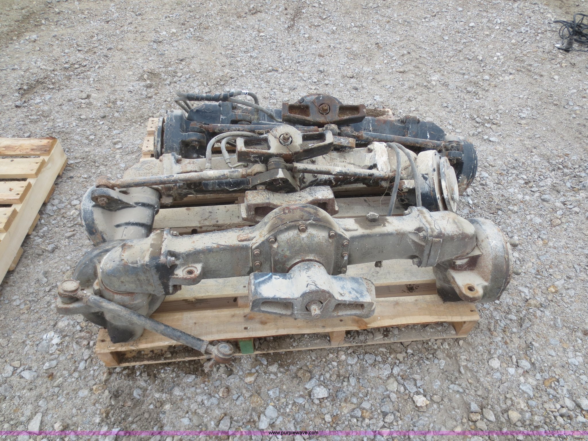 Purple Wave is selling a used Industrial Tires or Tracks in Kansas. This item is a (3) Dana front axles with the following: 45" hub face to hub face, Fits utility tractors