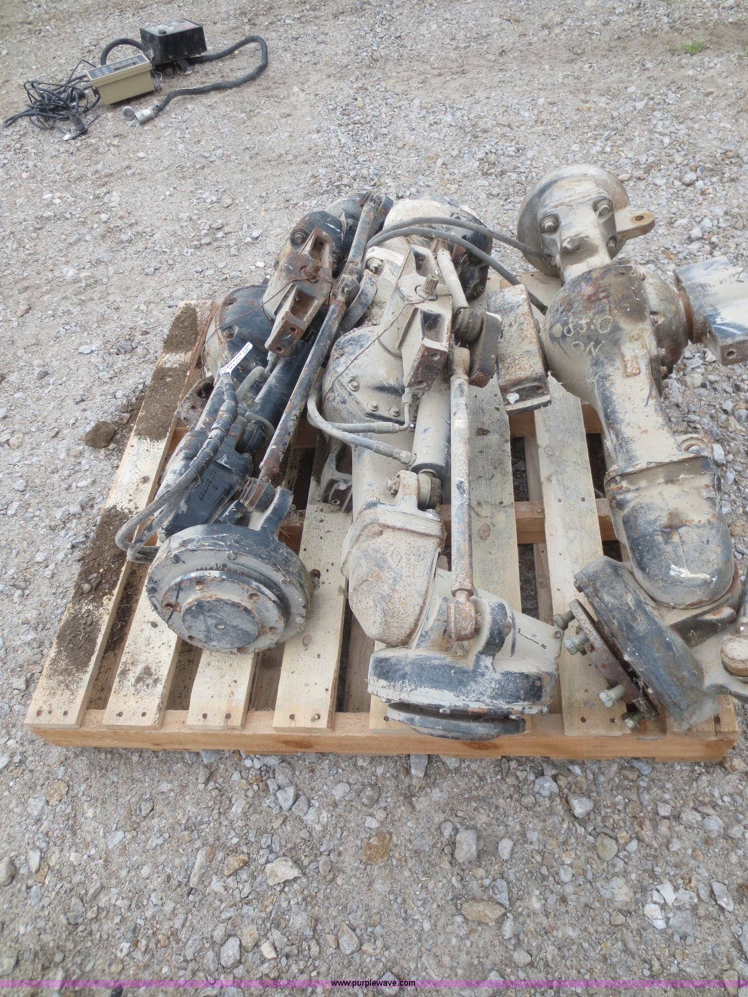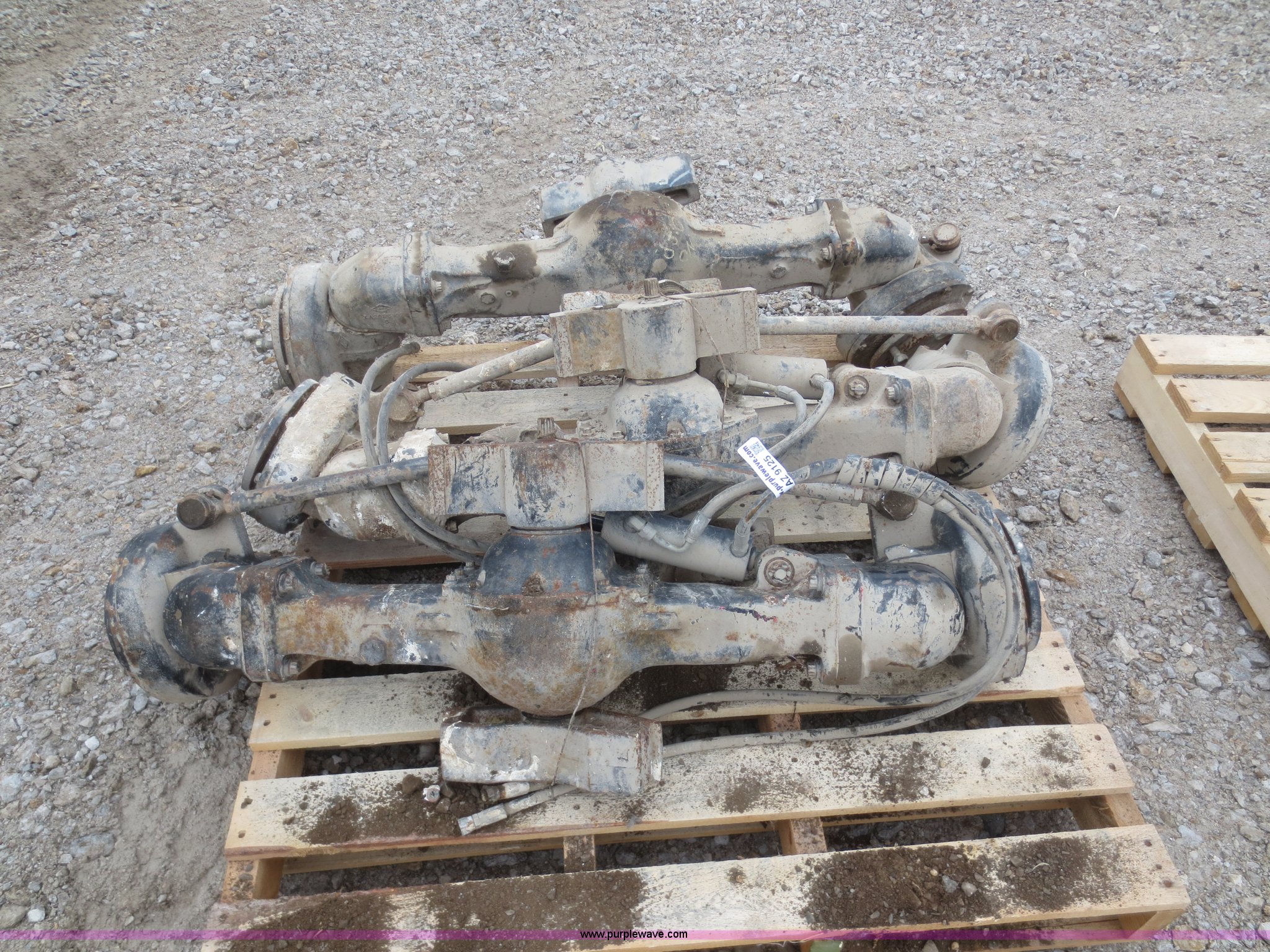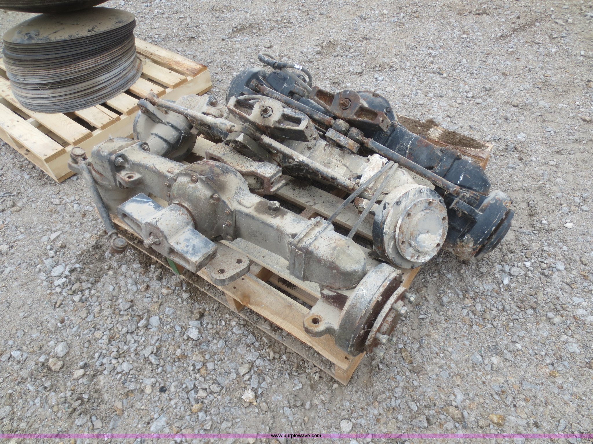 Purple Wave is selling a used Industrial Tires or Tracks in Kansas. This item is a (3) Dana front axles with the following: 45" hub face to hub face, Fits utility tractors
