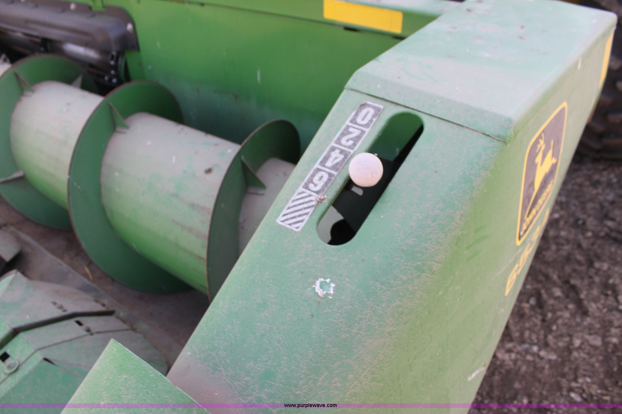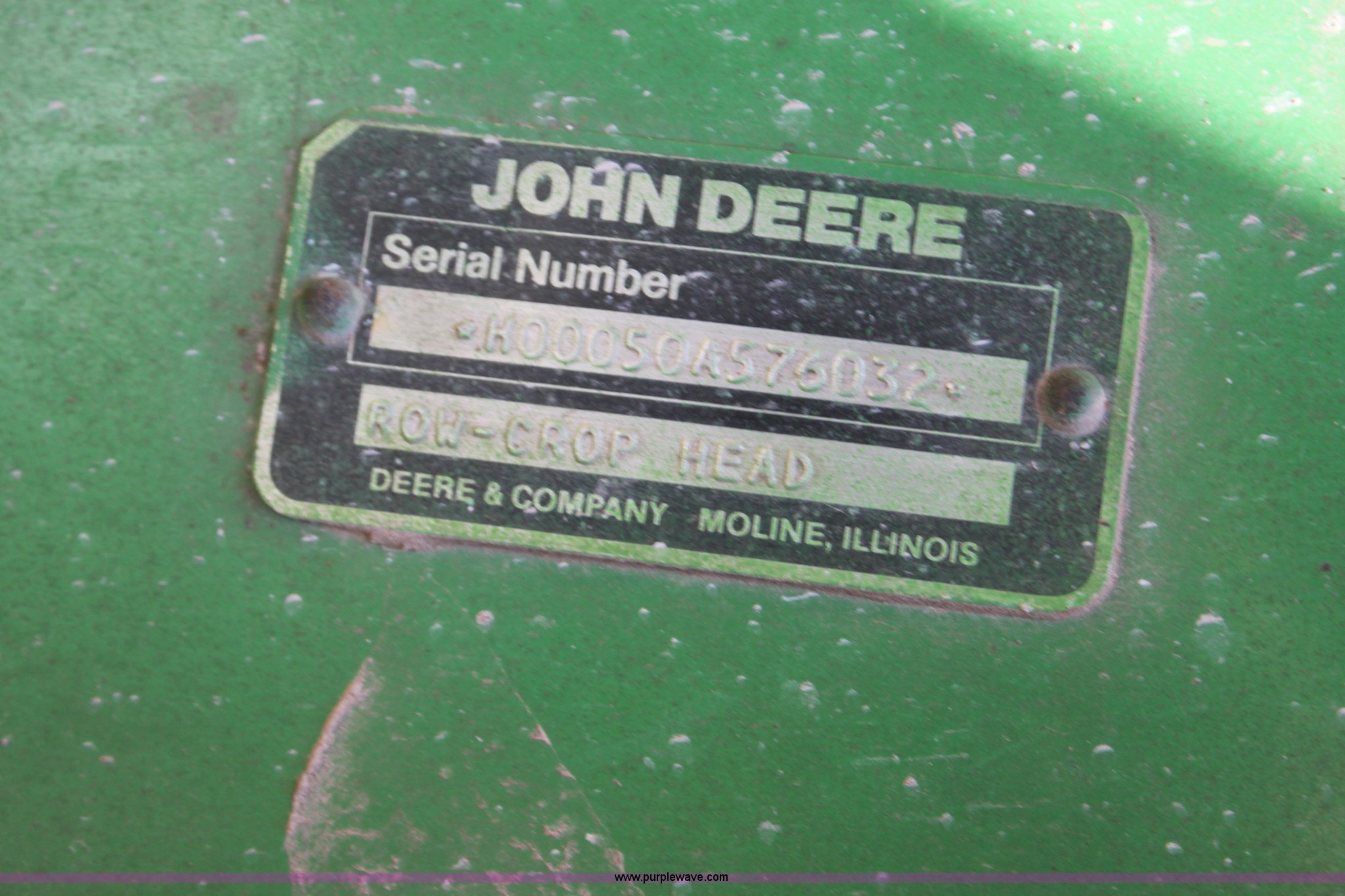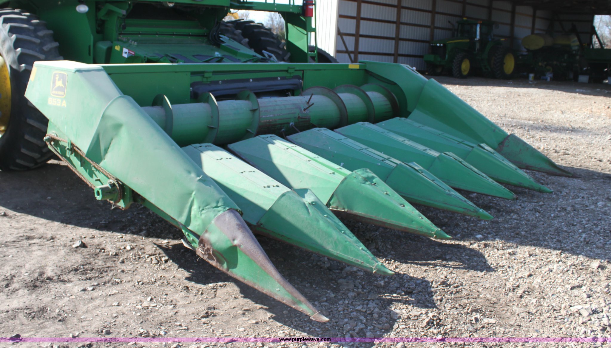 Purple Wave is selling a used Corn or Row Head in Kansas. This item is a John Deere 653A all crop head with the following: Six row, 30" spacing, Serial H00050A5766032
