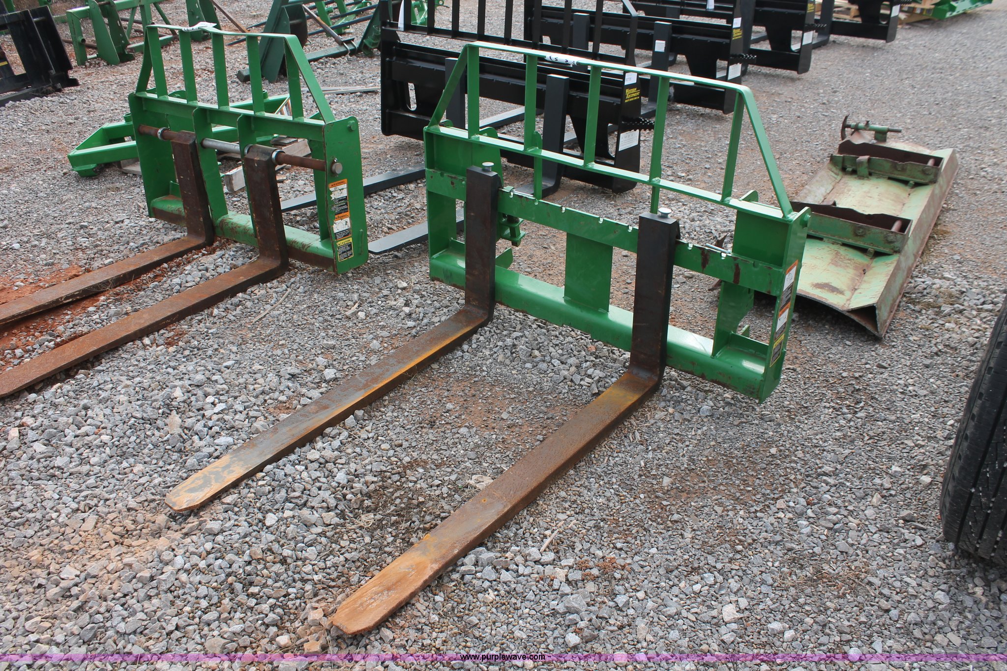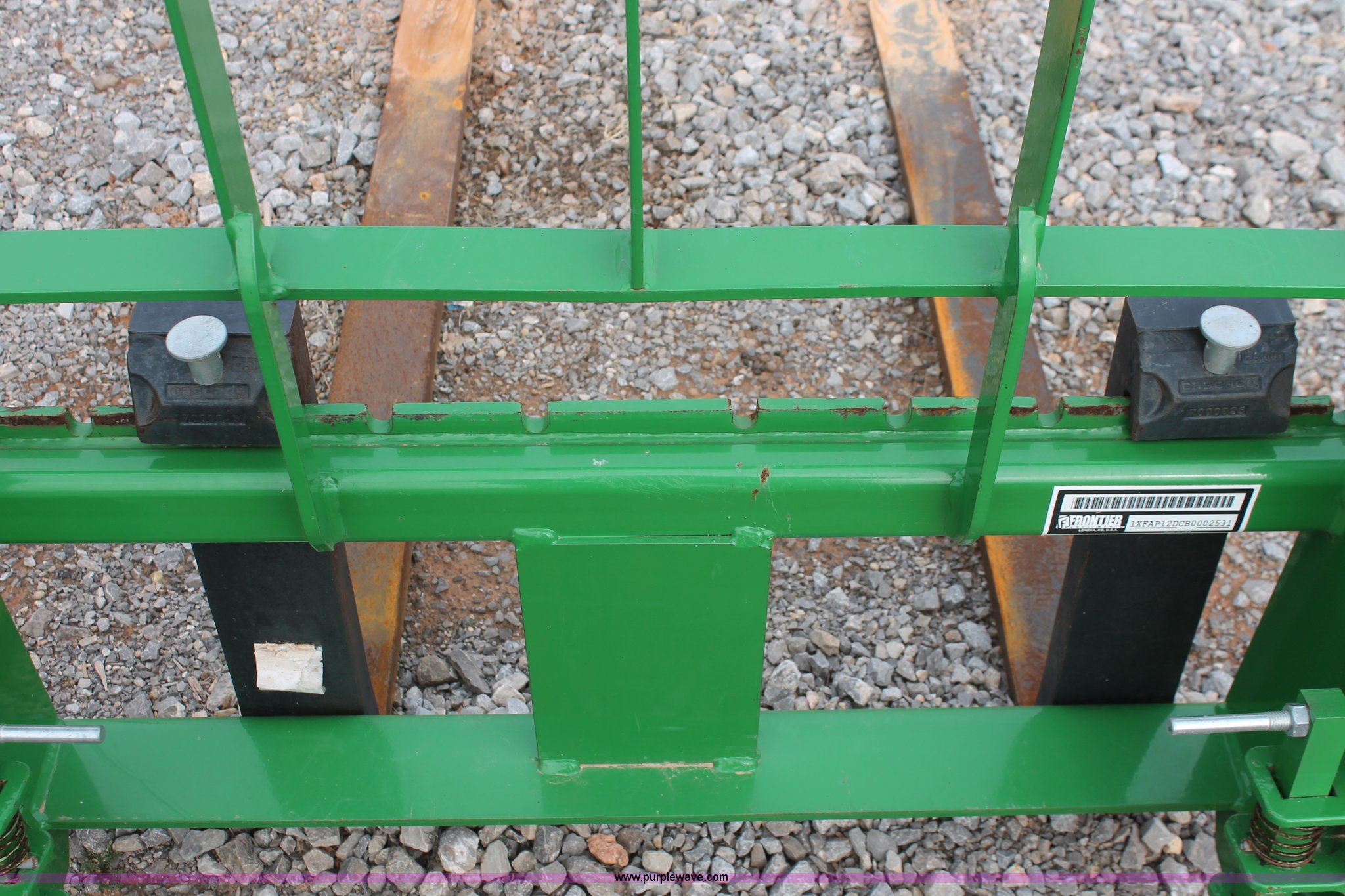Purple Wave is selling a used Ag Tractor Loader or Attach. in Oklahoma. This item is a Frontier AP12D pallet fork attachment with the following: 48"L x 4"W forks, Fixed width adjustable, Compatible with John Deere 600 and 700 series loaders, Serial 1XFAP12DCB0002531, Stock# 85659