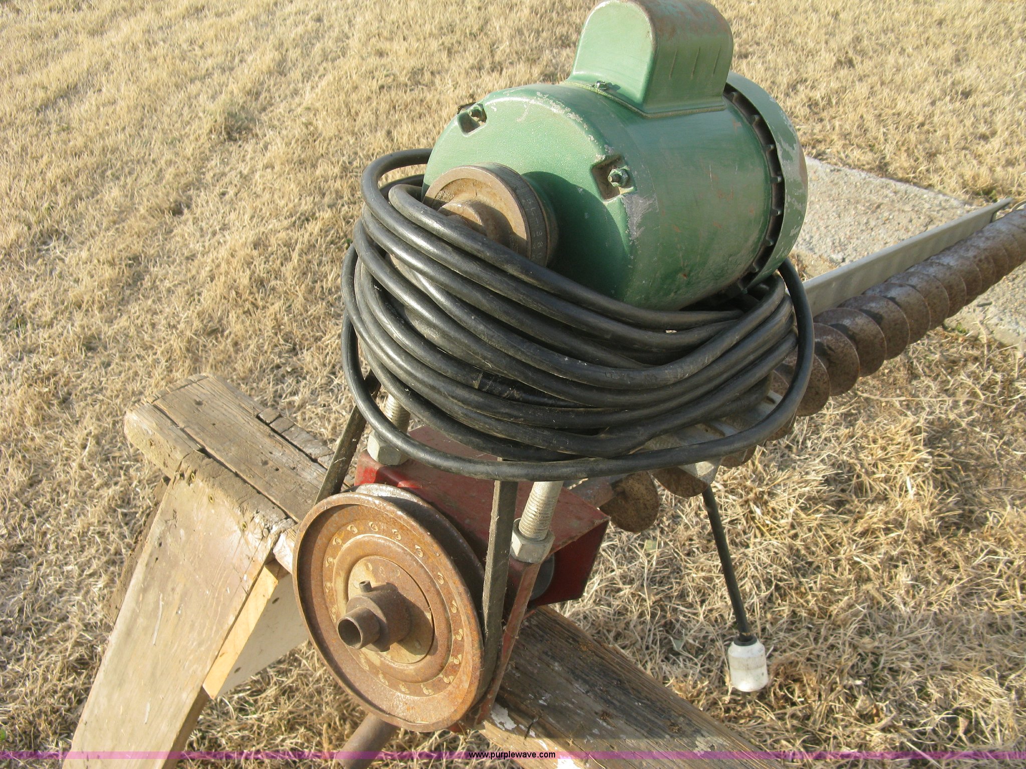 Purple Wave is selling a used Auger or Conveyor in Kansas. This item is a Hutchinson sweep auger with the following: 6.5L, Dayton 3/4 HP electric motor, 115/230V, Single phase, Serial 508989
