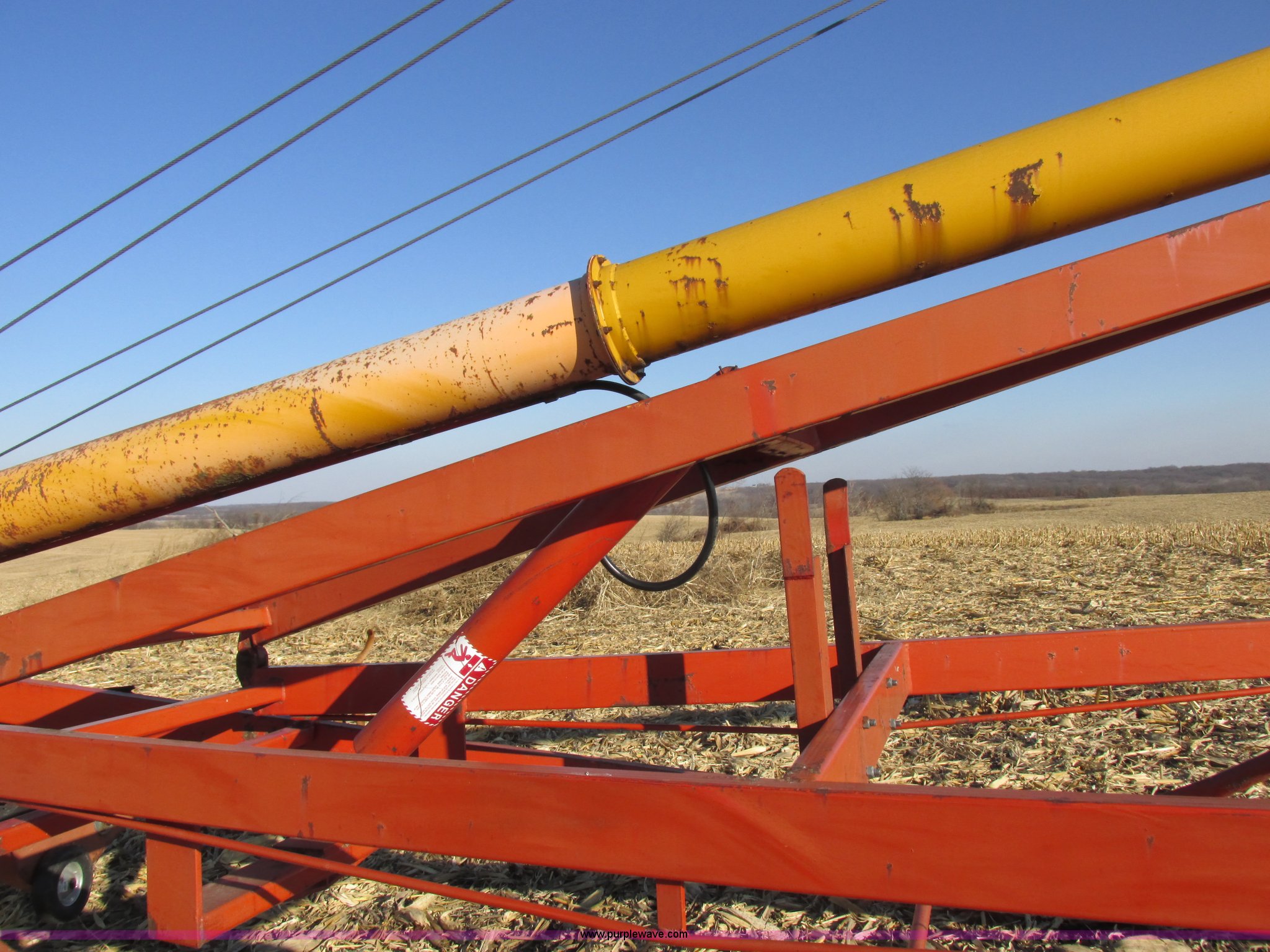 Purple Wave is selling a used Auger or Conveyor in Missouri. This item is a Mayrath grain auger with the following: Approx. 60'L x 8"W, Swing arm, PTO driven, Single cylinder lift, 30x9.5R15 tires, Serial H405823