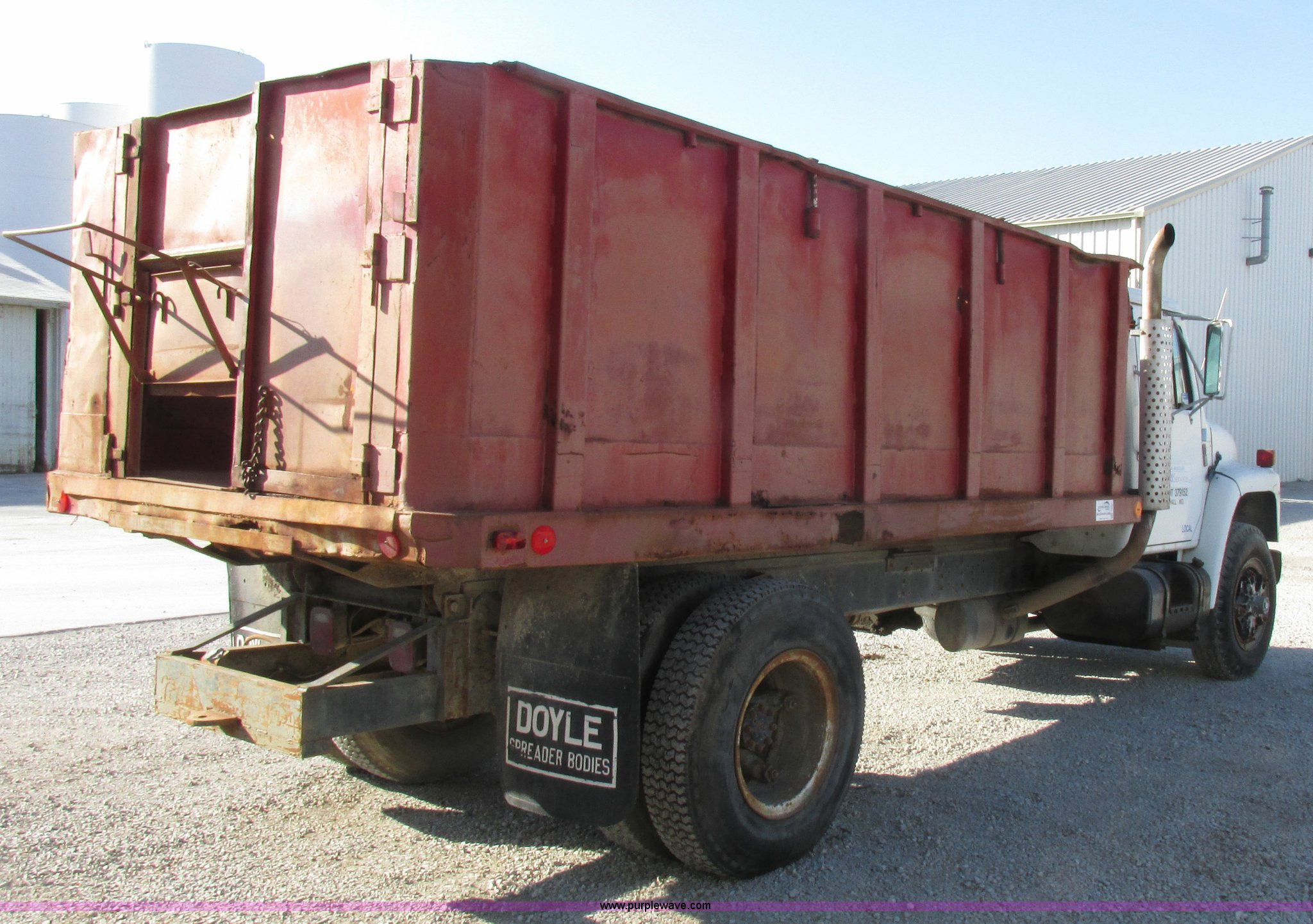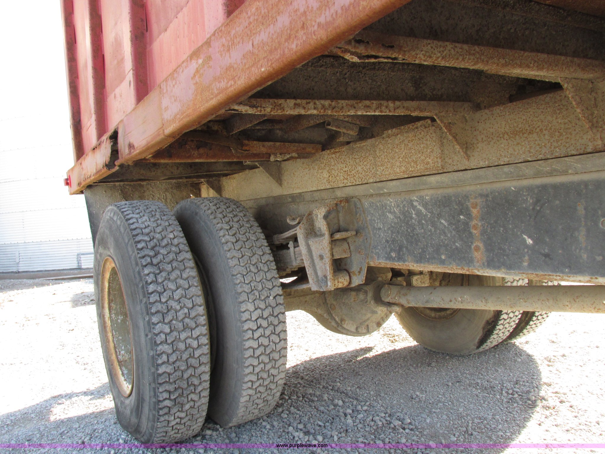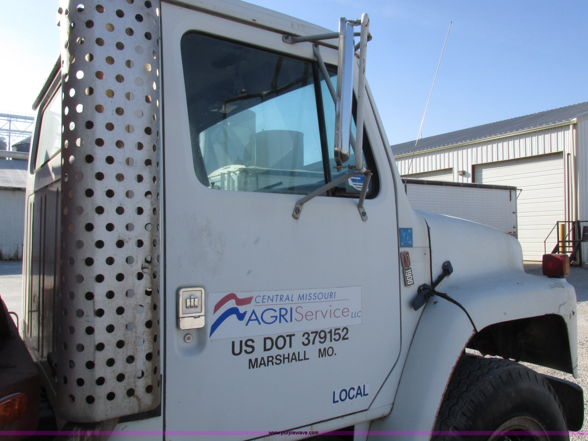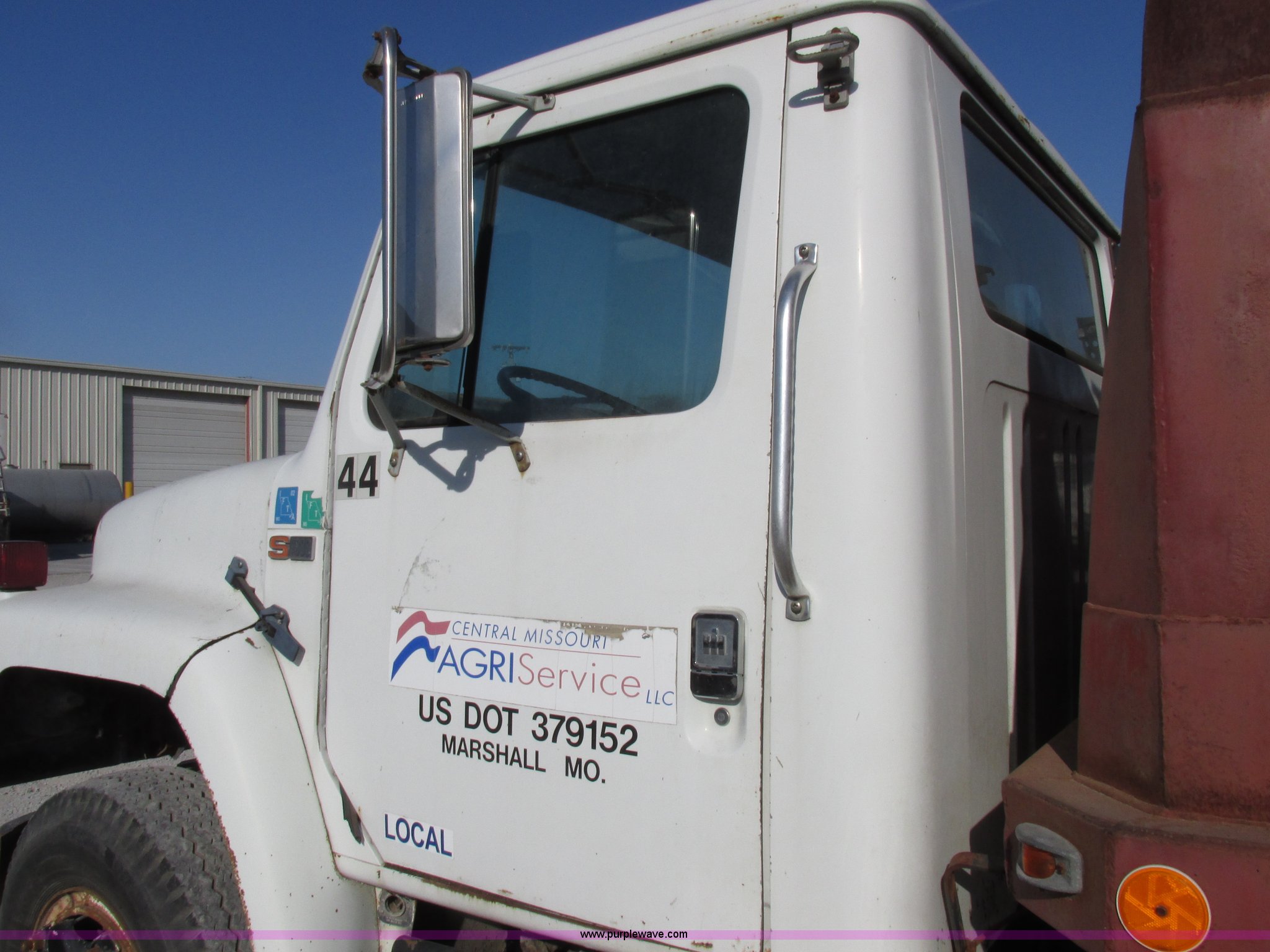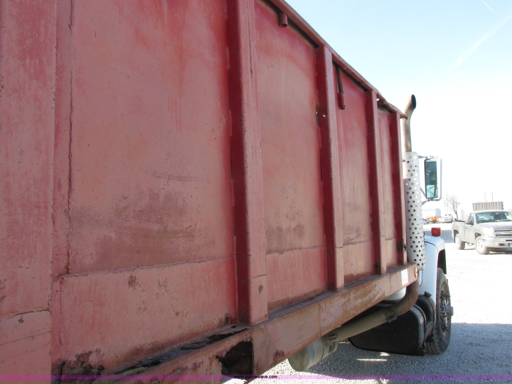 Purple Wave is selling a used Grain Truck in Missouri. This item is a 1986 International 1954 grain truck with the following: 250,676 miles on odometer, International DT466 7.6L L6 diesel engine, Five speed manual transmission, Two speed rear end, Heat, AM/FM/cassette, Spring suspension seat, 15'L x 8'W x 4'H bed, Single ram hoist, Block heater, Trailer wiring, PTO, Spring suspension, Hydraulic brakes, 10R20 tires, Interior/exterior cosmetic damage, Start button inoperable, Unit# 44