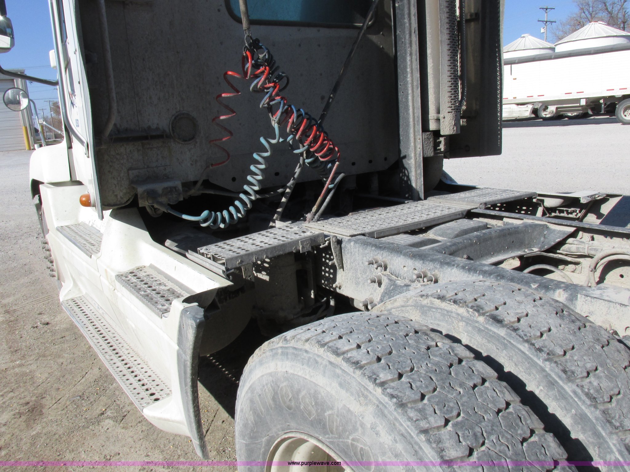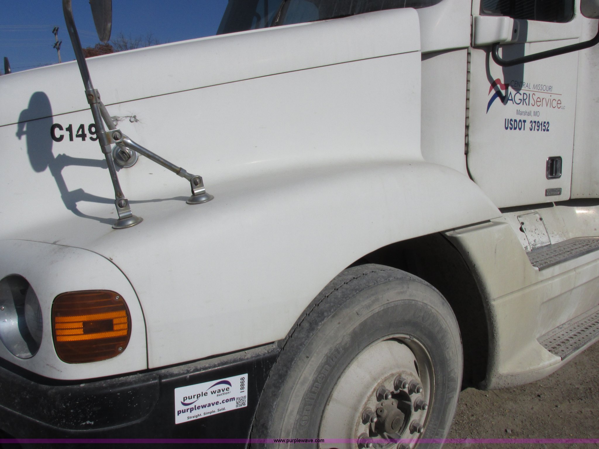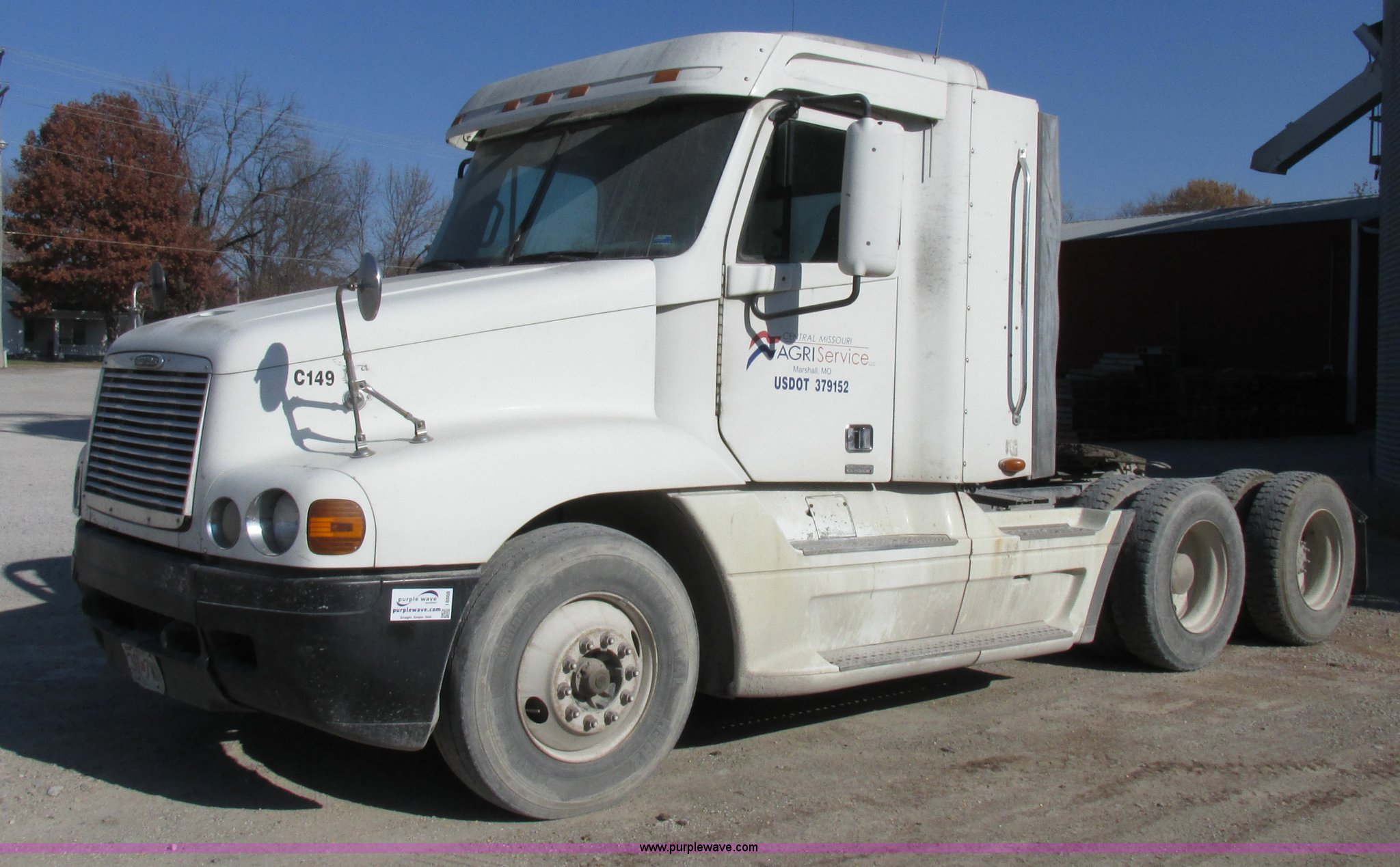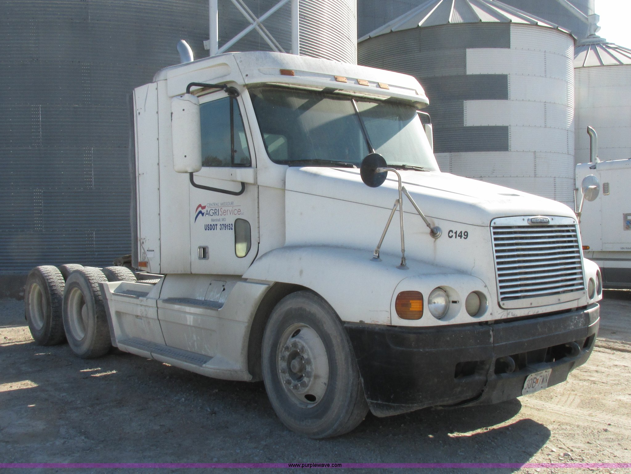 Purple Wave is selling a used Truck Tractor in Missouri. This item is a 2000 Freightliner Century Class semi truck with the following: 874,102 miles on odometer, Detroit Diesel Series 60 12.7L L6 diesel engine, Rockwell 10 speed manual transmission, Twin screw, AC and heat, AM/FM, Passenger daylight door, Air suspension seat, Power and heated mirrors, Air ride cab, Headache rack, Storage, Visor, Block heater, Air slide fifth wheel, Dual fuel tanks, Single exhaust stack, Aluminum deck plate, Air suspension, Air brakes, Brake controller, Jake brake, 11R22.5 tires, Broken right front spring, Unit# C149