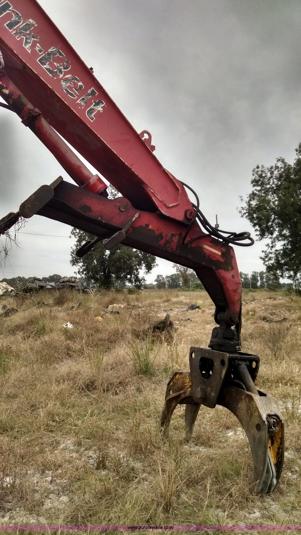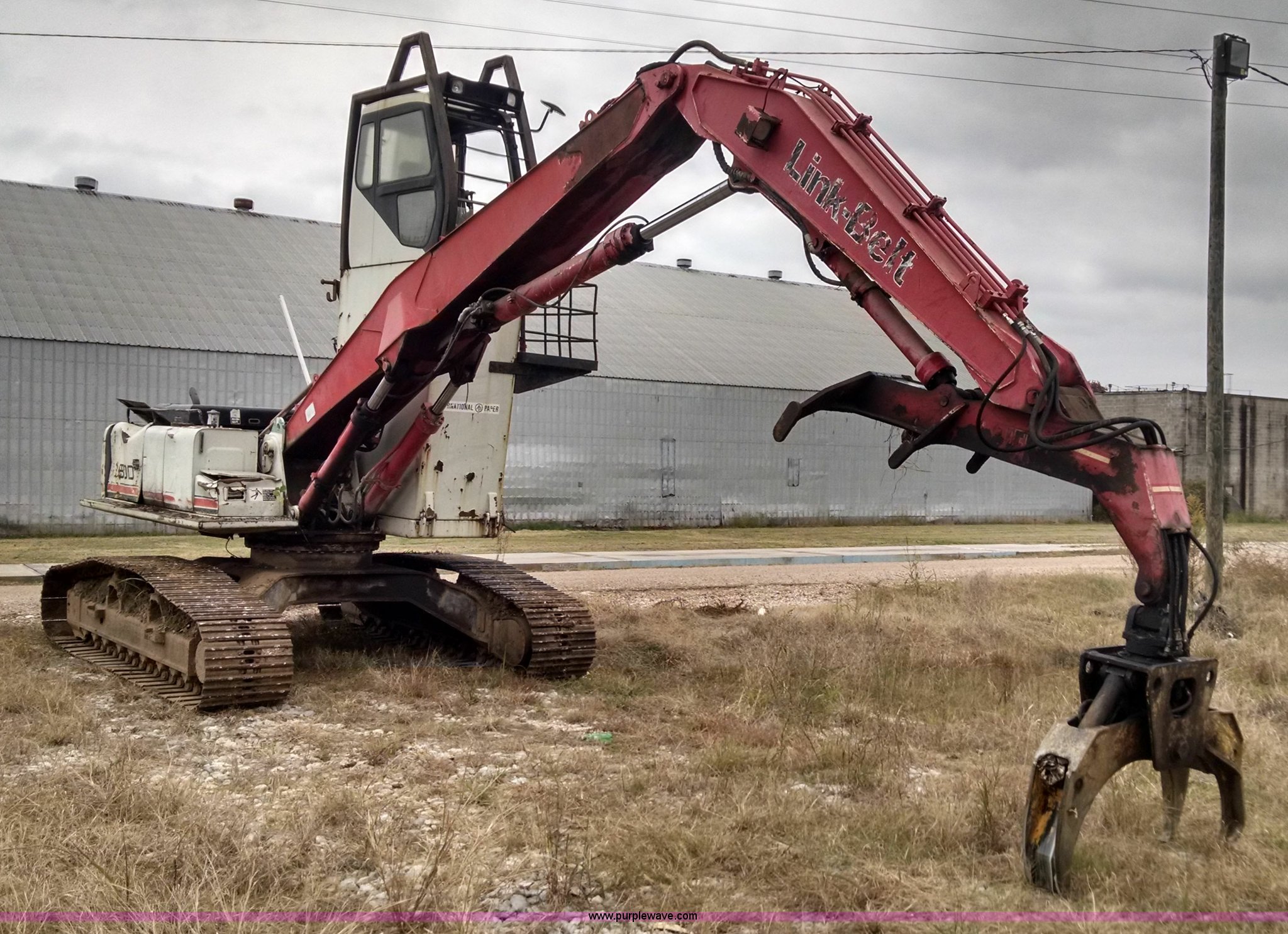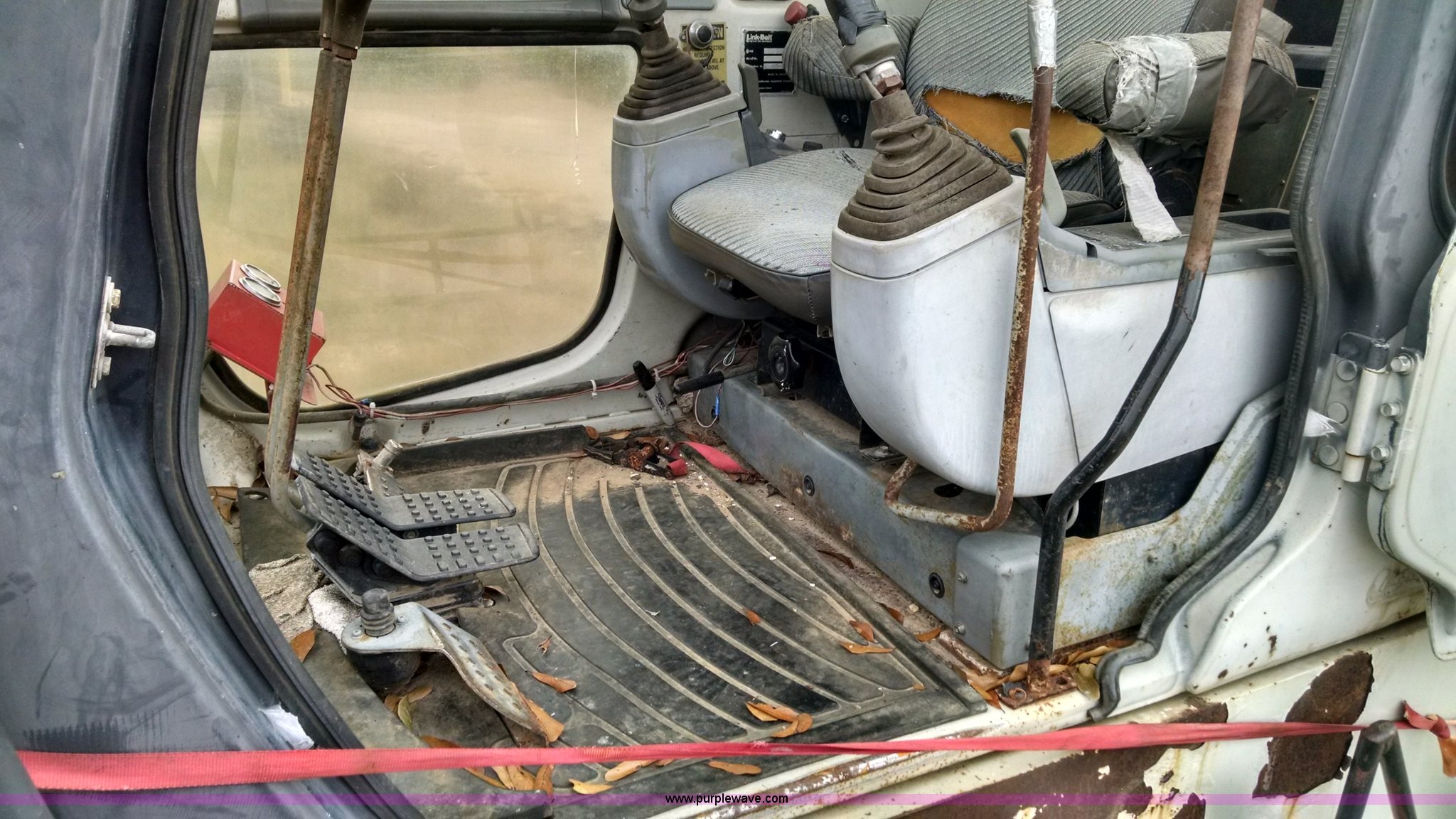 Purple Wave is selling a used Hydraulic Excavator in Louisiana. This item is a 2000 Link Belt 2800 Quantum excavator with the following: 11,285 hours on meter, Isuzu six cylinder turbo diesel engine, Two speed hydrostatic transmission, EROPS, Ac and heat, AM/FM, Joystick controls, Foot controls, Standard high rise cab, 12' stick length, Graple attachment, 19" x 8", Nine bottom rollers, 27.5"W steel triple grouser track pads, Recently replaced final drive sprockets, Throttle cable needs repaired, Hydraulic oil leaks, Interior/exterior cosmetic damage, Serial PHLB12097