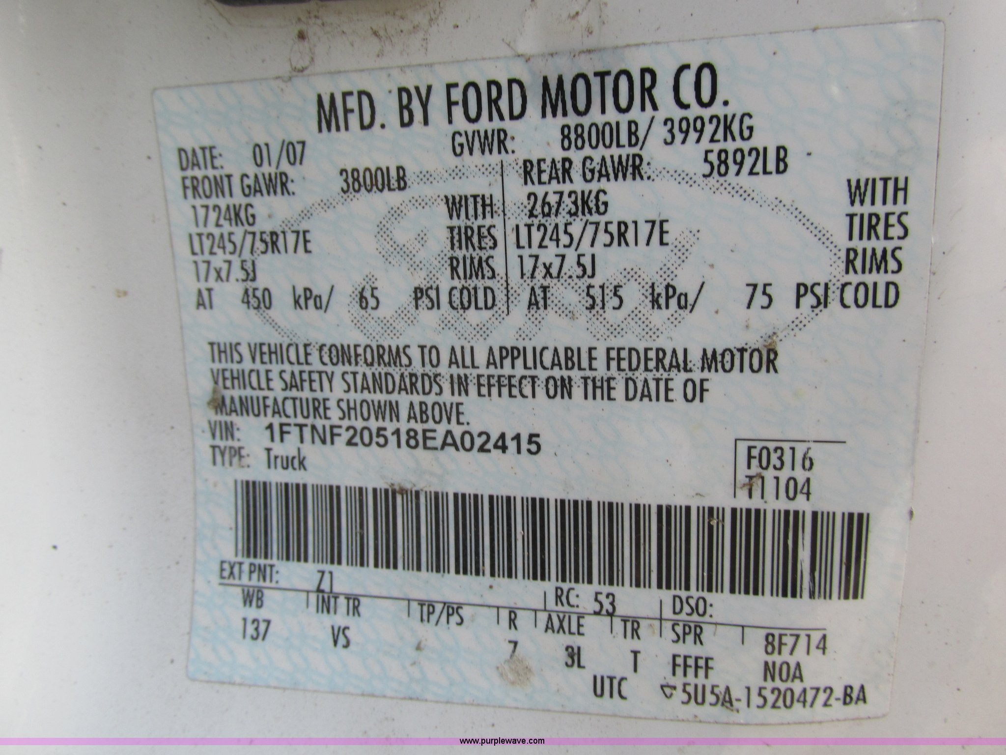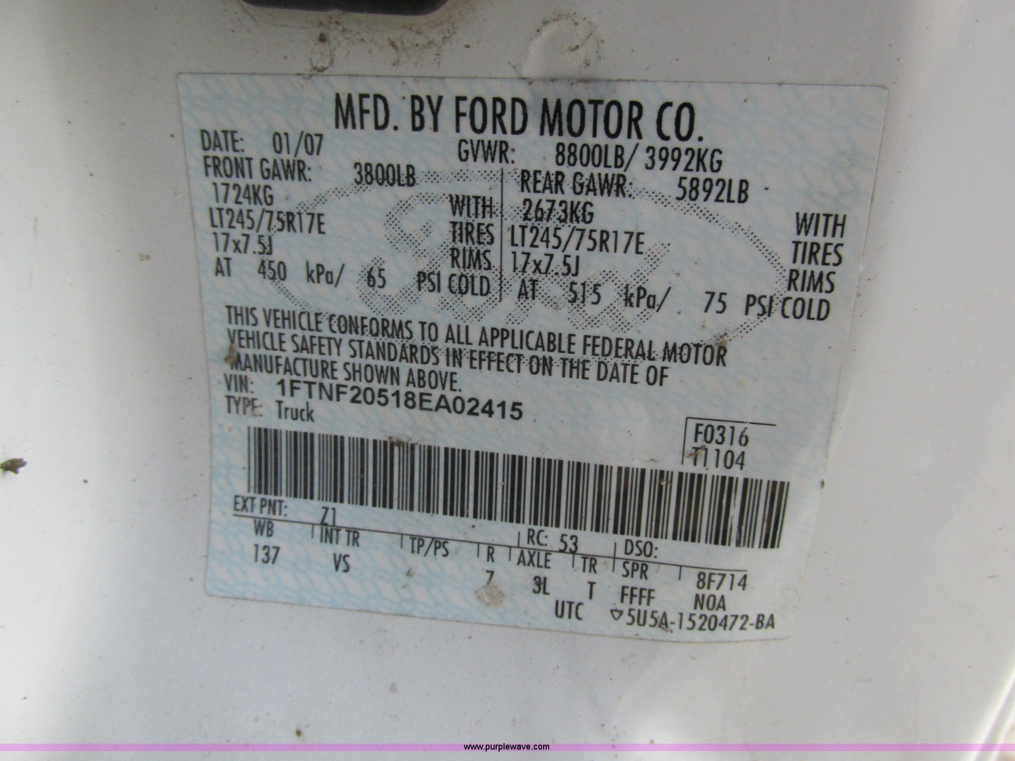 Purple Wave is selling a used 3/4 or 1 Ton Pickup or Van in Missouri. This item is a 2008 Ford F250 Super Duty XL pickup truck with the following: 226,630 actual miles, 5.4L V8 SOHC 16V gas engine, Automatic transmission, AC and heat, AM/FM, Manual windows and locks, Vinyl interior, Factory trailer brake controller, Receiver hitch, Trailer wiring, 137" wheelbase, 245/75R17 tires, Windshield cracked, Interior/exterior cosmetic damage