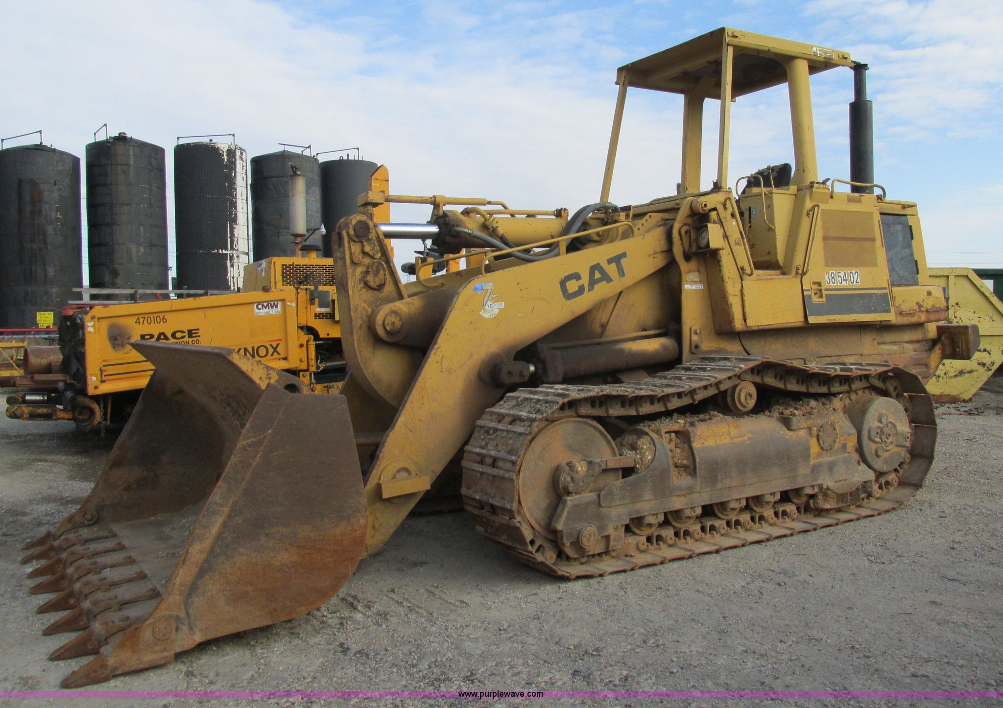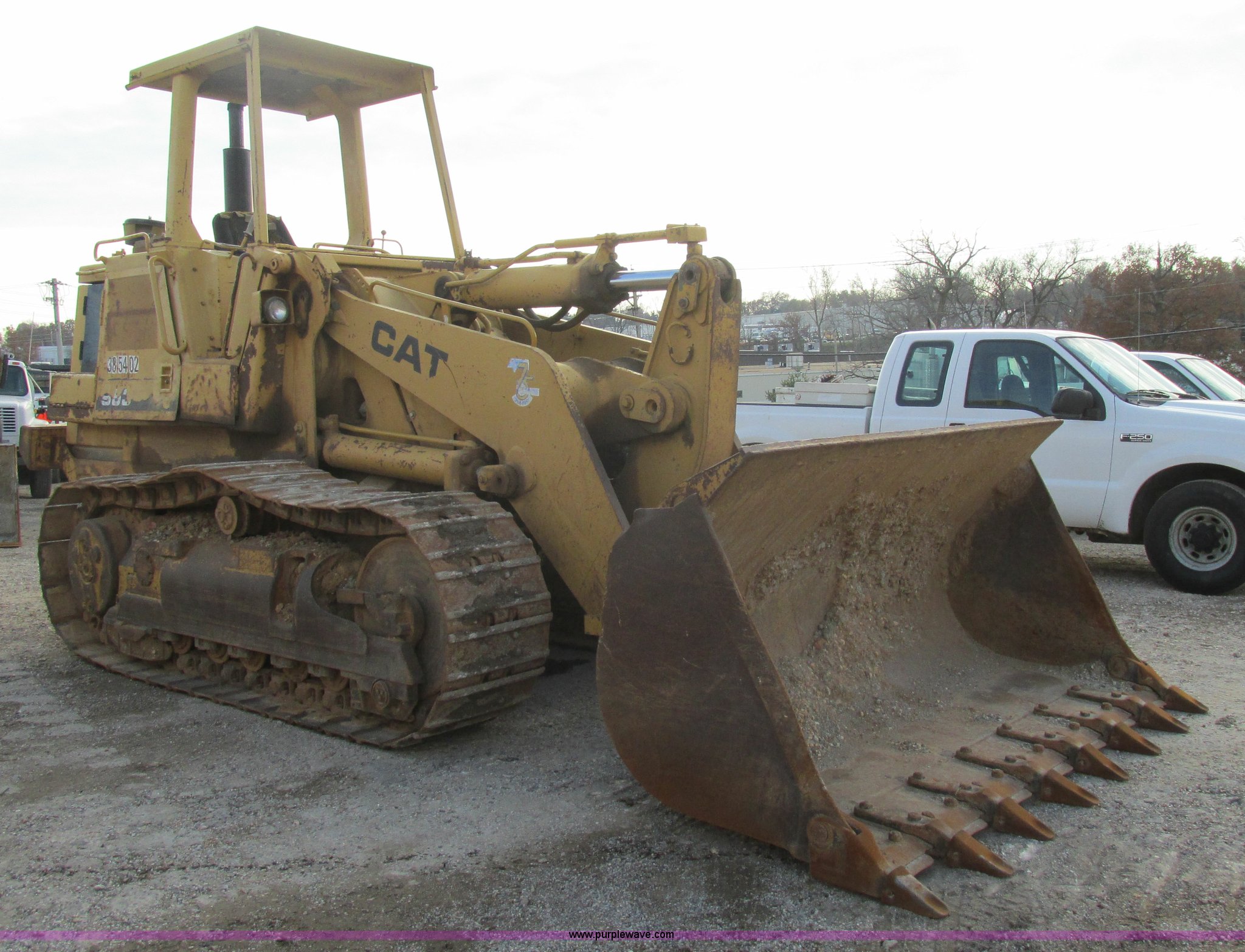 Purple Wave is selling a used Crawler Loader in Missouri. This item is a 1987 Caterpillar 963A track loader with the following: 917 hours on meter, Actual hours unknown, Caterpillar diesel engine, Hydrostatic transmission, ROPS, Heat, Unknown operating condition of heater, Joystick bucket controls, Auto leveling, 8'2"W bucket, (8) replaceable bolt-on teeth, (7) bolt-on cutting edges, Front work lights, 22.5"W double grouser track pads, 39,500 lbs. base operating weight, Serial 21Z00980