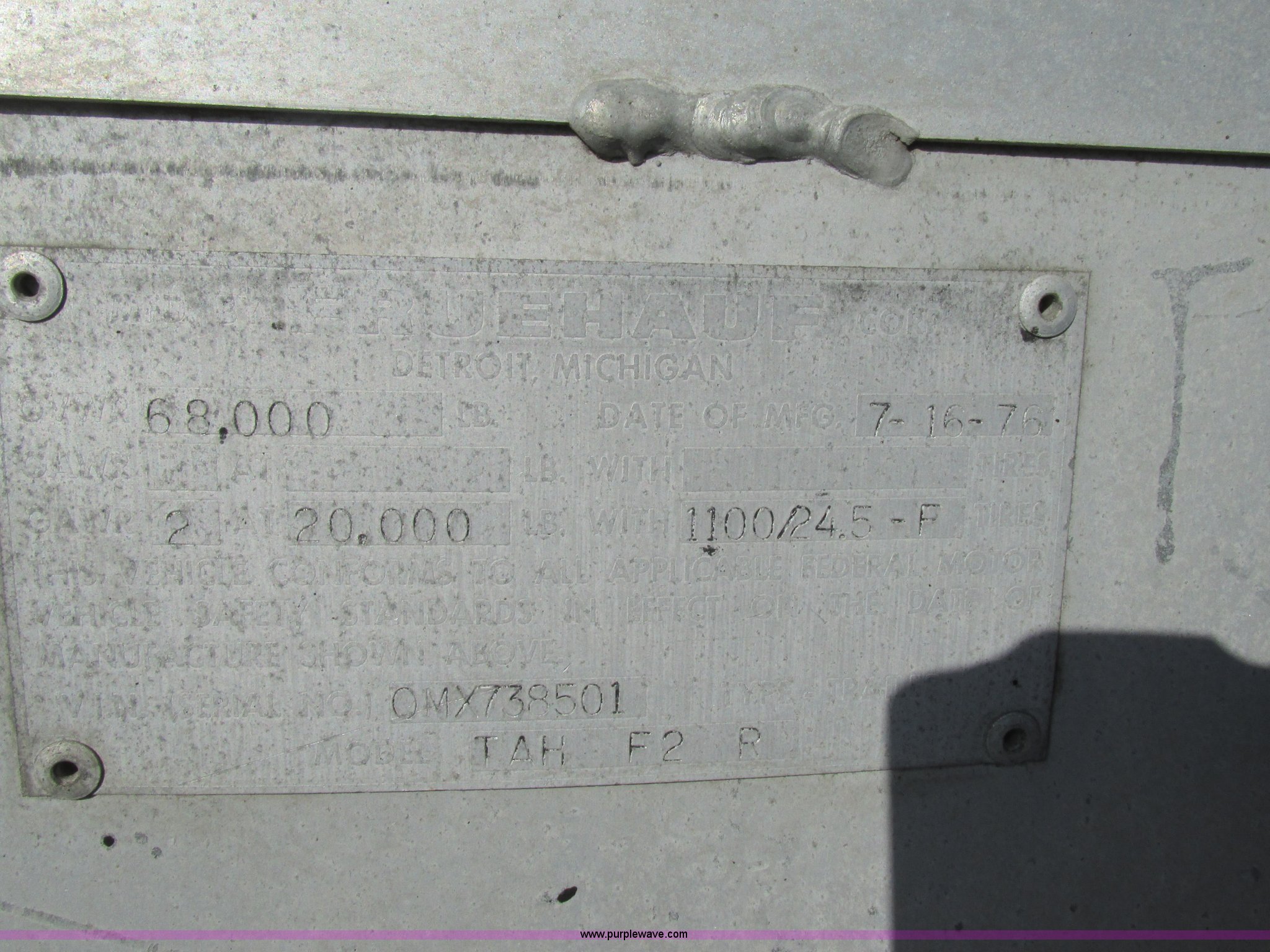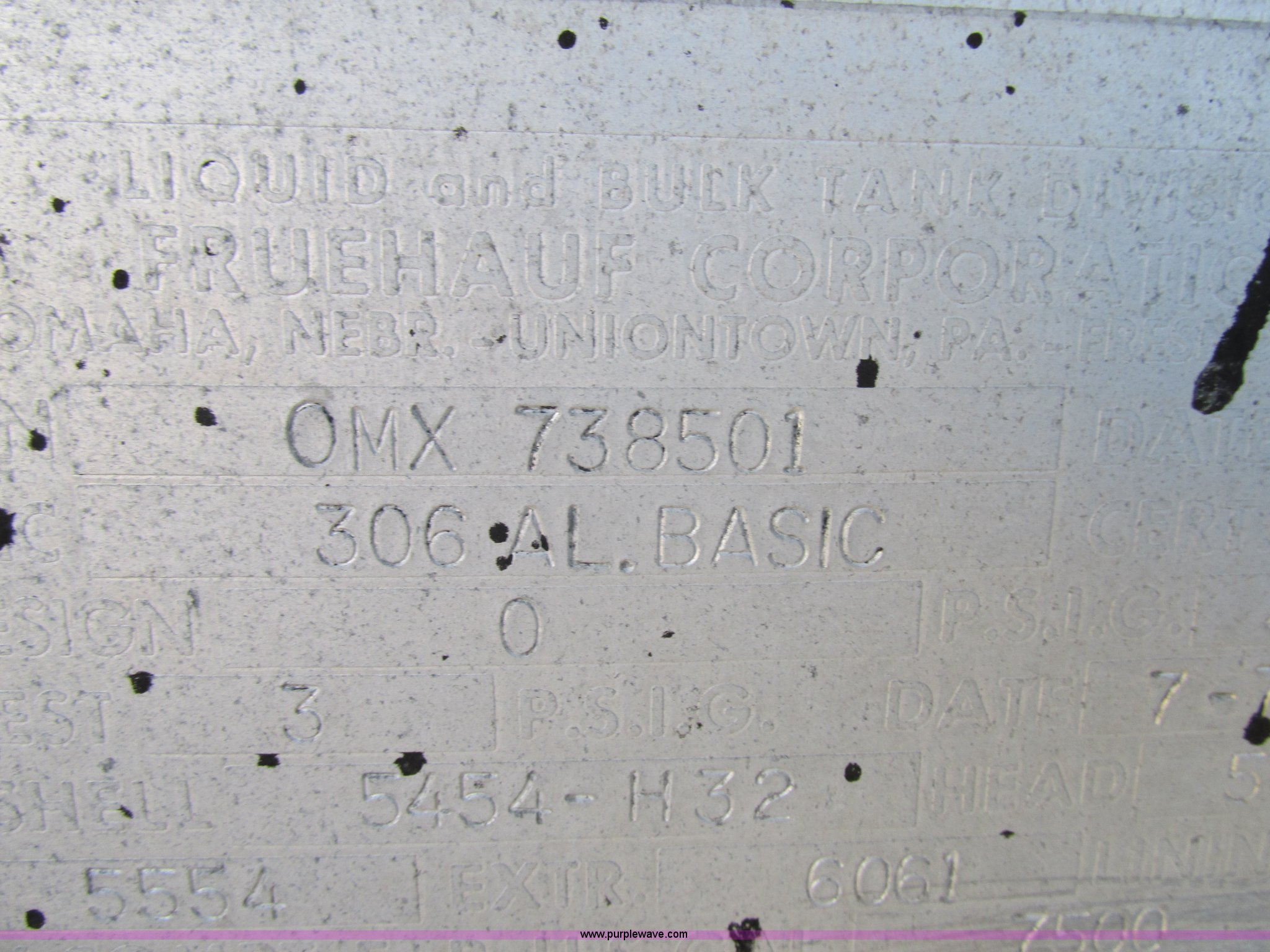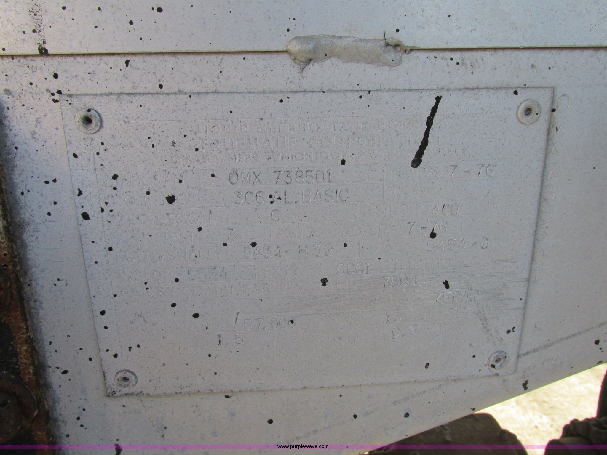 Purple Wave is selling a used Tank Trailer in Missouri. This item is a 1976 Fruehauf aluminum insulated tanker trailer with the following: 7,500 gallon capacity, Top hatch with lid, Hose tray, Hydraulic driven 3" transfer pump, Dual speed landing gear, Spring suspension, Air brakes, 11R24.5 tires, GVWR 68,000 lbs, Left rear saddle leaks when hauling hot oil