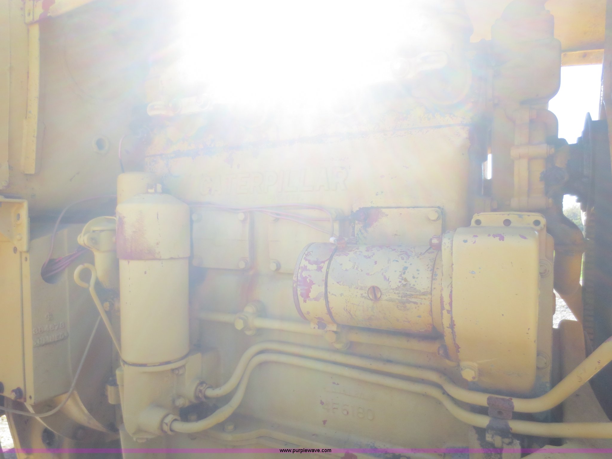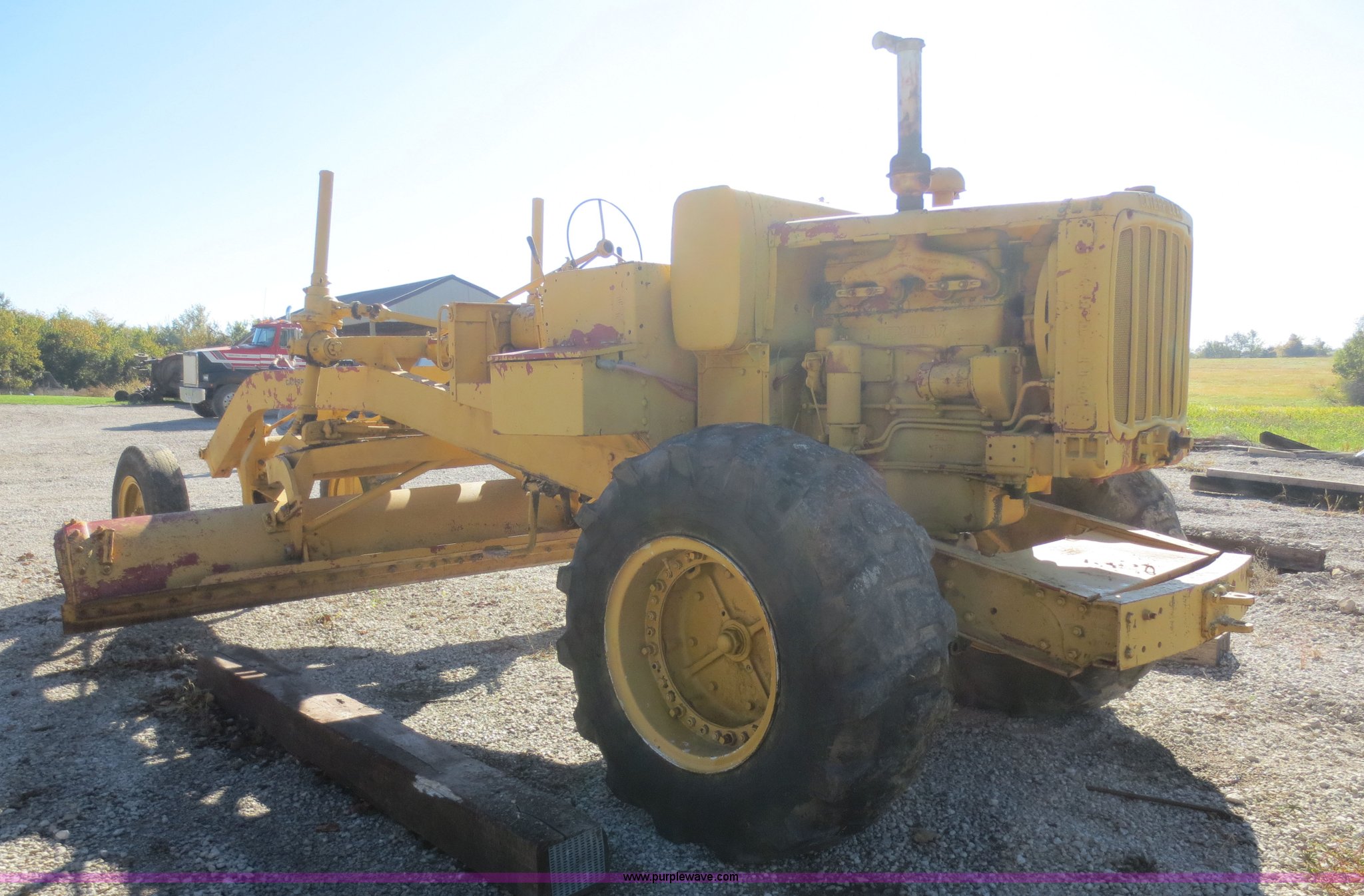 Purple Wave is selling a used in Kansas. This item is a Caterpillar motor grader with the following: Unknown hours on meter, Caterpillar four cylinder diesel engine, Manual transmission, 4F-1R gears, 12'W moldboard, 9.00-20 front tires, 19.5-24 rear tires