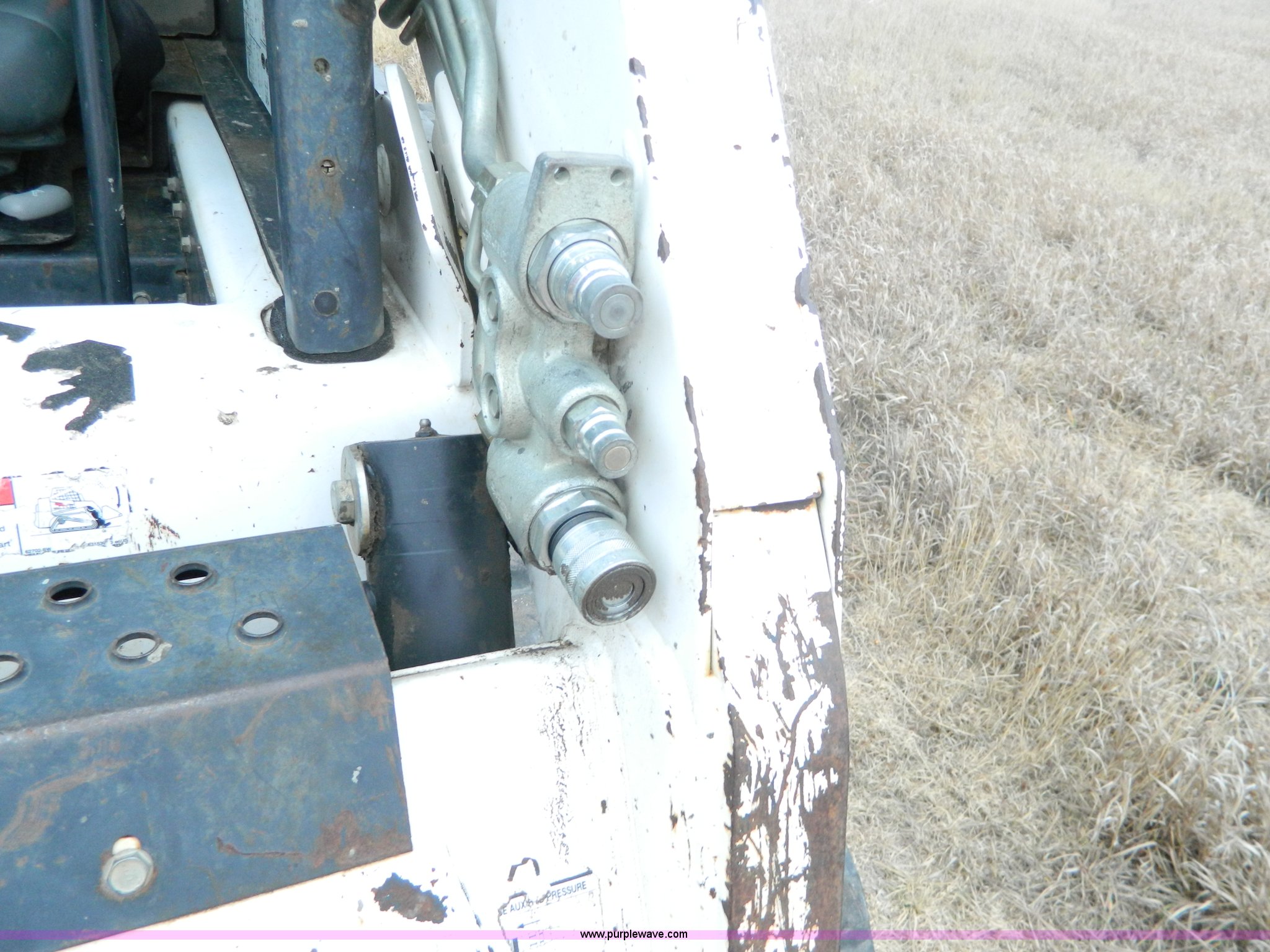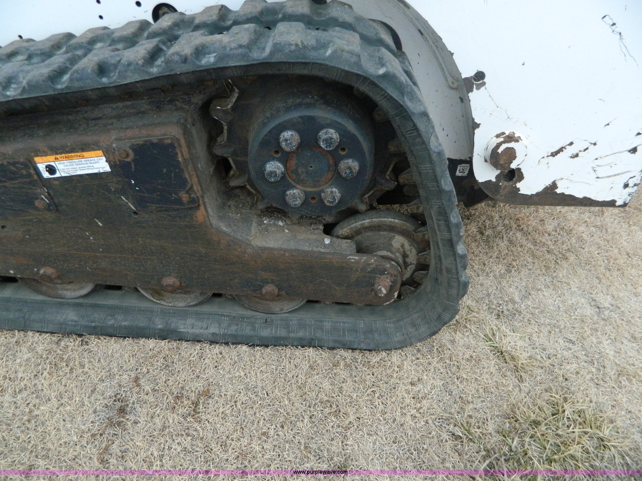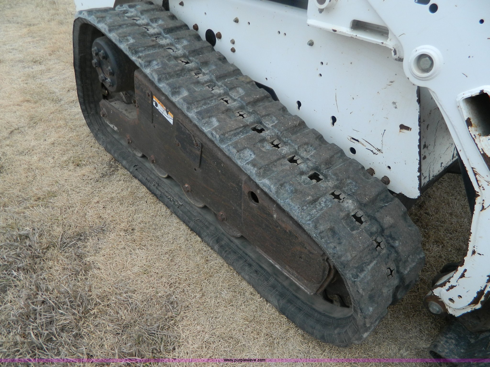 Purple Wave is selling a used Tracked Skid Steer Loader in Kansas. This item is a 2007 Bobcat T190 skid steer with the following: 1,360 hours on meter, Kubota V2403 four cylinder diesel engine, Serial 06G0408, Glow plugs, Side glass, Back glass, Hand and foot controls, EMS panel, Spring suspension seat, Front and rear work lights, Auxiliary hydraulics, 67"W bucket, Weld-on cutting edge, (4) rollers, 12"W tracks, 7,775 lbs. base operating weight, Serial 531614119