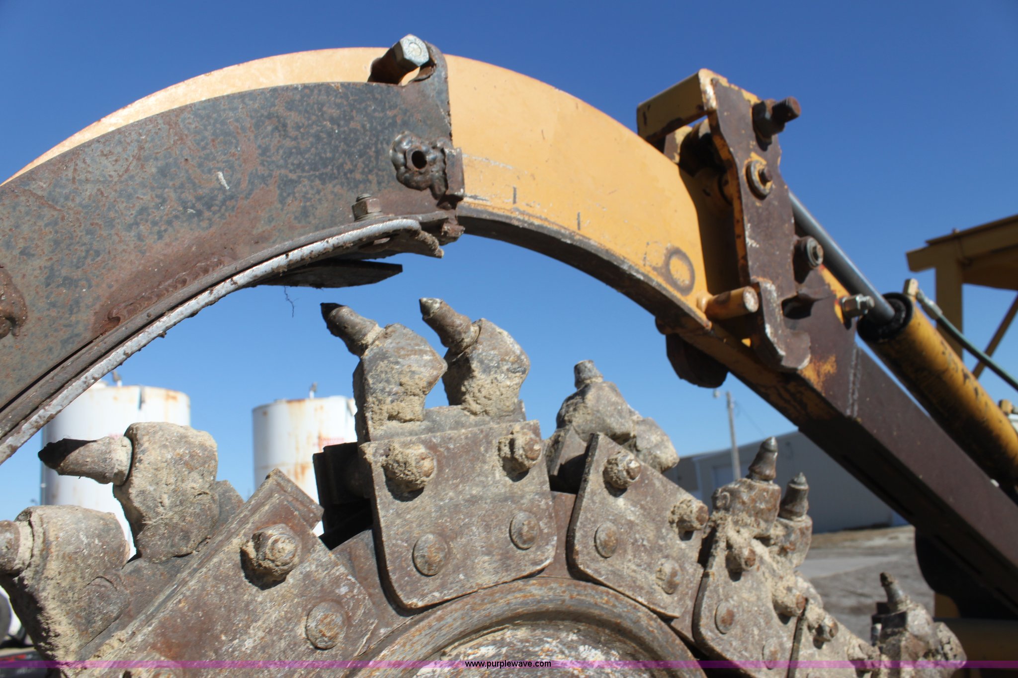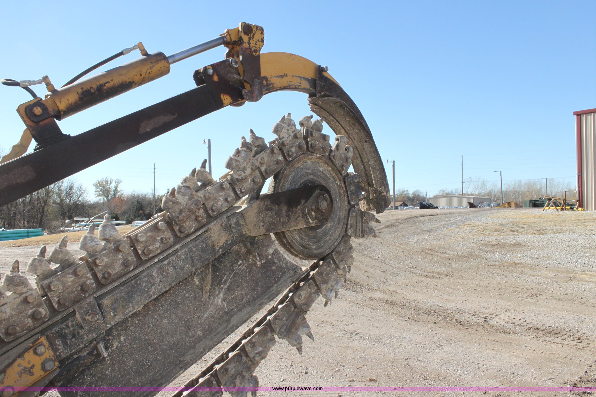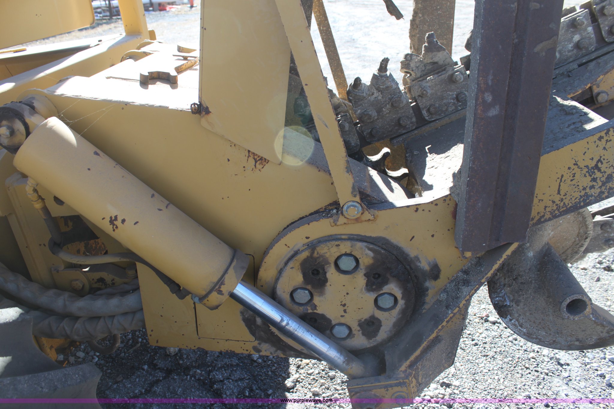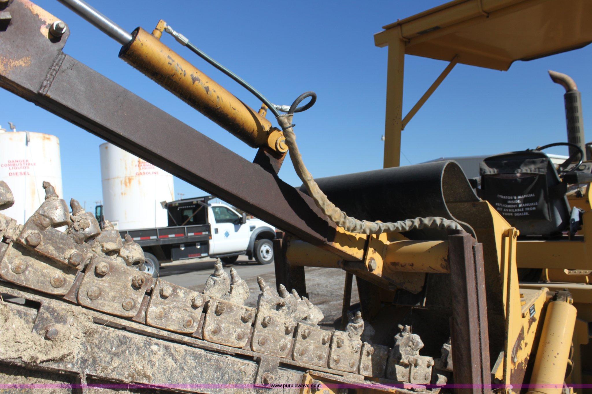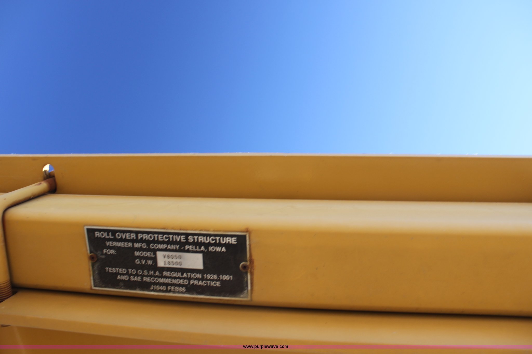 Purple Wave is selling a used Trencher or Rock Saw in Kansas. This item is a 1993 Vermeer V8050 trencher with the following: 2,310 hours on meter, John Deere four cylinder diesel engine, Serial T04045D398760, Four wheel drive, Open station, Front and rear steering, 80" back fill blade, Tilt, V9300 backhoe, Serial 1VRG10093P1000346, VH1850 trencher, Serial 1VRH08076P100376, 18"W five tooth bucket, Trencher hydraulic crumber, Rock toothed digging chain, 36 x 13.00-20 NHS tires, Serial 1VRF112W0P1000616