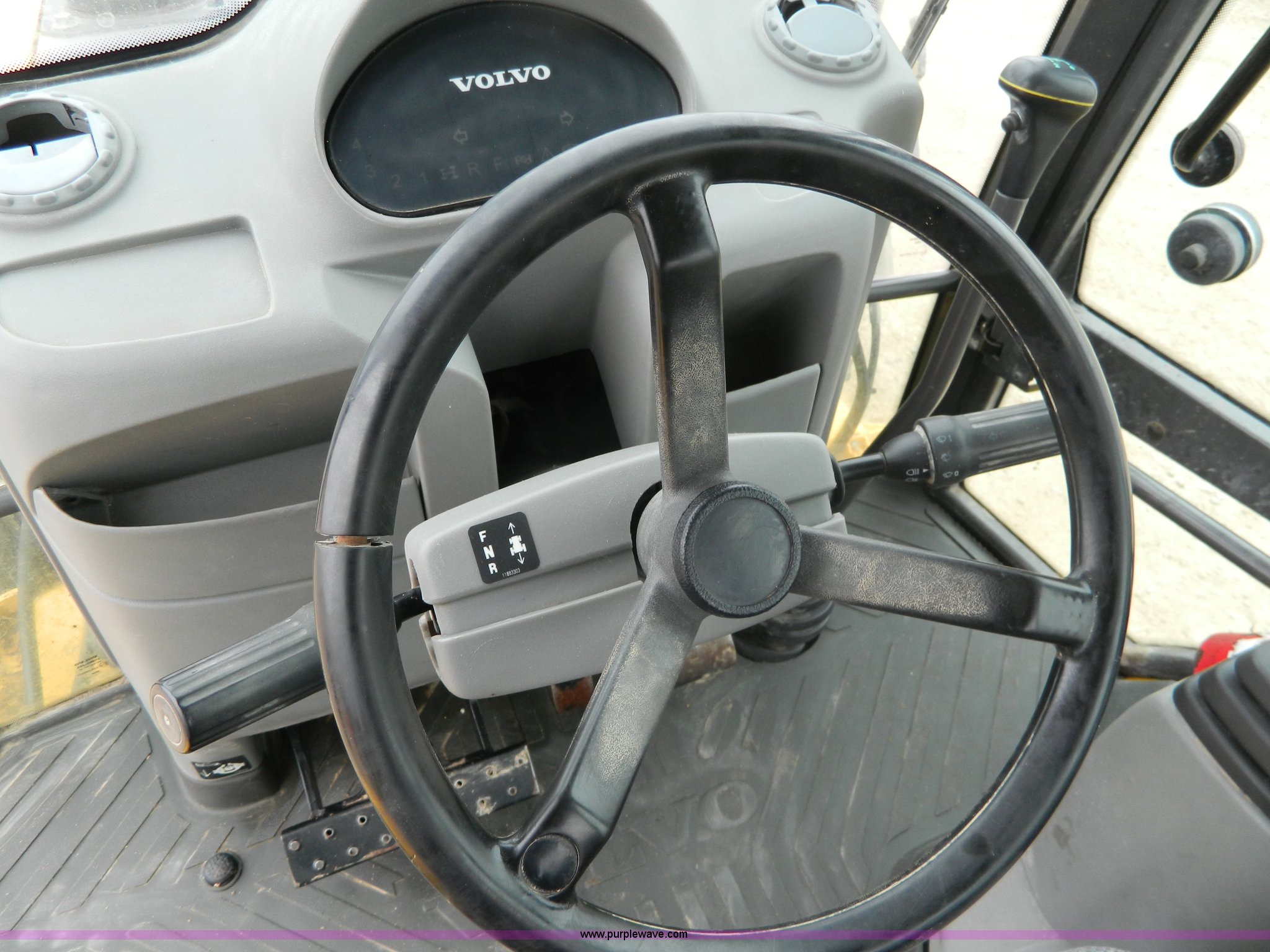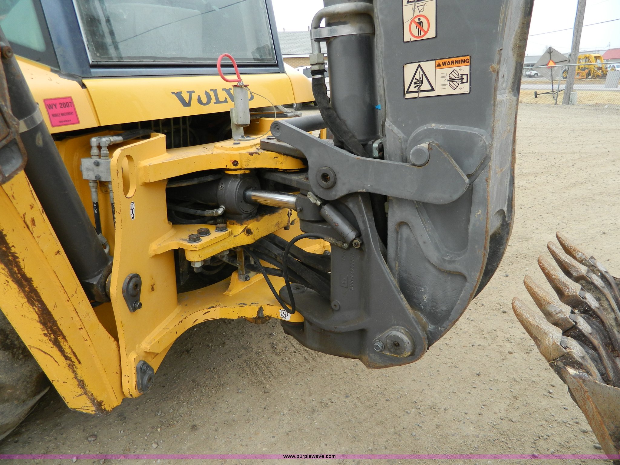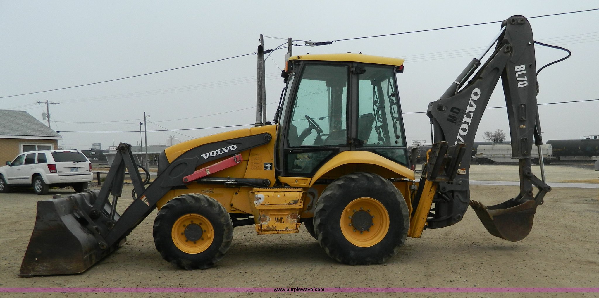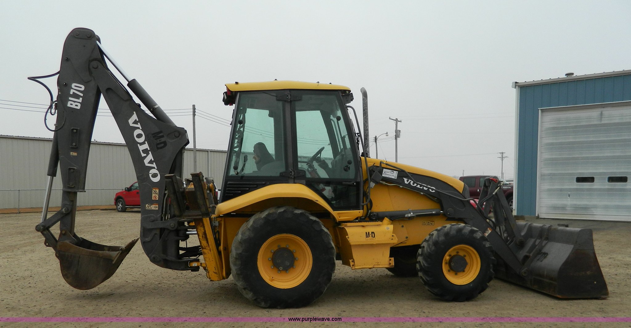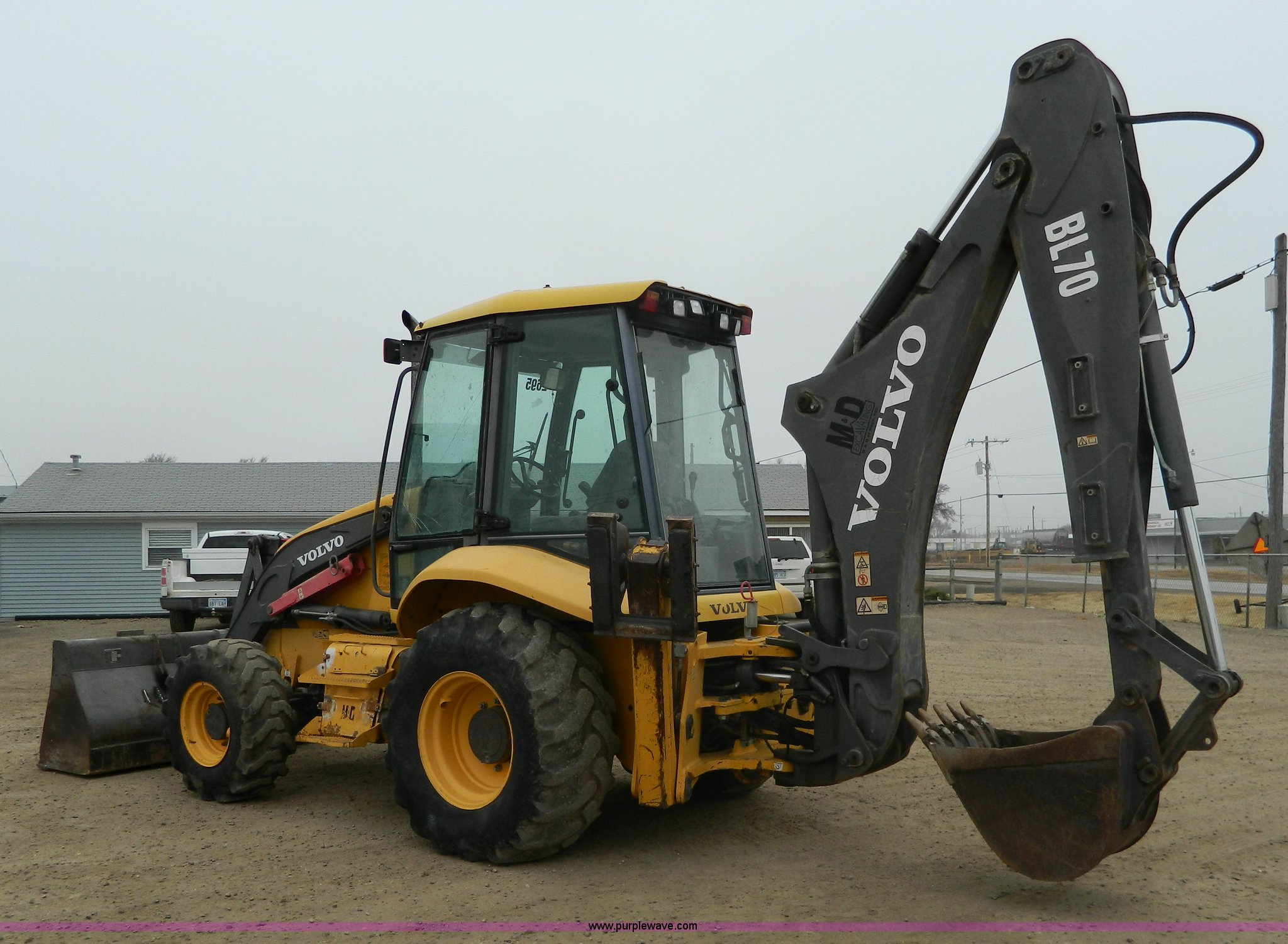 Purple Wave is selling a used Tractor Loader Backhoe in Kansas. This item is a 2004 Volvo BL70 backhoe with the following: 3,562 hours on meter, Volvo D4DCBE1 4.038L four cylinder diesel engine, 90 HP, Serial 00858665, Power shuttle shift transmission, 4F-4R gears, Four wheel drive, ROPS, AC and heat, AM/FM/cassette, Tilt steering wheel, Air suspension seat, Windshield wipers, Wobble stick backhoe controls, Volvo 90"W loader bucket, Bolt-on cutting edge, Extendable stick backhoe, 24"W toothed bucket, Harvest King 12.5/80-18 front tires, Goodyear 19.5L-24 rear tires, 17,800 lbs. base operating weight, Cab side glass cracked, Door strut unattached, Serial BL70D10527