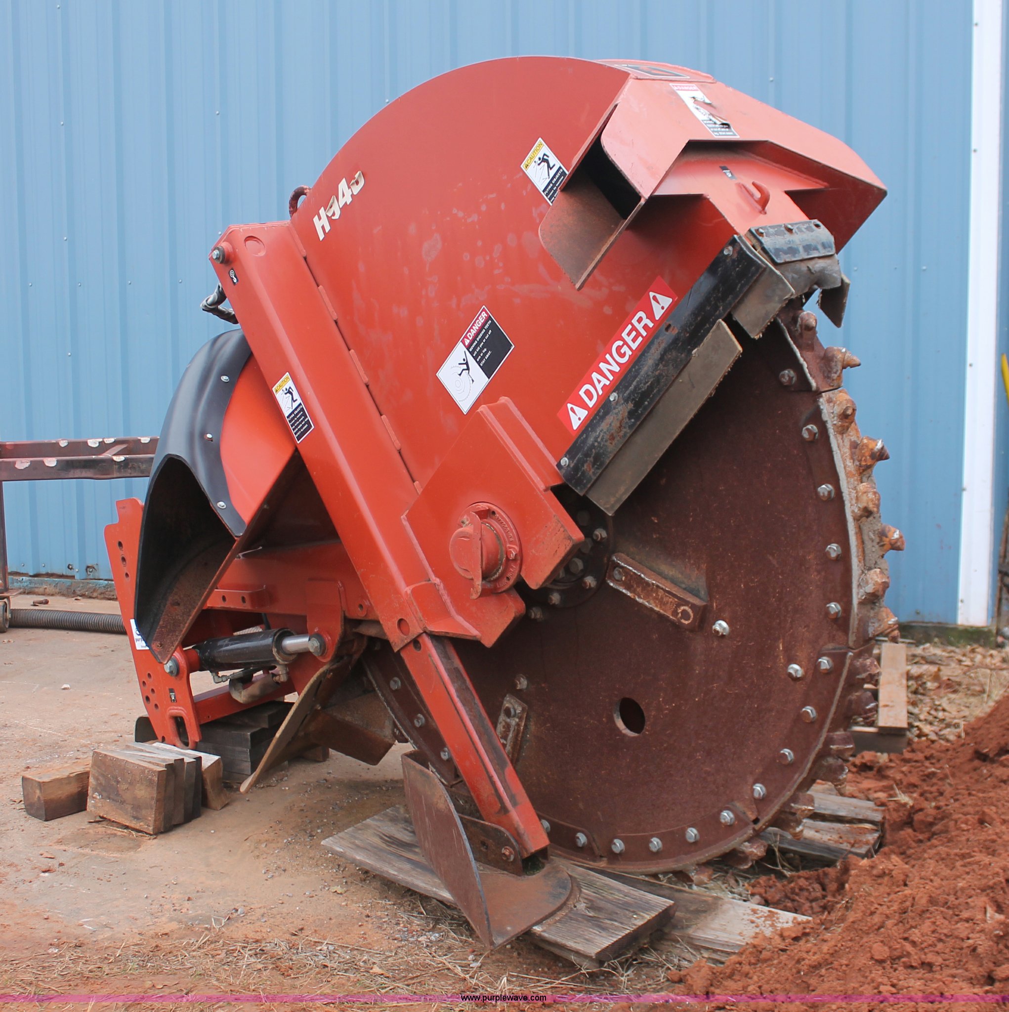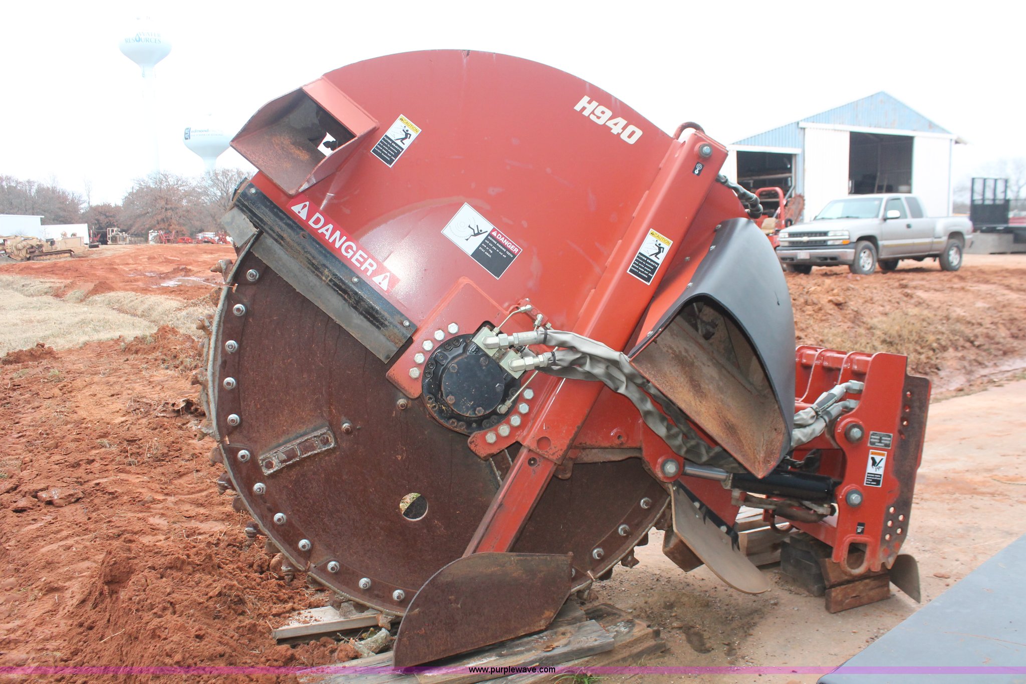 2004 Ditch Witch H940 center line saw. 30" maximum cutting depth, 4"W cut, 6' diameter, Dual side discharge chutes, Fits RT90-95H unit, Serial 5Y0383. Ditch Witch of Oklahoma. 4501 E. 2nd Street. Edmond, OK 73034