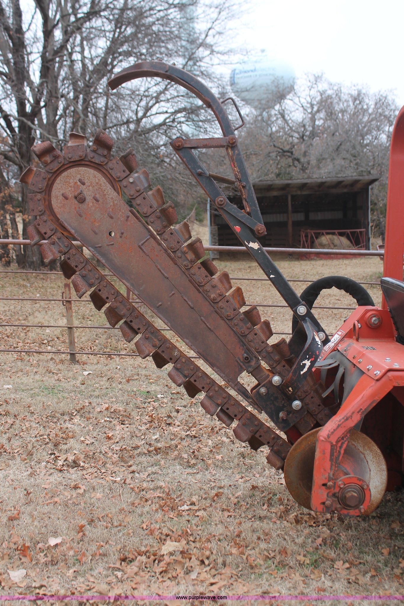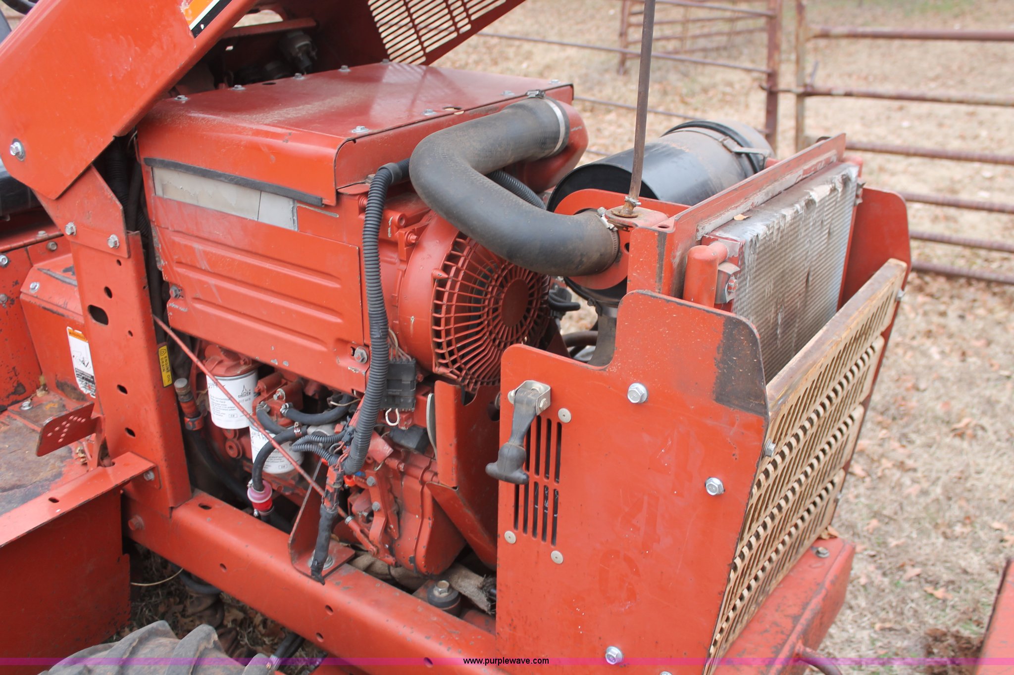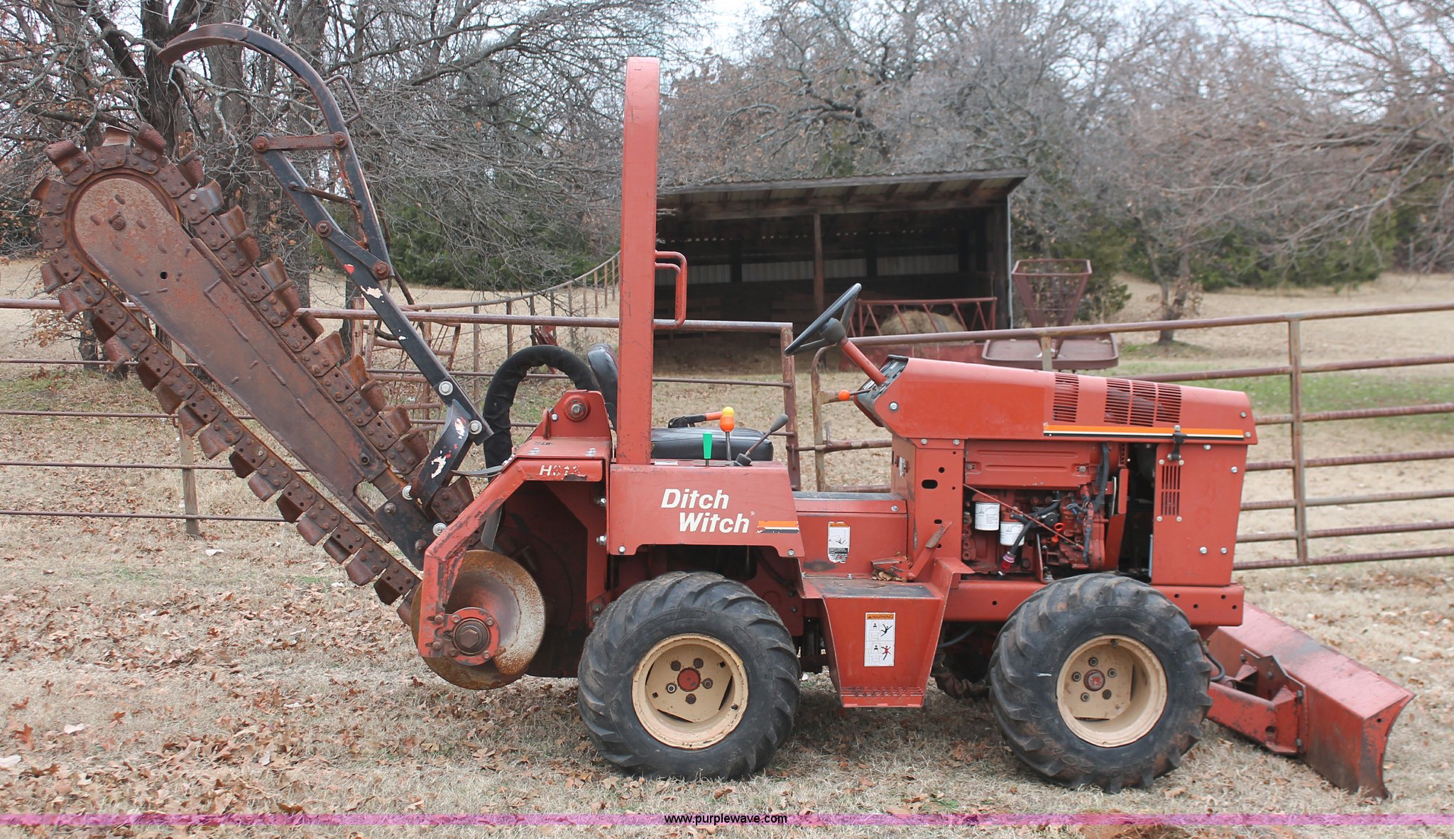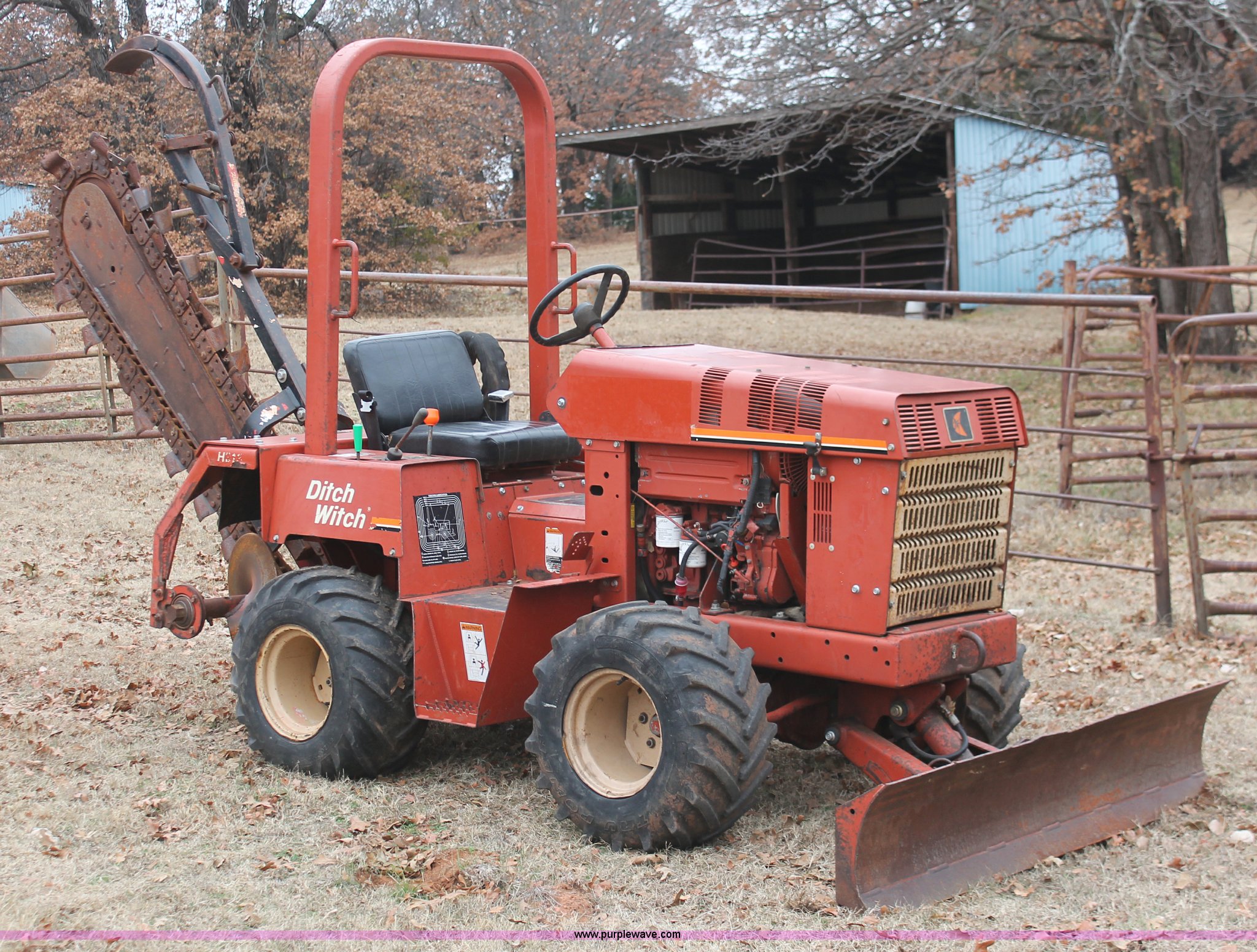 Purple Wave is selling a used Trencher or Rock Saw in Oklahoma. This item is a 2003 Ditch Witch 3700 trencher with the following: 24 hours on meter, Hour meter replaced at 2,520 hours, Deutz three cylinder diesel engine, Hydrostatic transmission, Four wheel drive, OROPS, Vinyl seat, 2007 H313 trencher, 48" maximum trenching depth, 6" trench width, 16" discharge auger, Serial CMWH313XC70000534, 64" back fill blade, 26 x 12.00-12 NHS tires, Serial 3X0743