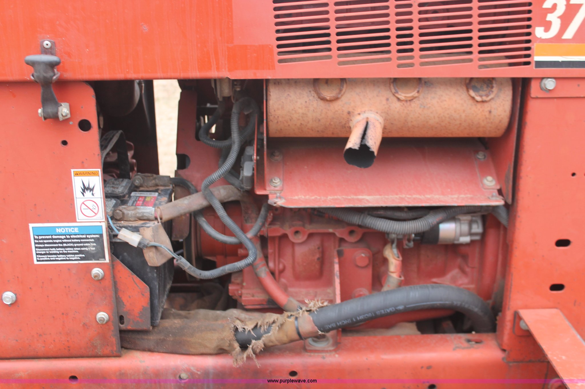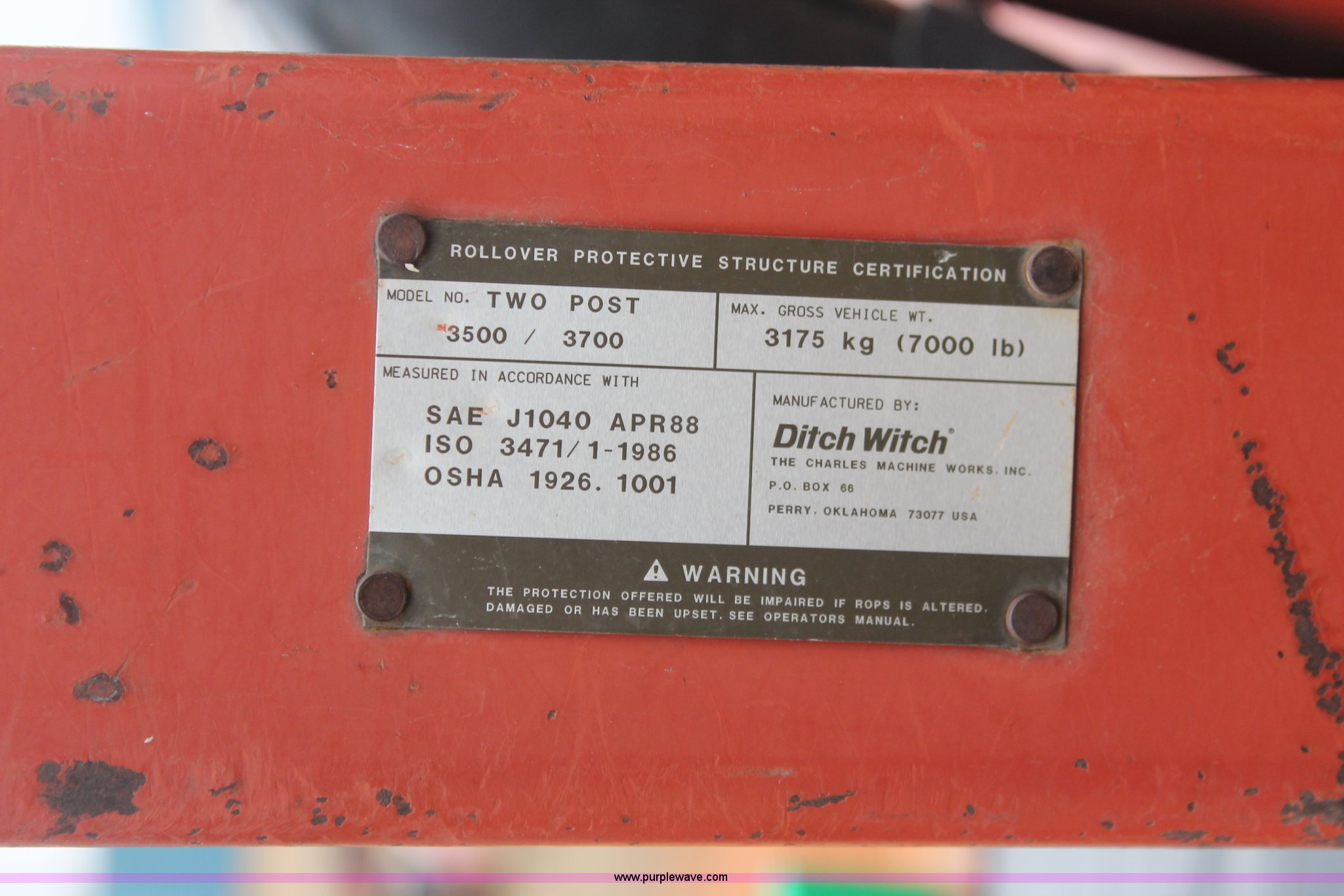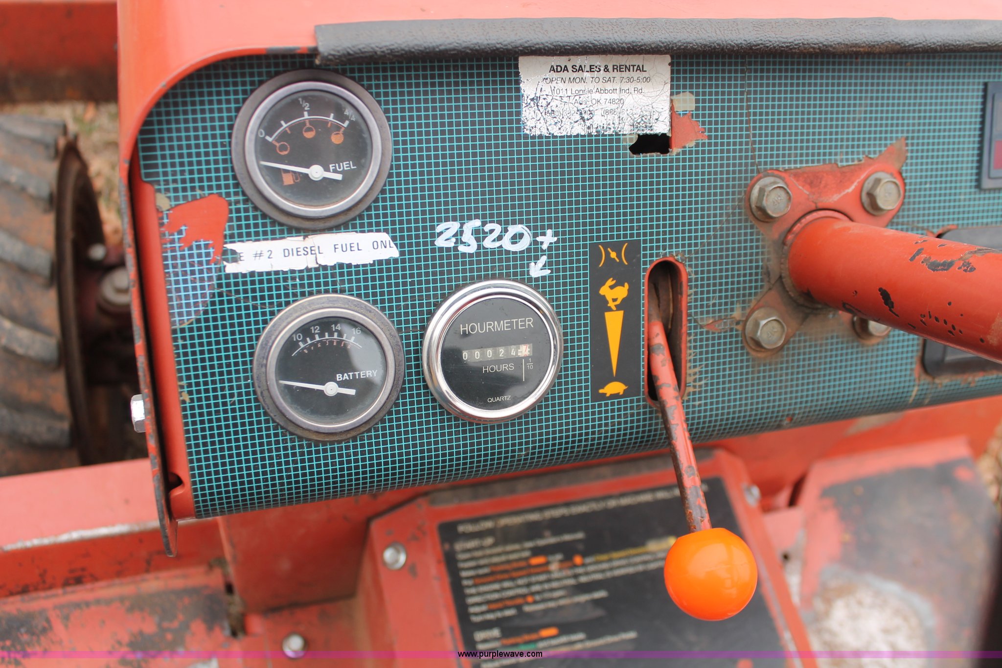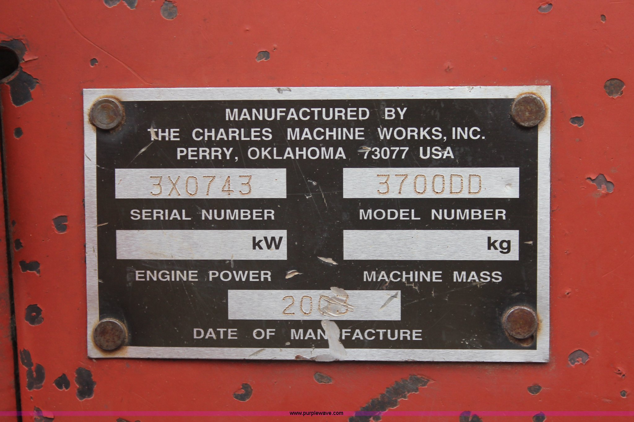 Purple Wave is selling a used Trencher or Rock Saw in Oklahoma. This item is a 2003 Ditch Witch 3700 trencher with the following: 24 hours on meter, Hour meter replaced at 2,520 hours, Deutz three cylinder diesel engine, Hydrostatic transmission, Four wheel drive, OROPS, Vinyl seat, 2007 H313 trencher, 48" maximum trenching depth, 6" trench width, 16" discharge auger, Serial CMWH313XC70000534, 64" back fill blade, 26 x 12.00-12 NHS tires, Serial 3X0743