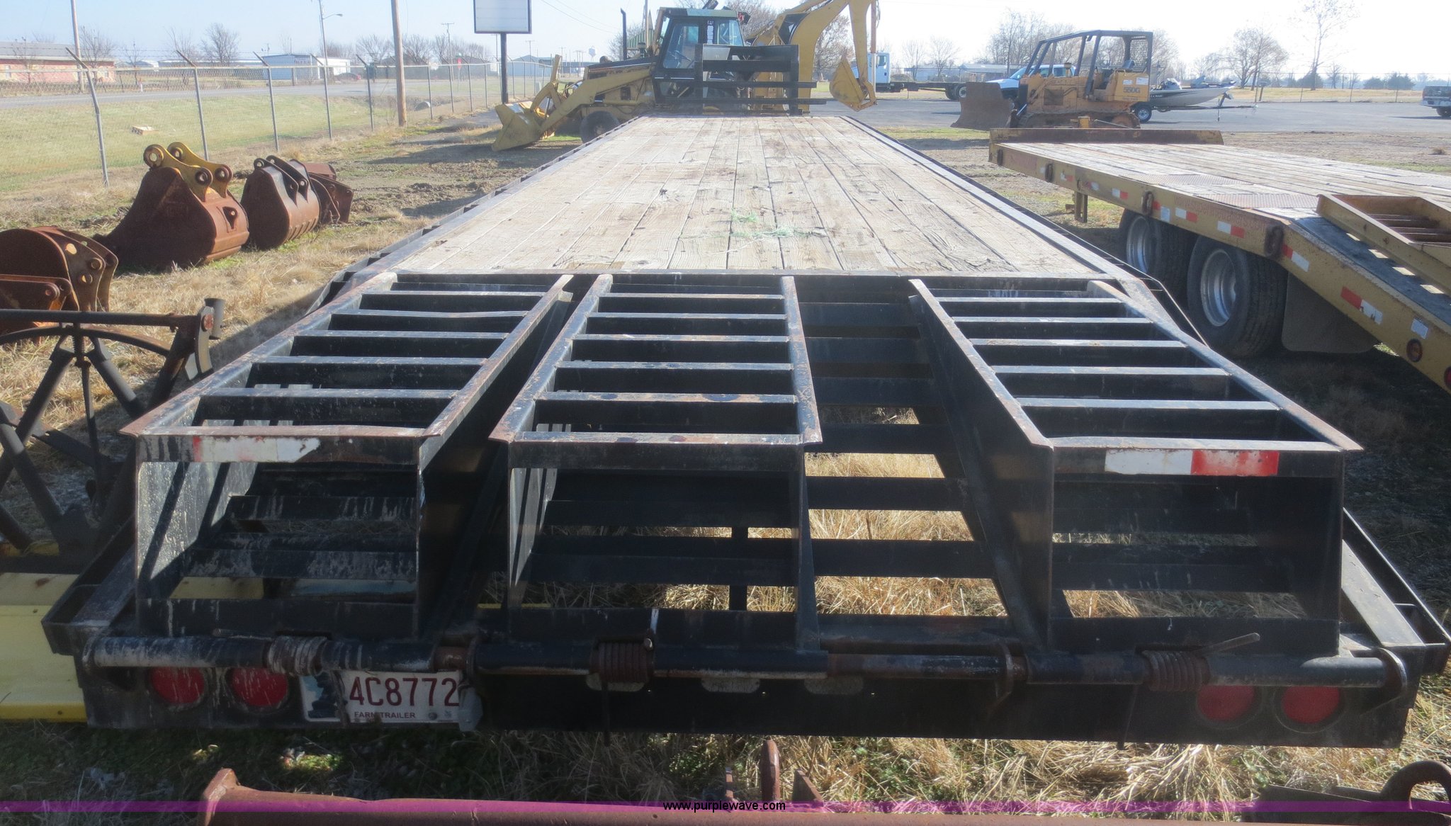 Purple Wave is selling a used Flat or Drop Deck Trailer in Oklahoma. This item is a 2000 Elite gooseneck trailer with the following: 37'L x 102"W, 32'L flat floor, 5'L dovetail, Triple loading ramp, Rub rails, Wood floor, Spring suspension, LT235/85R16 tires, GVW 20,000 lbs, 7,750 lbs empty weight