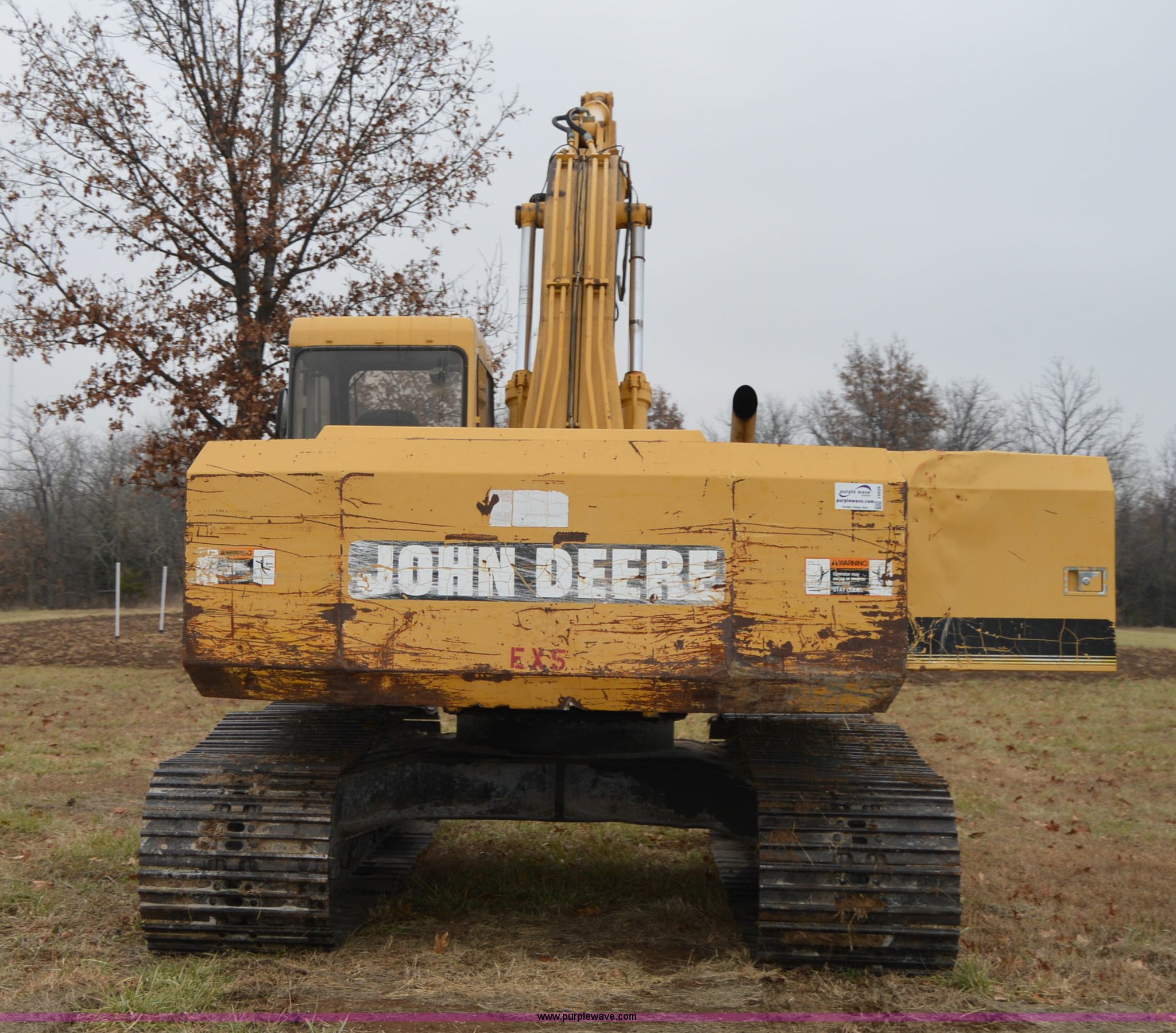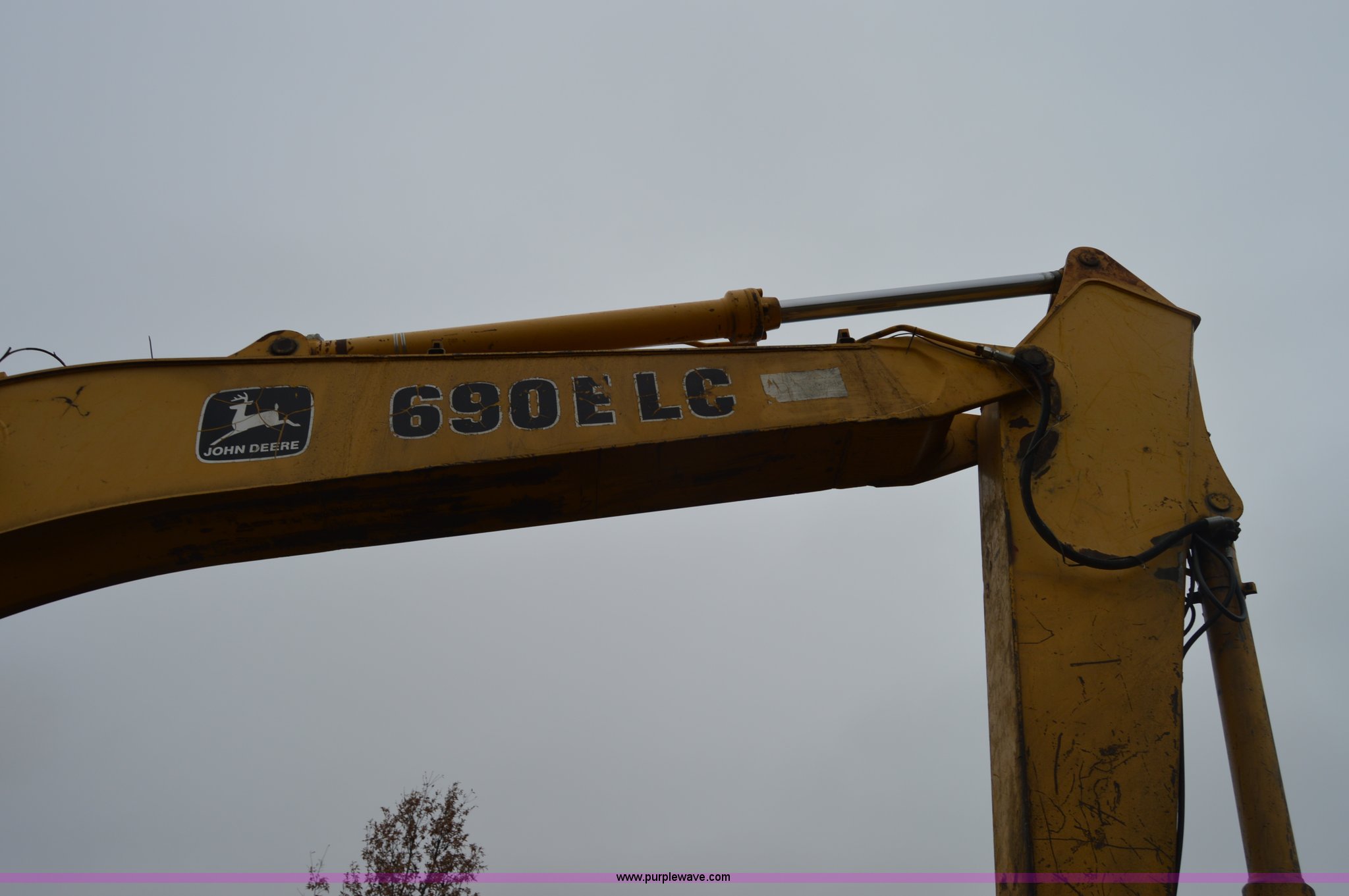Purple Wave is selling a used Hydraulic Excavator in Missouri. This item is a 1993 John Deere 690E LC excavator with the following: 5,454 hours on meter, John Deere six cylinder turbo diesel engine, Two speed hydrostatic transmission, EROPS, AC and heat, Unknown operating condition of AC, Spring suspension seat, Front work lights, 9.5' stick length, JRB 28"W four tooth bucket, Bolt-on teeth, Rear counter weights, Eight bottom rollers, 29.5"W steel triple grouser track pads, 44,231 lbs. base operating weight, Serial DW690EL539248