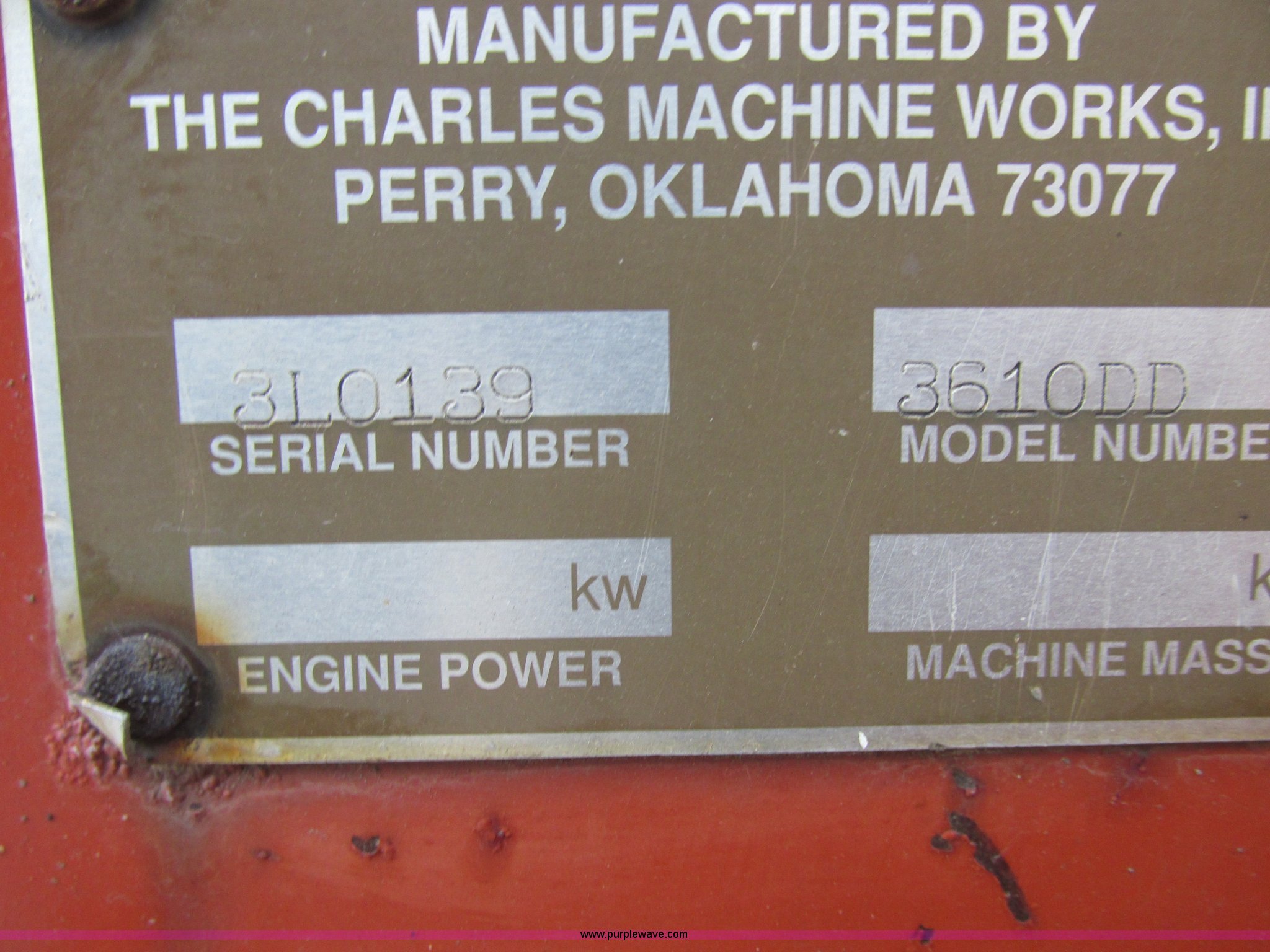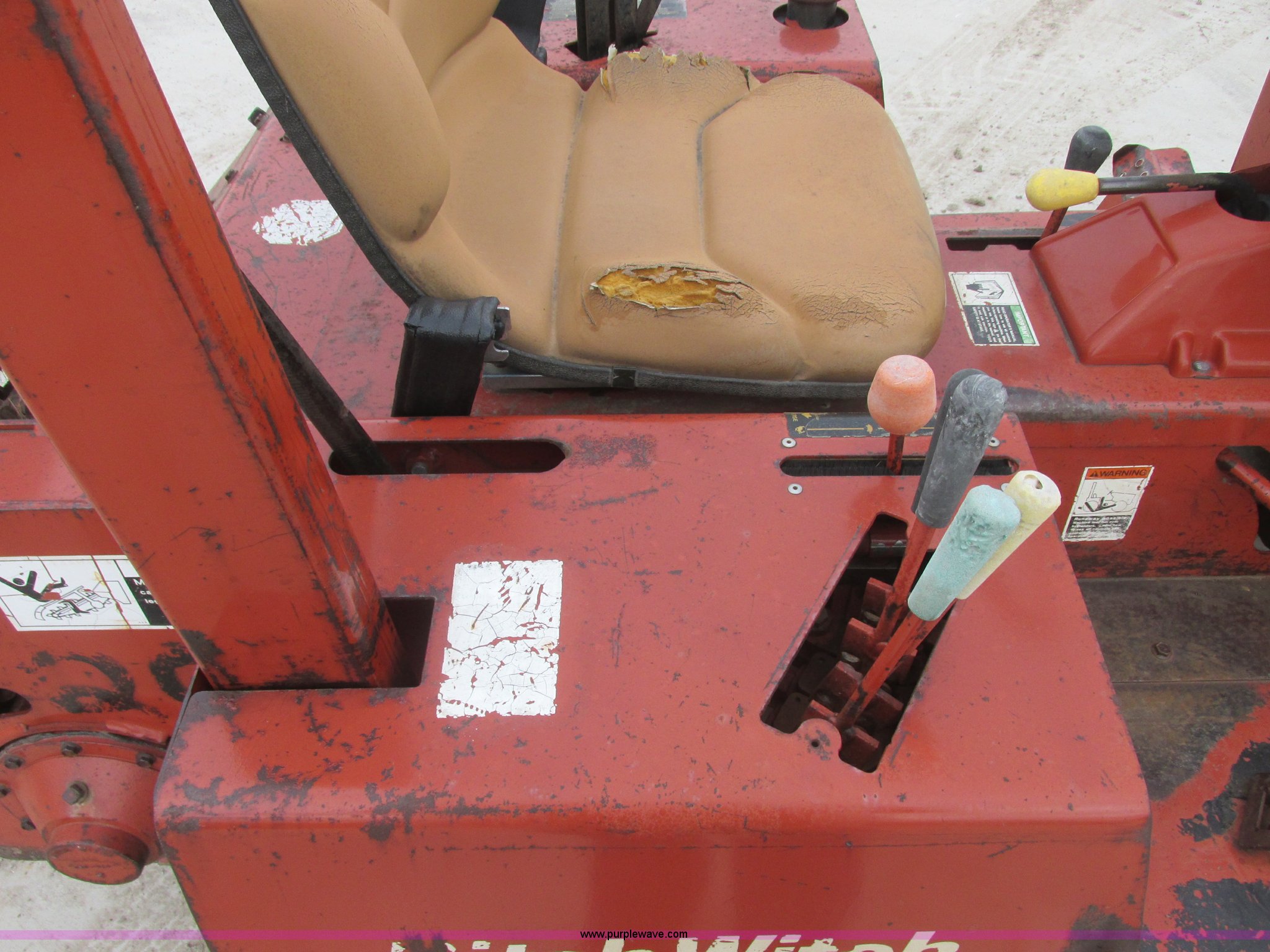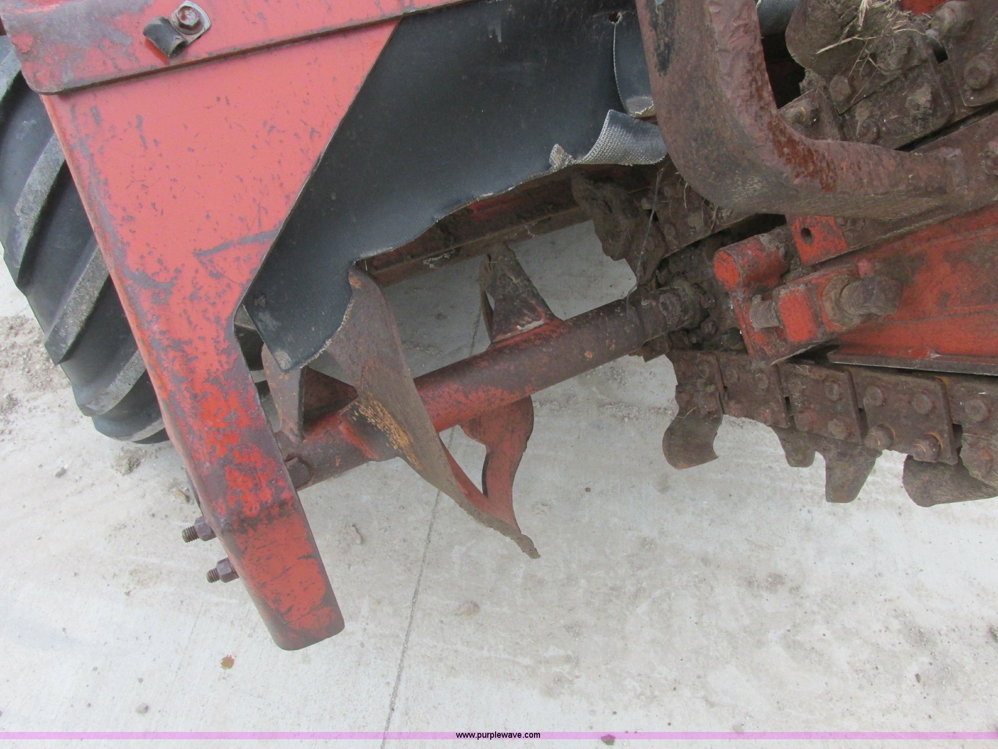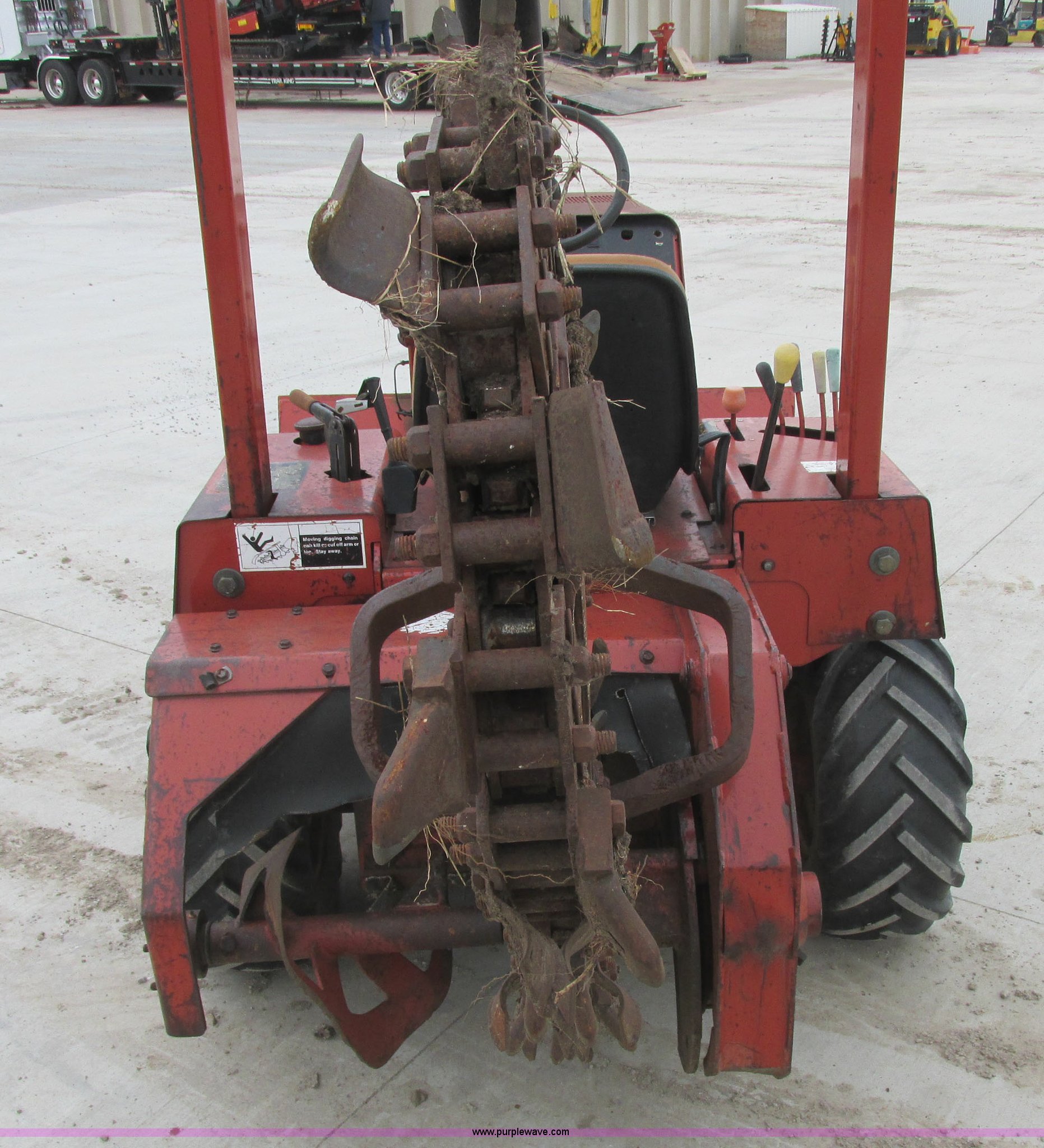 Purple Wave is selling a used Trencher or Rock Saw in Oklahoma. This item is a 1994 Ditch Witch 3610DD trencher with the following: 1,527 hours on meter, Deutz 125 C.I.D. three cylinder diesel engine, 43.5 HP, Type F3L1017, Serial 8360827, 3F-1R gears, Four wheel drive, Hydraulic ground drive, ROPS, Power steering, 64" six-way back fill blade, 13.9" high blade, 11.6" lift about ground on blade, 4' boom with restraint bar, Shark tooth bolt-on combination chain, 26x12.00-12 tires, 3,940 lbs. base operating weight, Serial 3L0139
