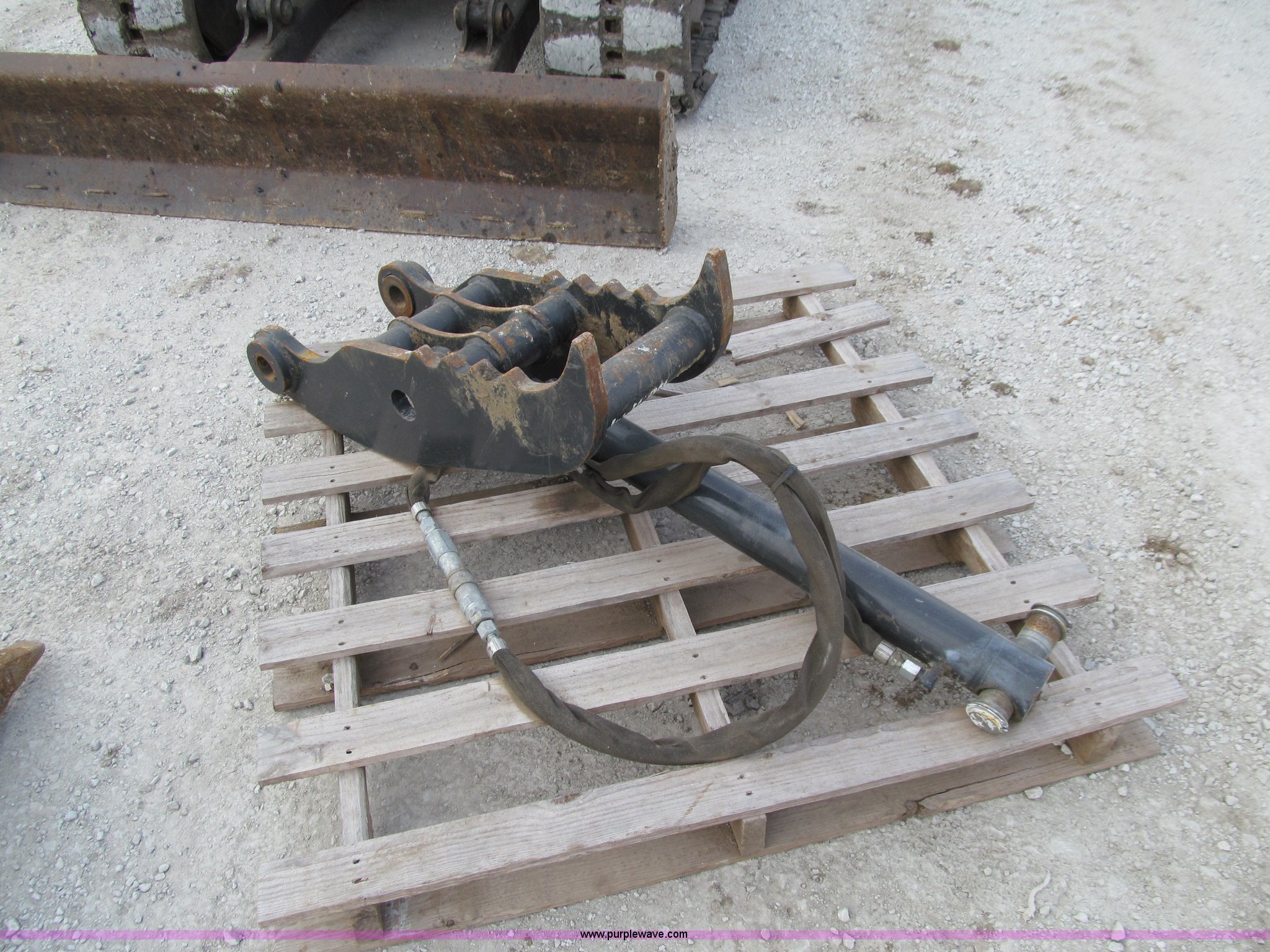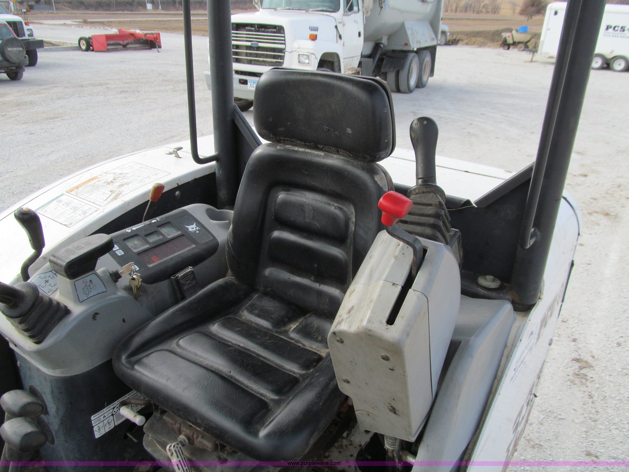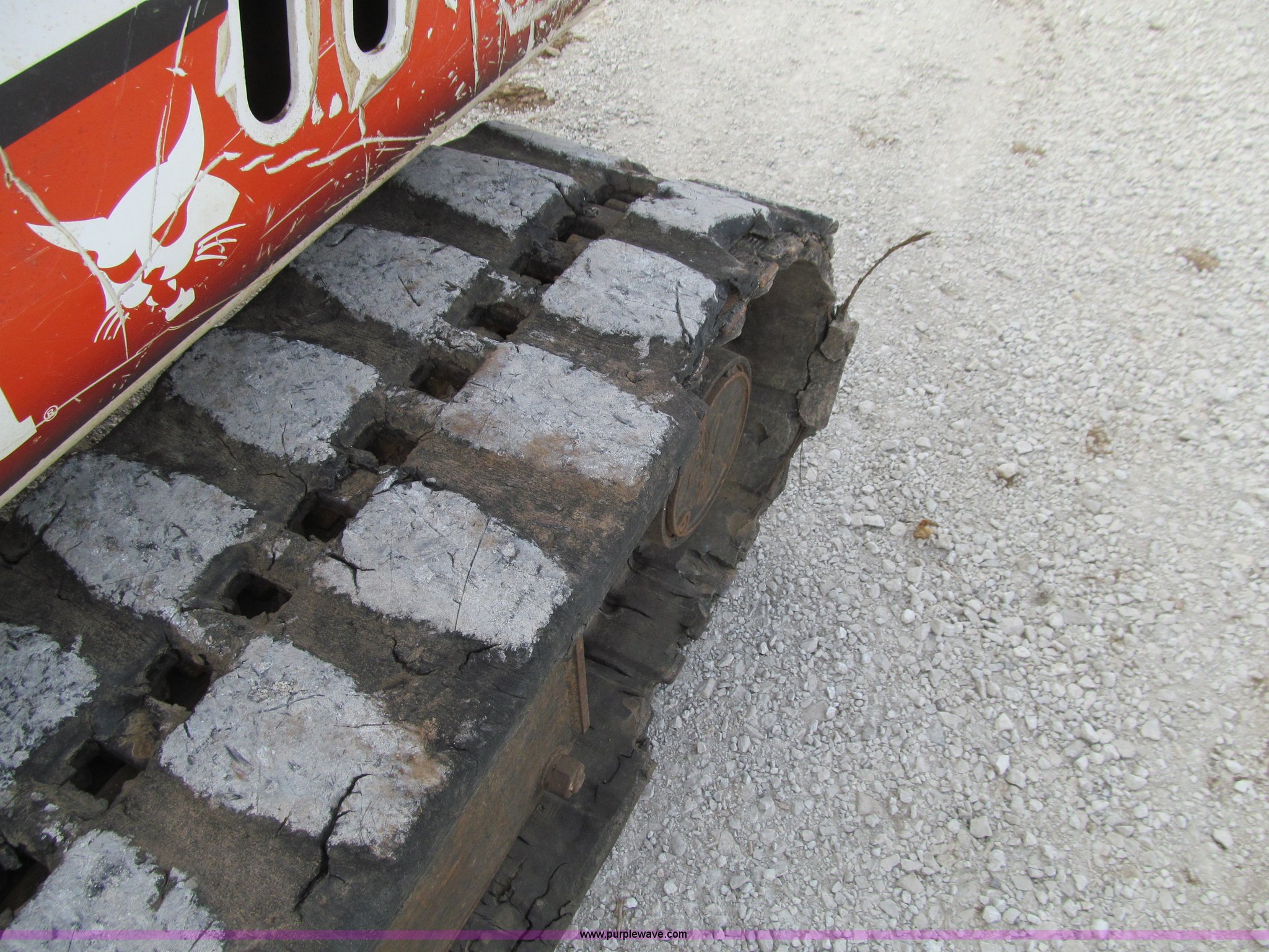 Purple Wave is selling a used Mini Excavator in Iowa. This item is a 2003 Bobcat 337D compact excavator with the following: 5,282 hours on meter, Kubota V2003-T-E 2.0L four cylinder turbo diesel engine, 44 kW, Hydrostatic transmission, OROPS, Spring suspension seat, Joystick controls, Pattern changer, Front work lights, 60" stick length, 24"W four tooth backhoe bucket, Weld-on teeth, Mechanical quick coupler, Hydraulic thumb, Two way auxiliary hydraulics, Off settable boom, 76"W back fill blade, Five bottom rollers, 14"W rubber tracks, 11,086 lbs. base operating weight, Tracks worn, Hydraulic thumb unattached, but included, Serial 233312412